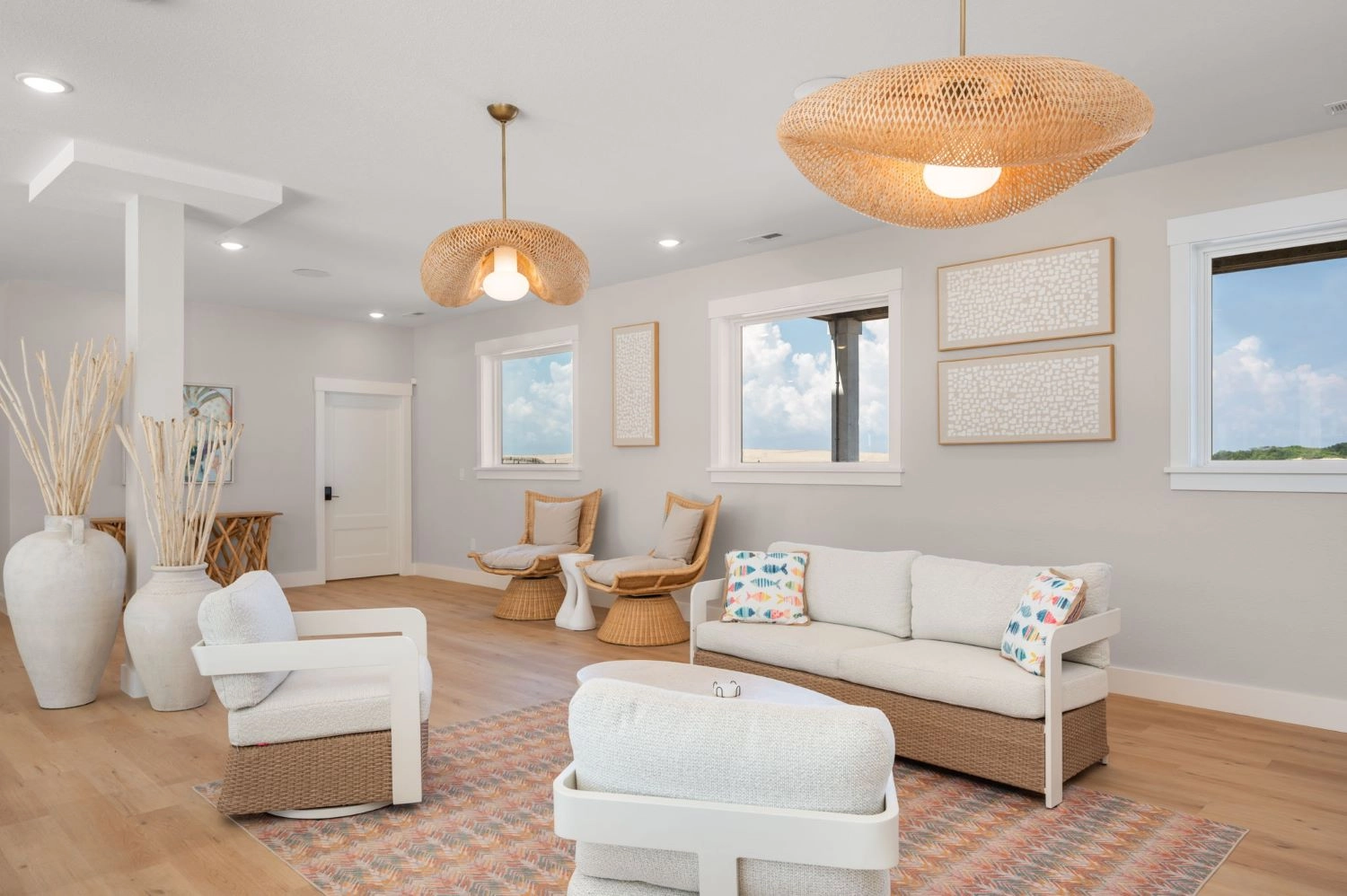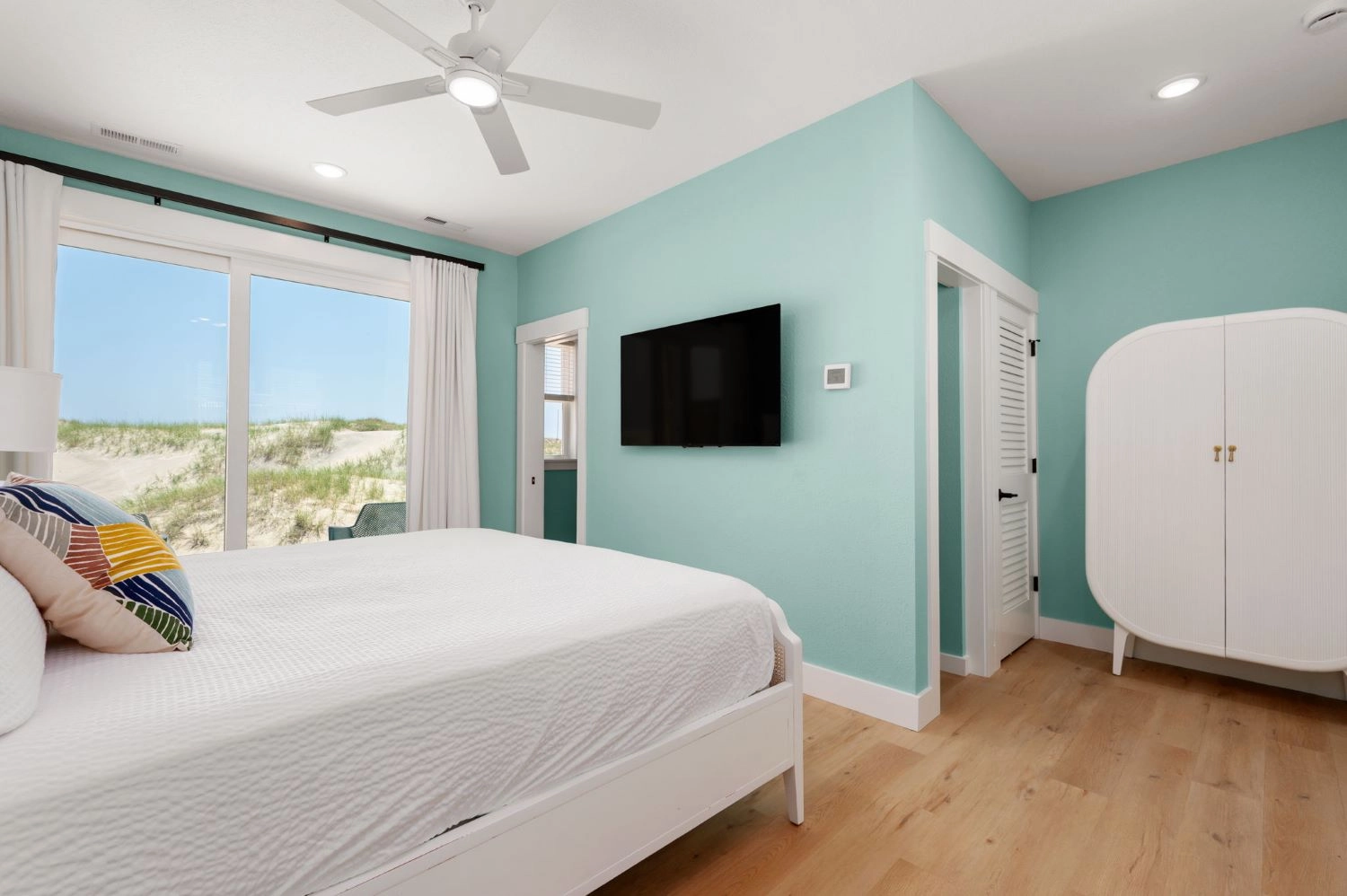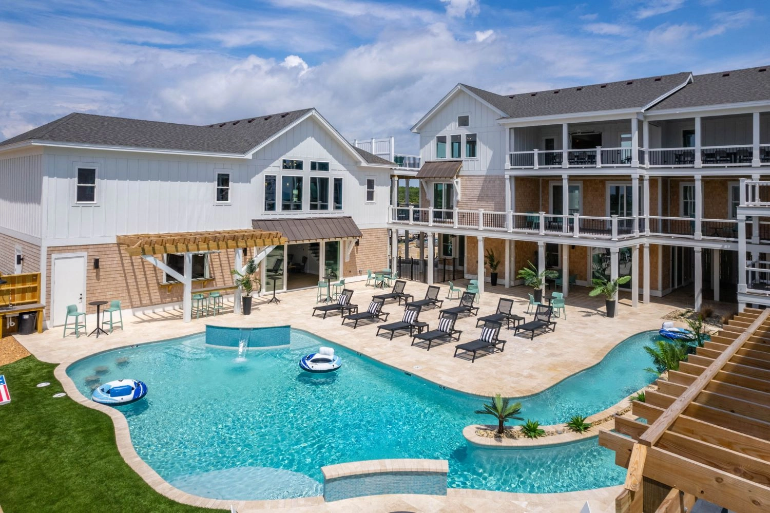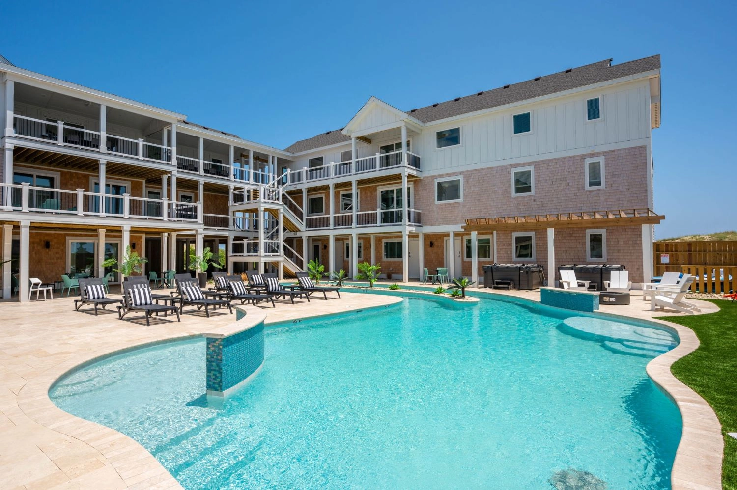 "We have been coming down to the OBX for 20 years now and we have stayed in some beautiful homes but this one is far and away the best! it is a Beautiful, Brand New Home! incredible pool with a lazy river (which was way more fun than we thought it could be!) an incredible kitchen with beautiful views of both the sound and the ocean, plenty of King suits to accommodate our family of 34 ppl all with great views. The "fun villa" with an awesome bar & theater kept everyone entertained day and night. Can't say enough great things about this house! Horses every day, beautiful beaches awesome memories! this house is a must!"