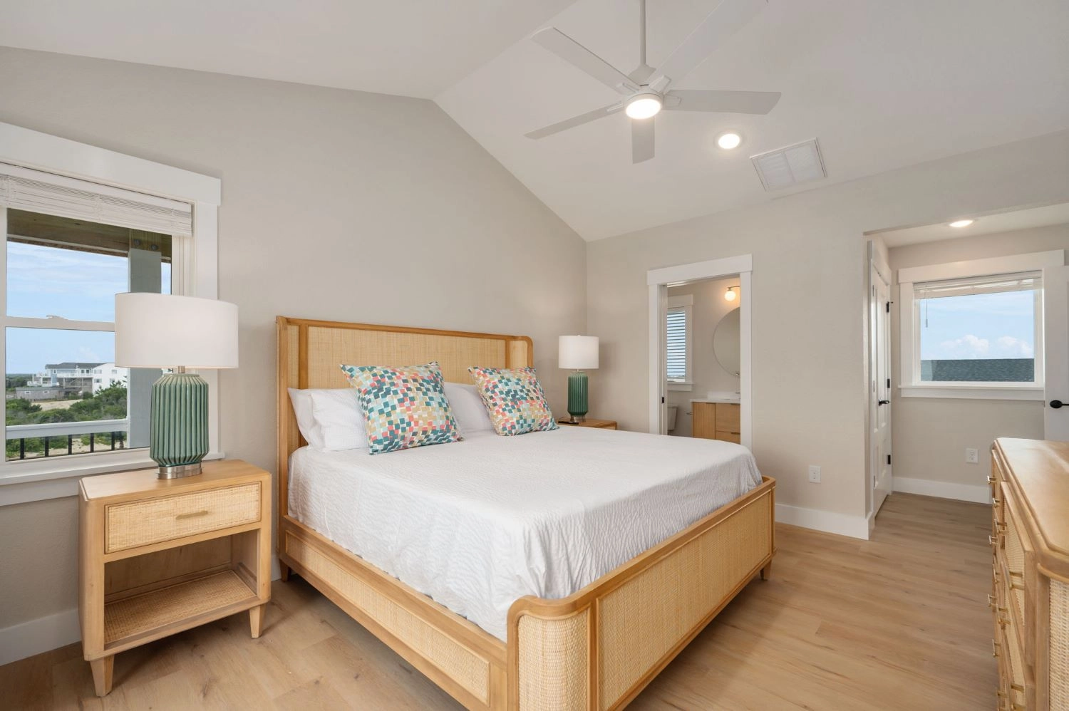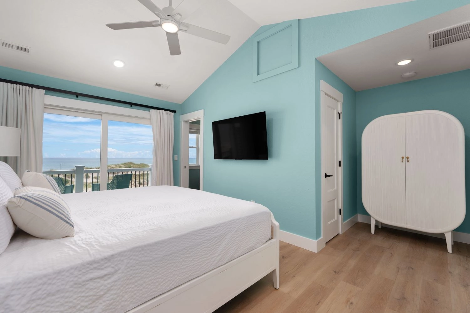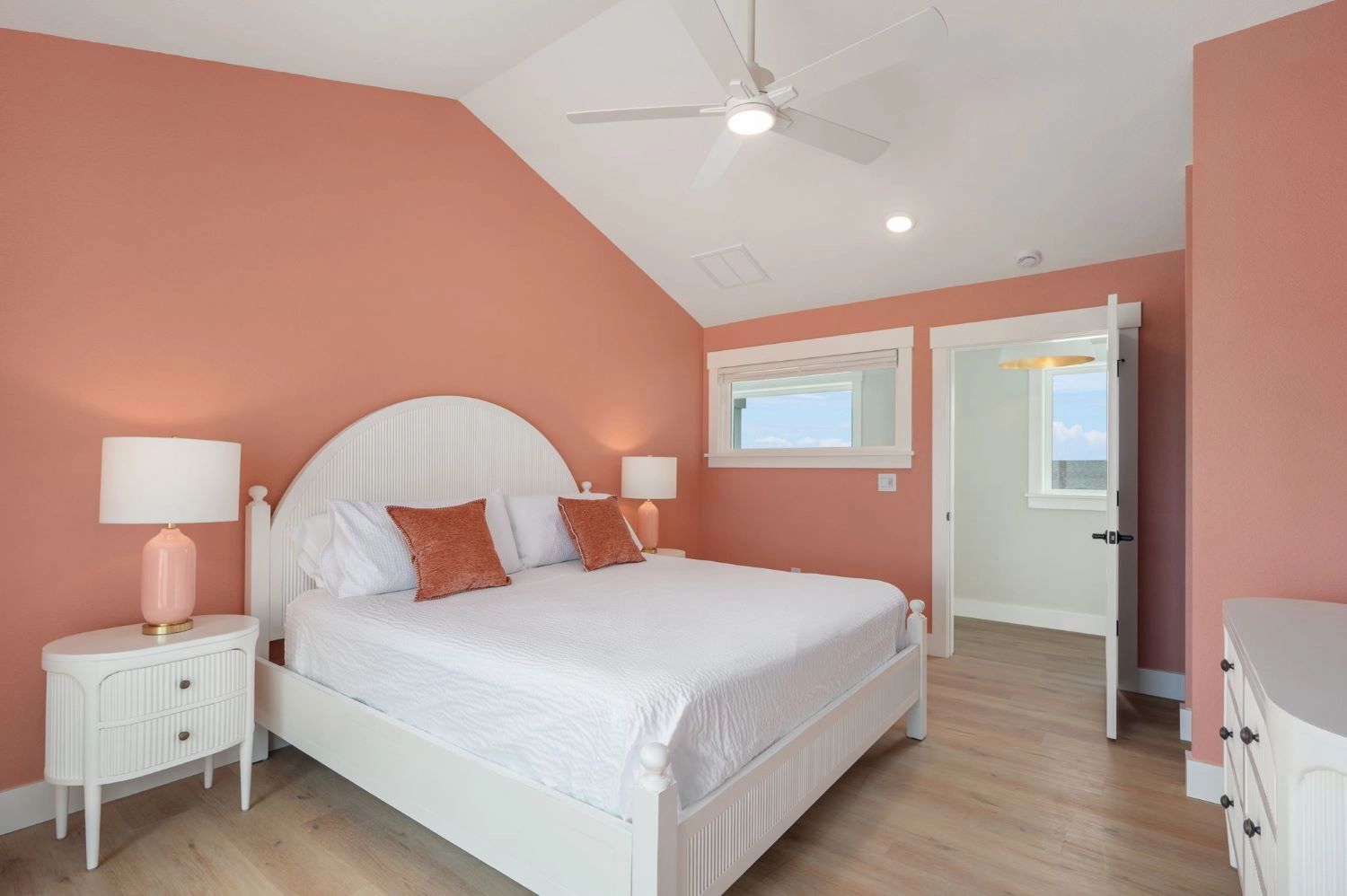Oceanside, King, Private indoor and outdoor standing showers, Wet bar with beverage refrigerator, Deck access