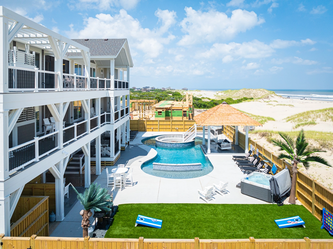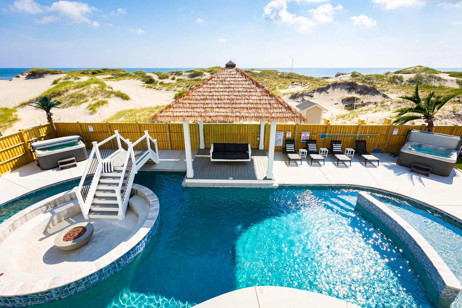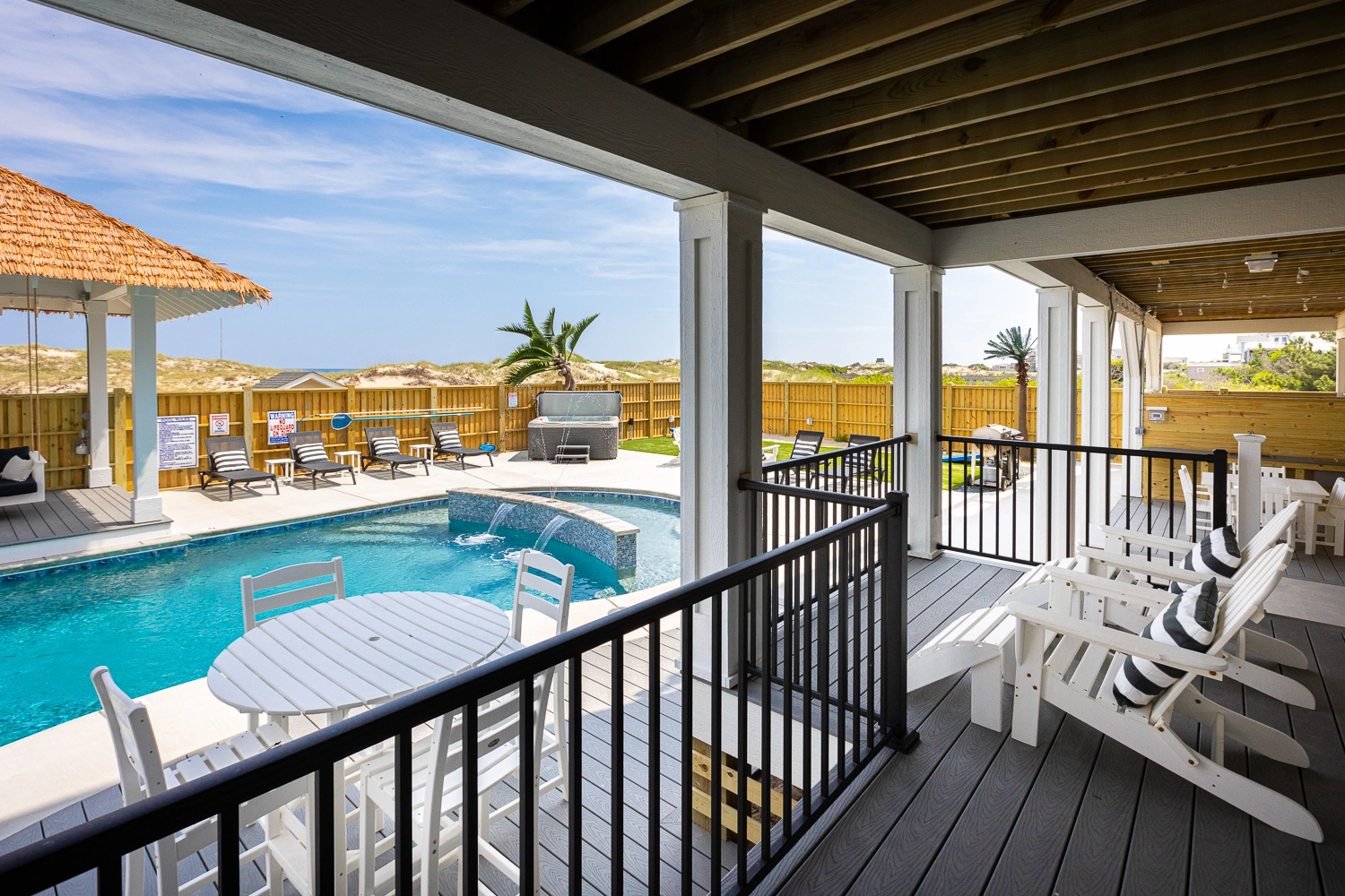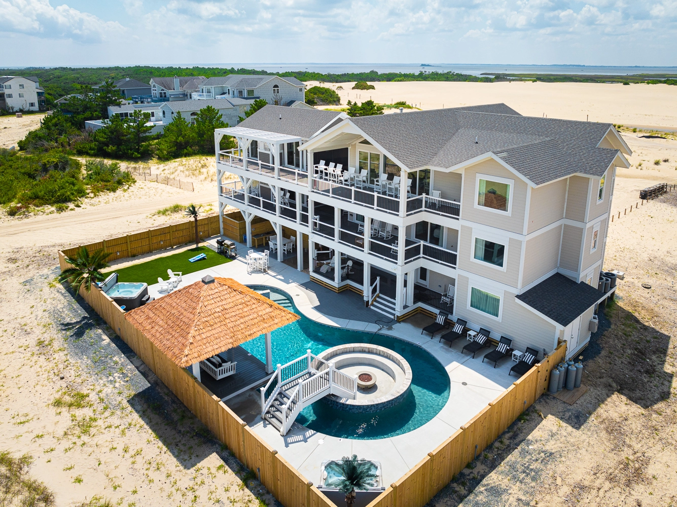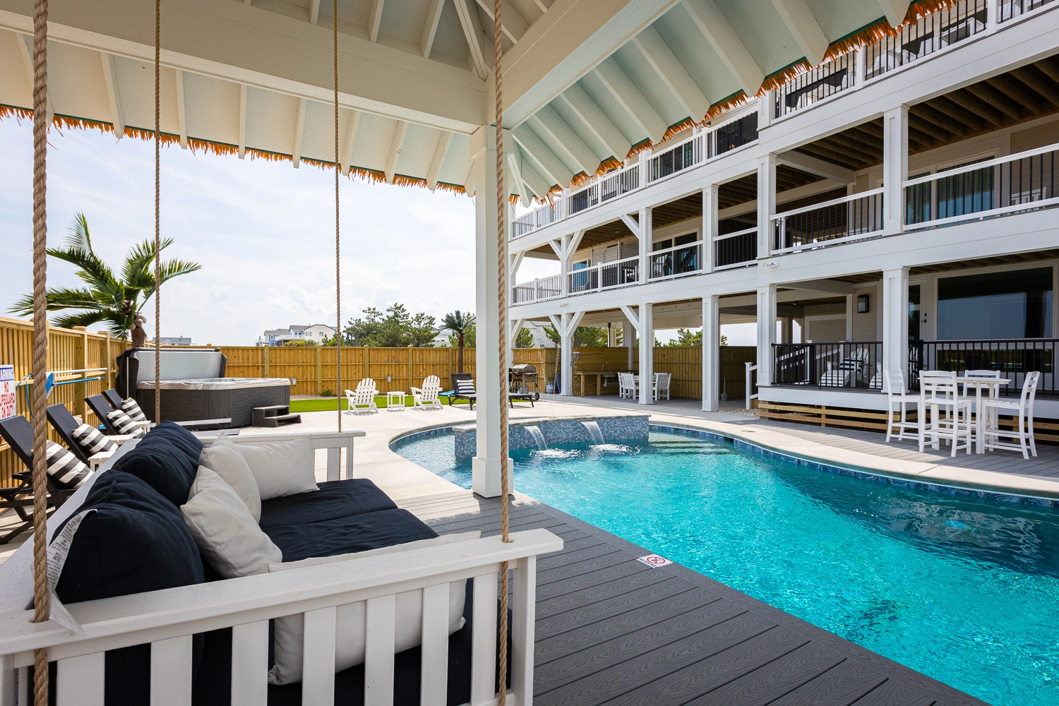"The Dune Buggy was perfectly suited for our family of 26. The adequate dining seating capacity, large and well appointed kitchen and living area with separate coffee bar, plenty of trash receptacles, very well equipped kitchen with high-quality amenities, and a large ice machine all helped to make our stay very enjoyable. The pool area was superb! We loved the pool itself which was good for all ages, with the shallow area for a three-year-old. But being able to grill and serve a meal, play cornhole, and swim all in the same area was wonderful… So much more than just a pool! The outdoor furniture was also top-notch and sufficient for our large family."