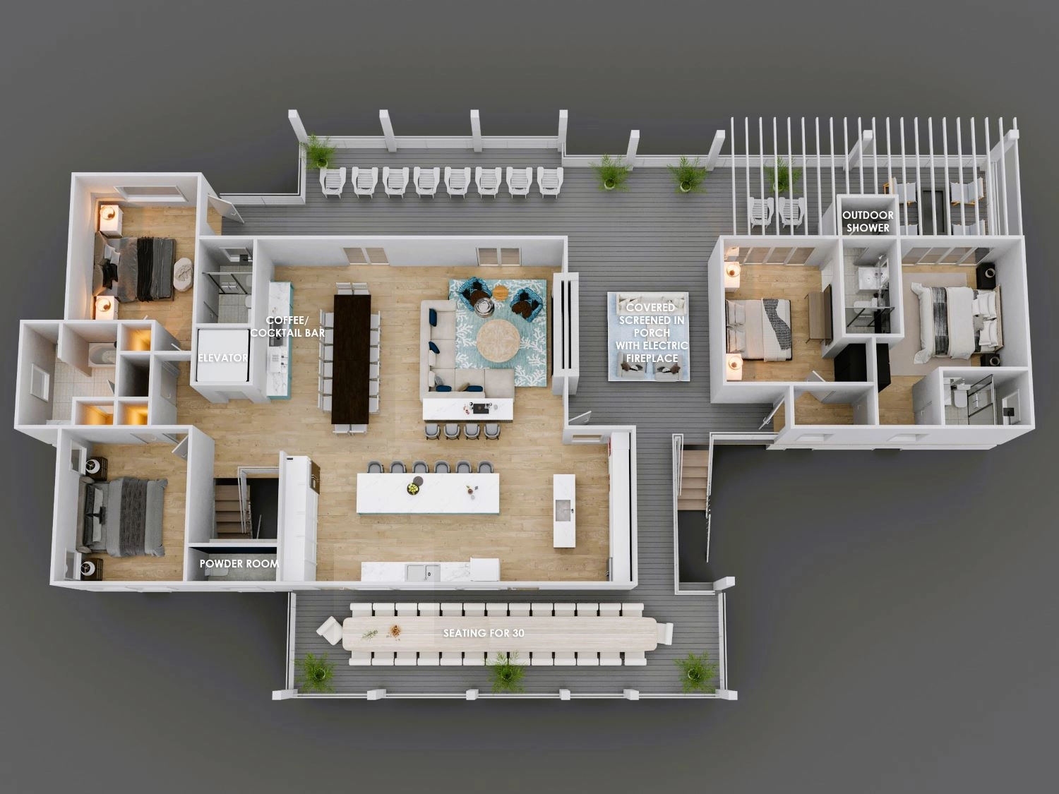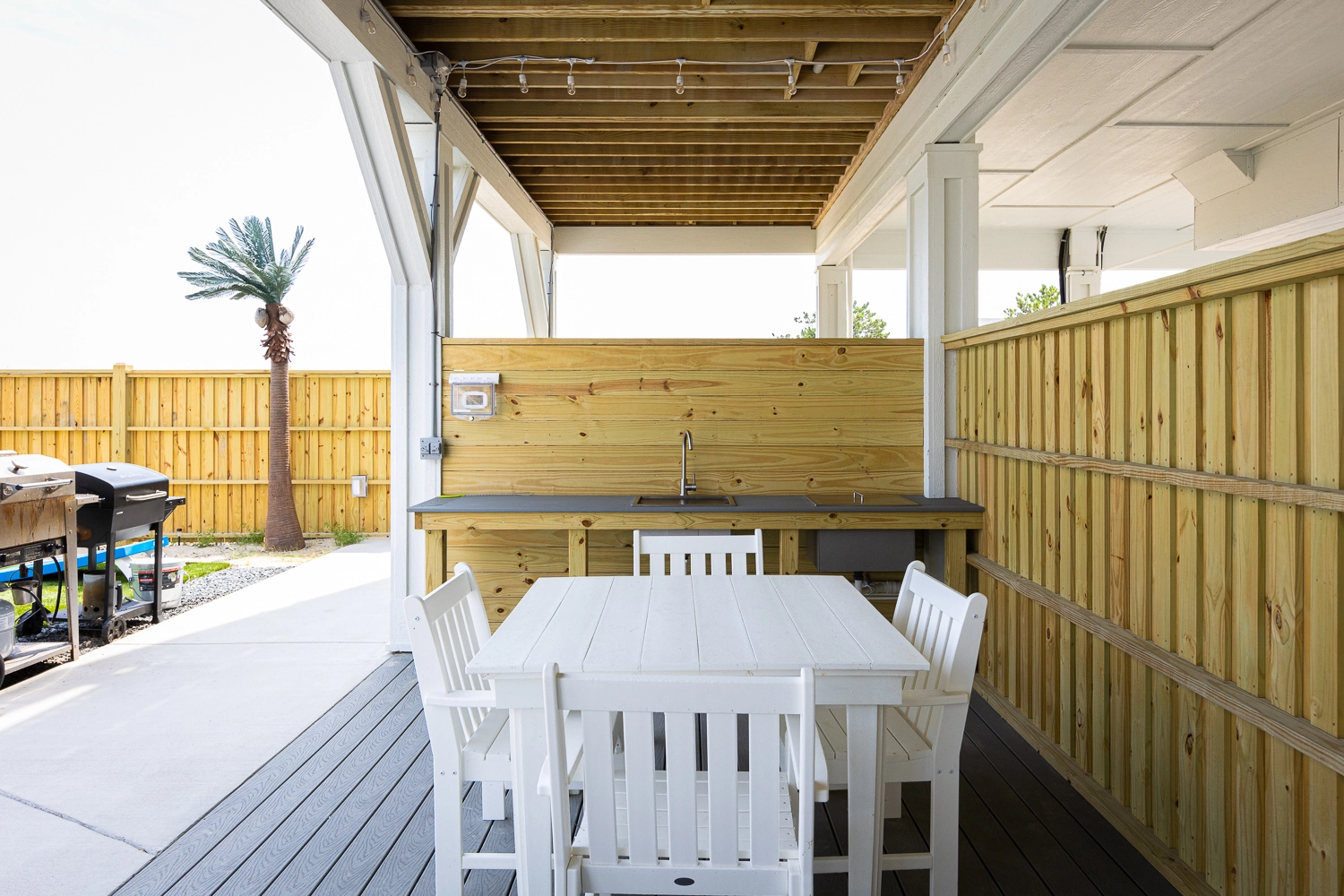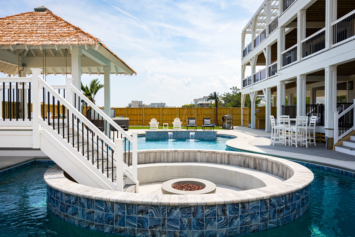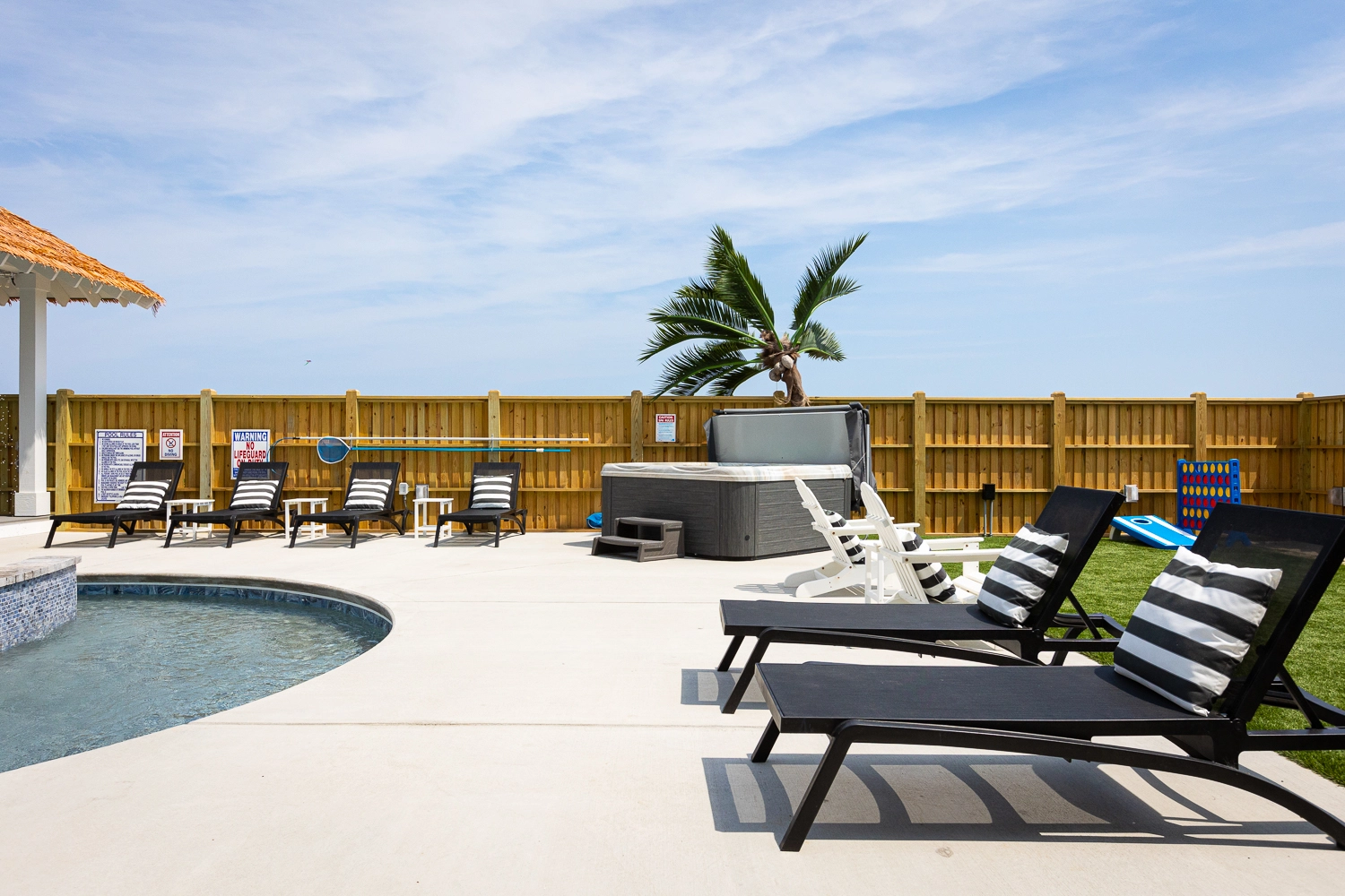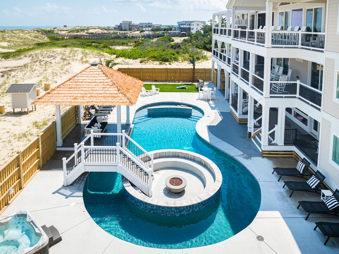 "The Dune Buggy was perfectly suited for our family of 26. The adequate dining seating capacity, large and well appointed kitchen and living area with separate coffee bar, plenty of trash receptacles, very well equipped kitchen with high-quality amenities, and a large ice machine all helped to make our stay very enjoyable. The pool area was superb! We loved the pool itself which was good for all ages, with the shallow area for a three-year-old. But being able to grill and serve a meal, play cornhole, and swim all in the same area was wonderful… So much more than just a pool! The outdoor furniture was also top-notch and sufficient for our large family."