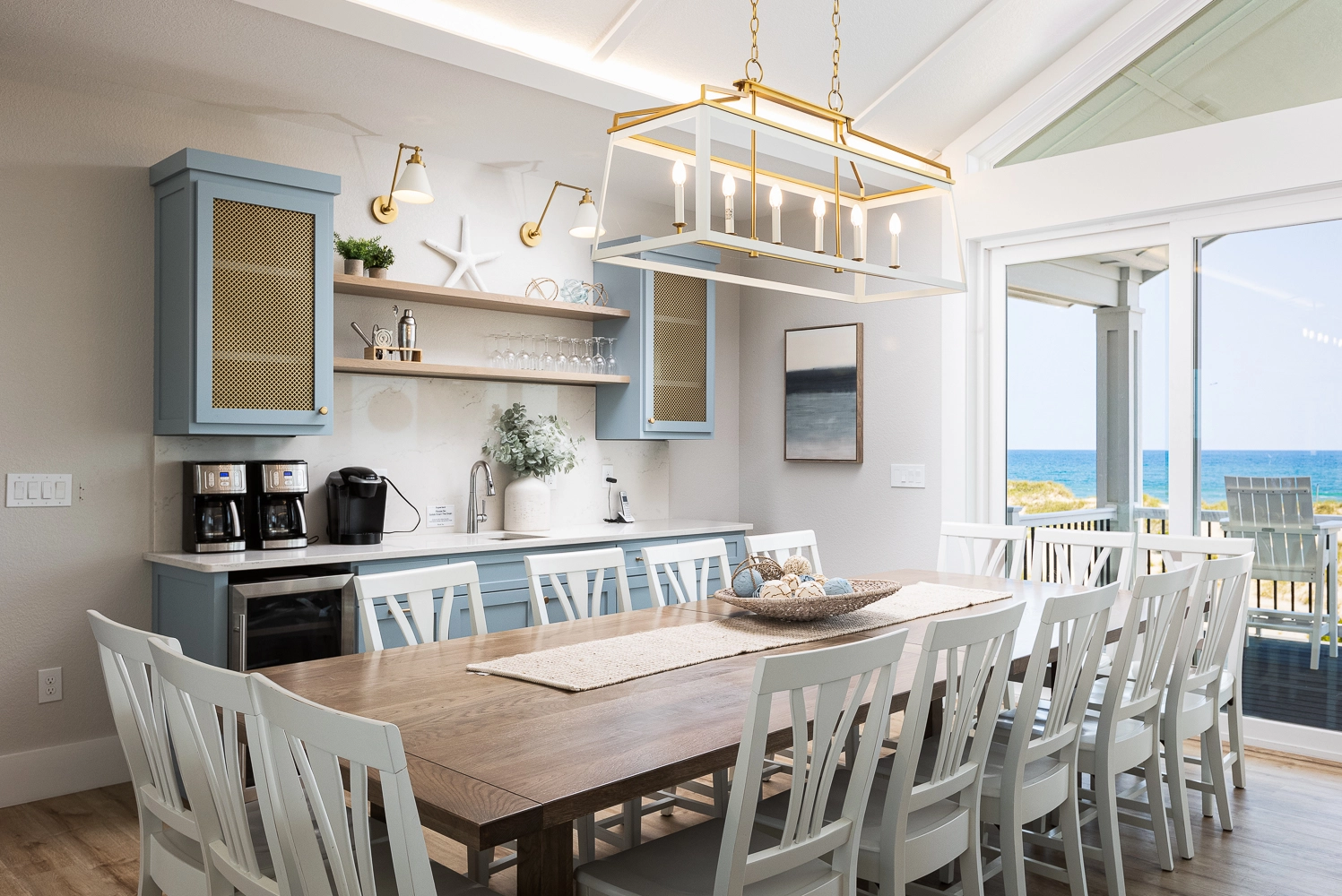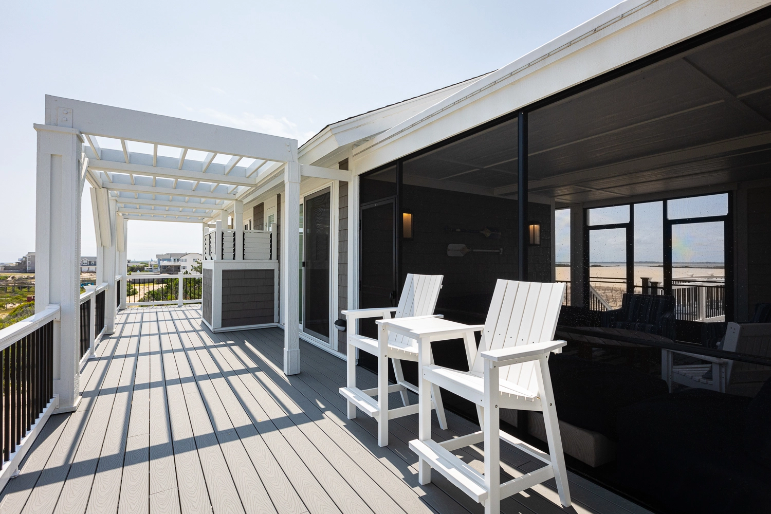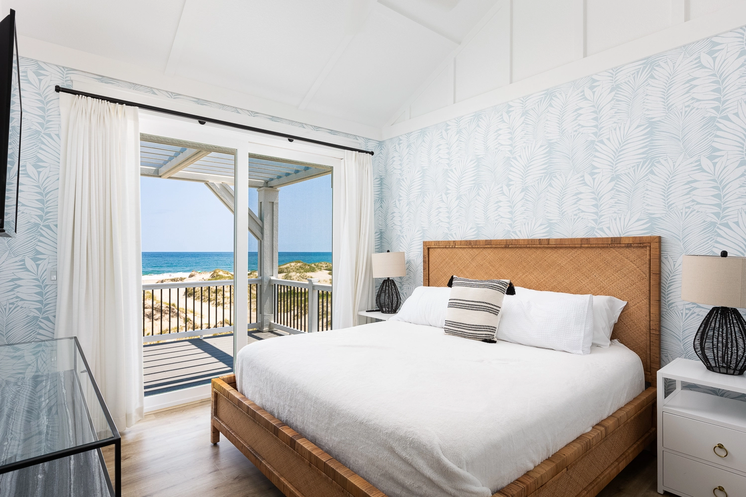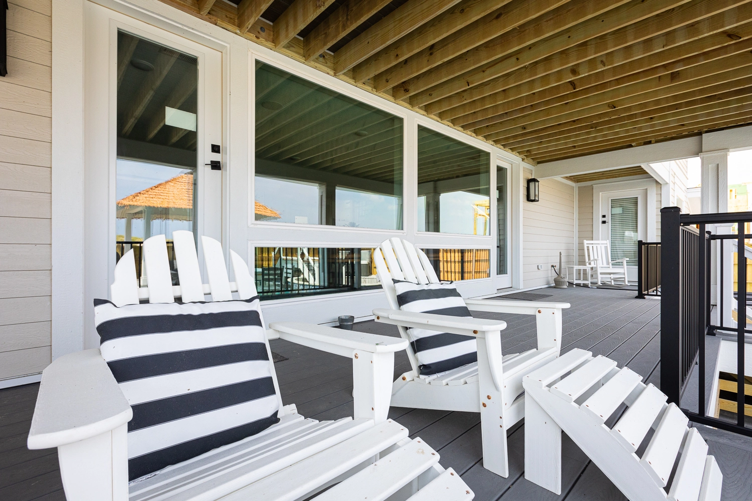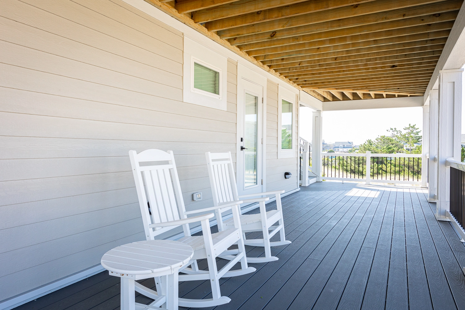 "We loved the location - right on the beach with beautiful views! The home was extremely clean and beautifully decorated (I'm an interior designer so that's important to me). The layout of the home was great, and it has so many amenities. We had private chefs all week and they LOVED the kitchen. The screened porch was one of our favorite places to hang out. We stayed in the bedroom in the separate section and never heard a thing from the main house (lots of grandkids up early). Loved having access to the deck from our bedroom and sleeping with the doors open so we could listen to the ocean (it's still cool at night). We also heard quite a bit of horse activity at night and saw them a lot during the day."