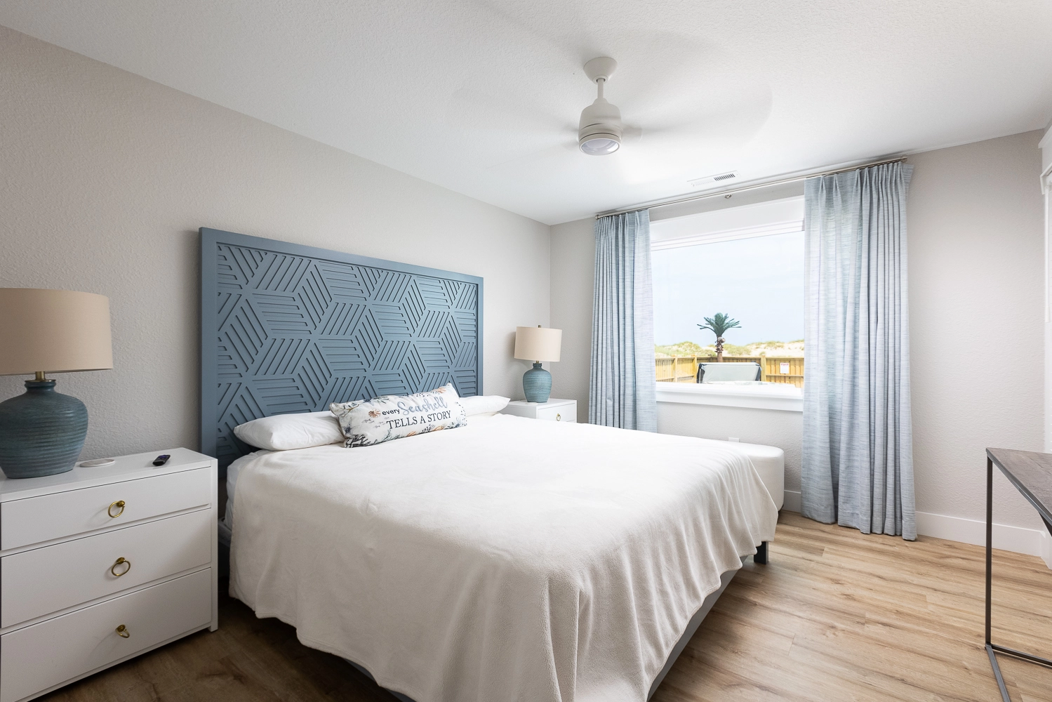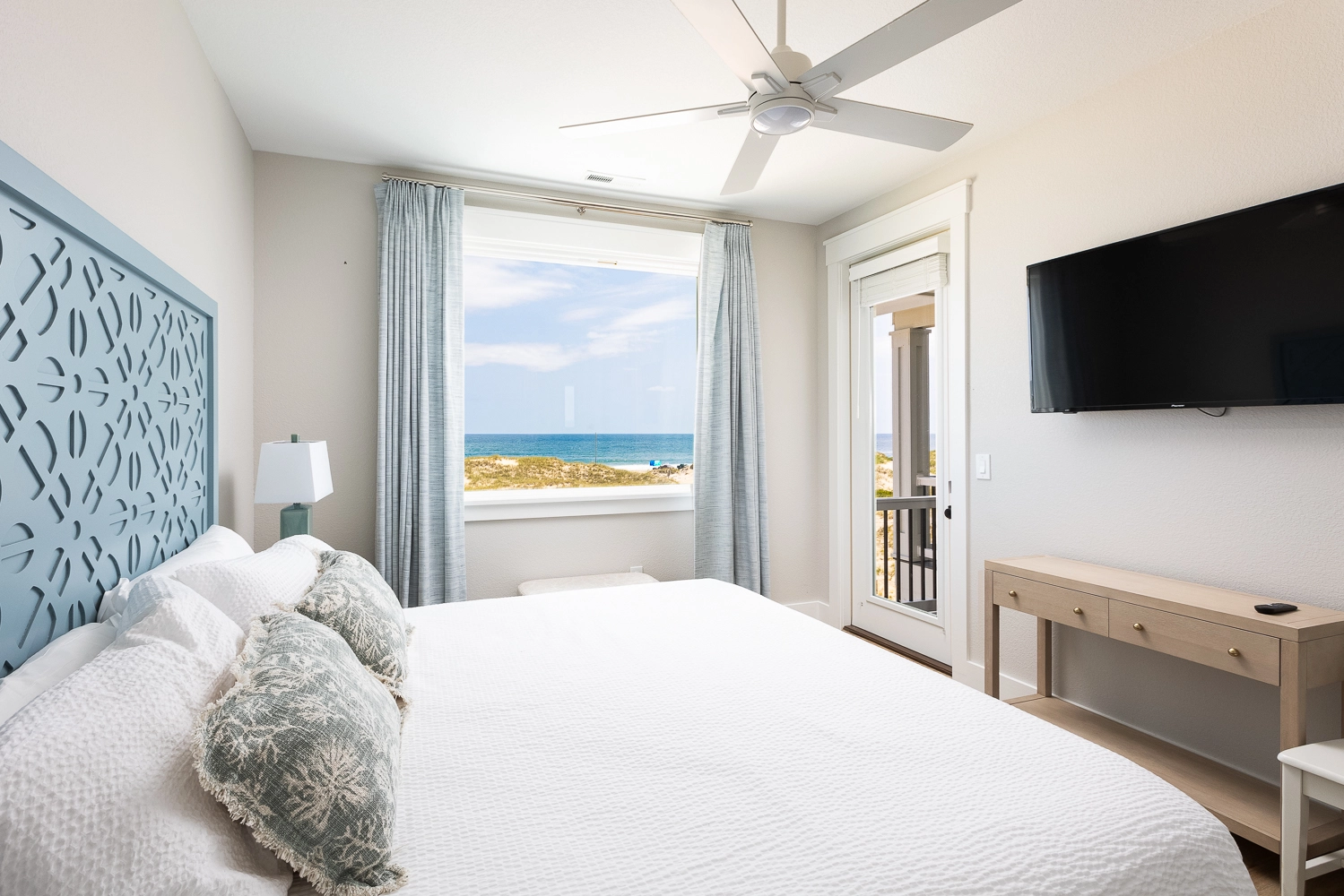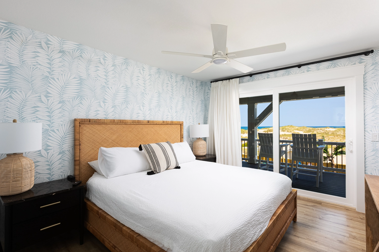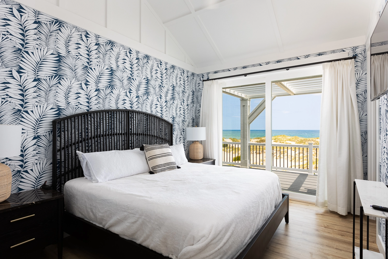 "We loved the location - right on the beach with beautiful views! The home was extremely clean and beautifully decorated (I'm an interior designer so that's important to me). The layout of the home was great, and it has so many amenities. We had private chefs all week and they LOVED the kitchen. The screened porch was one of our favorite places to hang out. We stayed in the bedroom in the separate section and never heard a thing from the main house (lots of grandkids up early). Loved having access to the deck from our bedroom and sleeping with the doors open so we could listen to the ocean (it's still cool at night). We also heard quite a bit of horse activity at night and saw them a lot during the day."