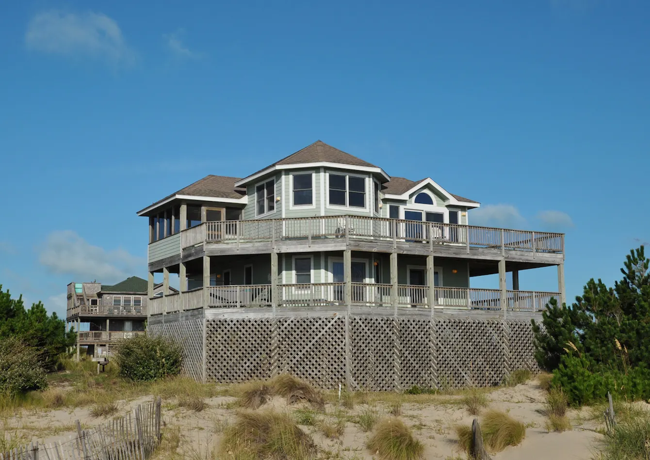 "Good Vibrations had a great view of the ocean and beach. 3 of the nights we stayed there, we had a gorgeous view of the night sky with the Milky Way clearly visible along with some shooting stars! It was an easy home to spot and access within the 4x4 area. This is a 3 1/2 level house, as I would think most in the 4x4 are, so those who cannot do stairs its not recommended. Gorgeous sunrise views. There is also plenty of space inside and outside on the decks for everyone to enjoy their own space."