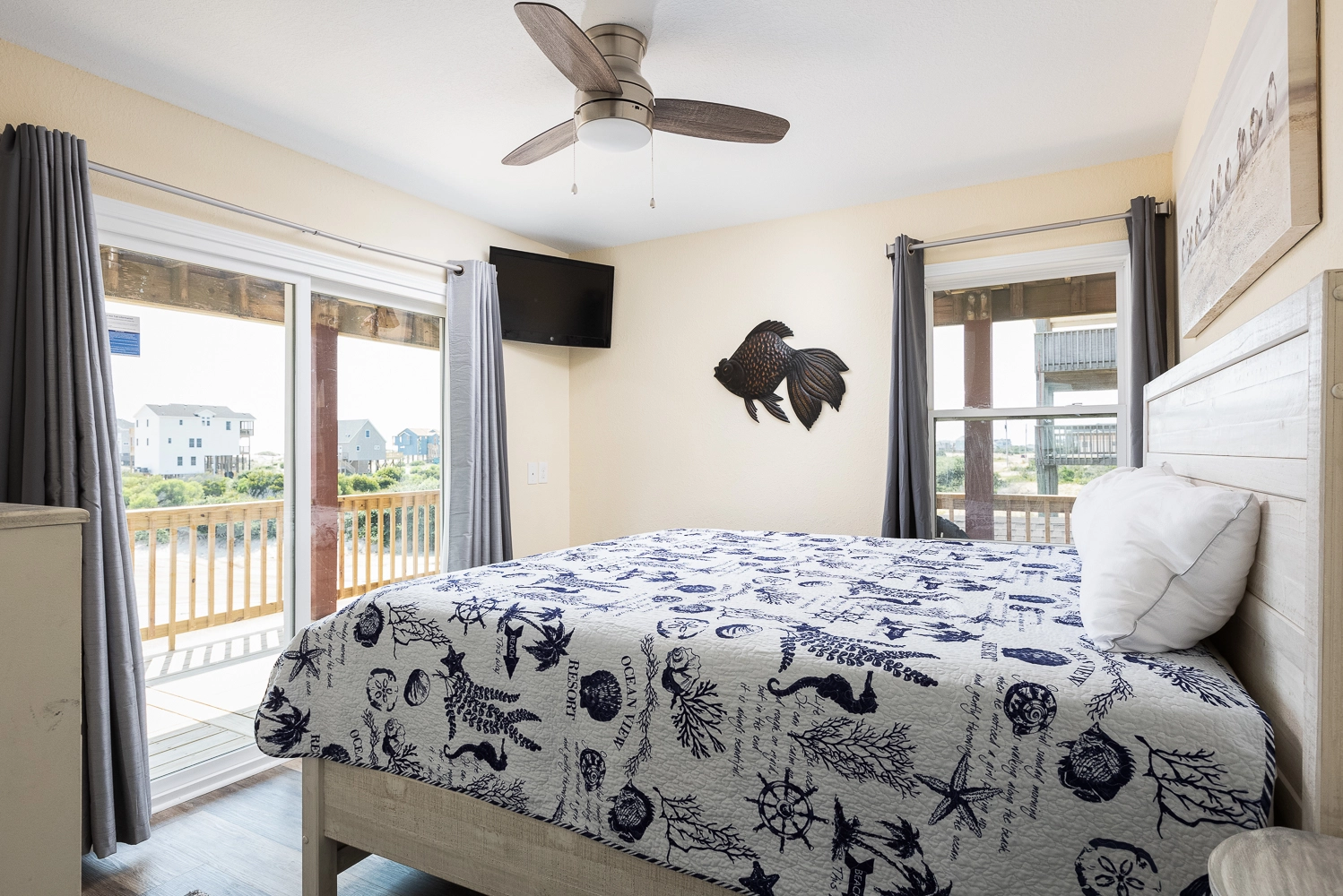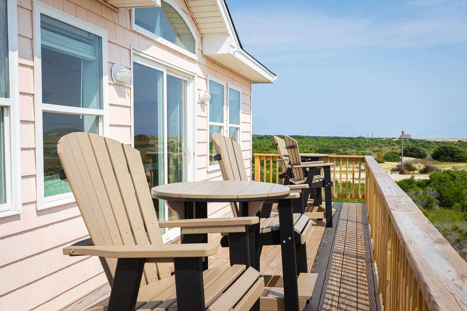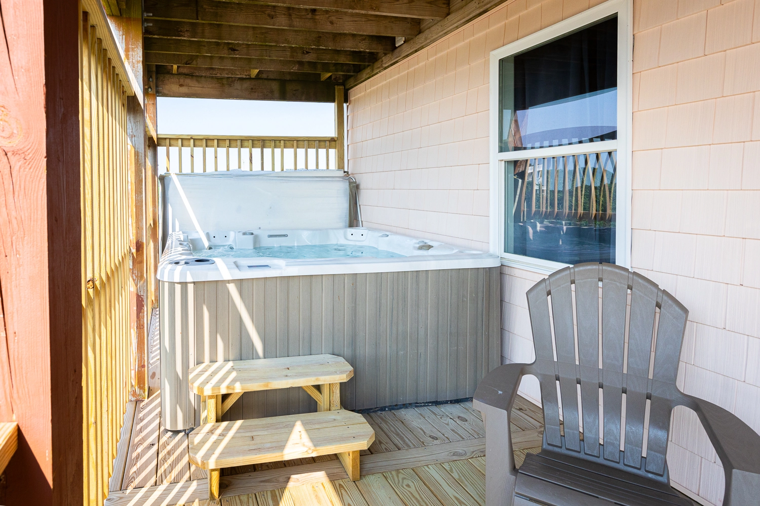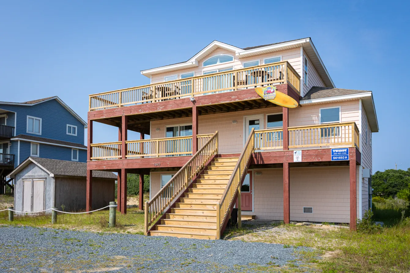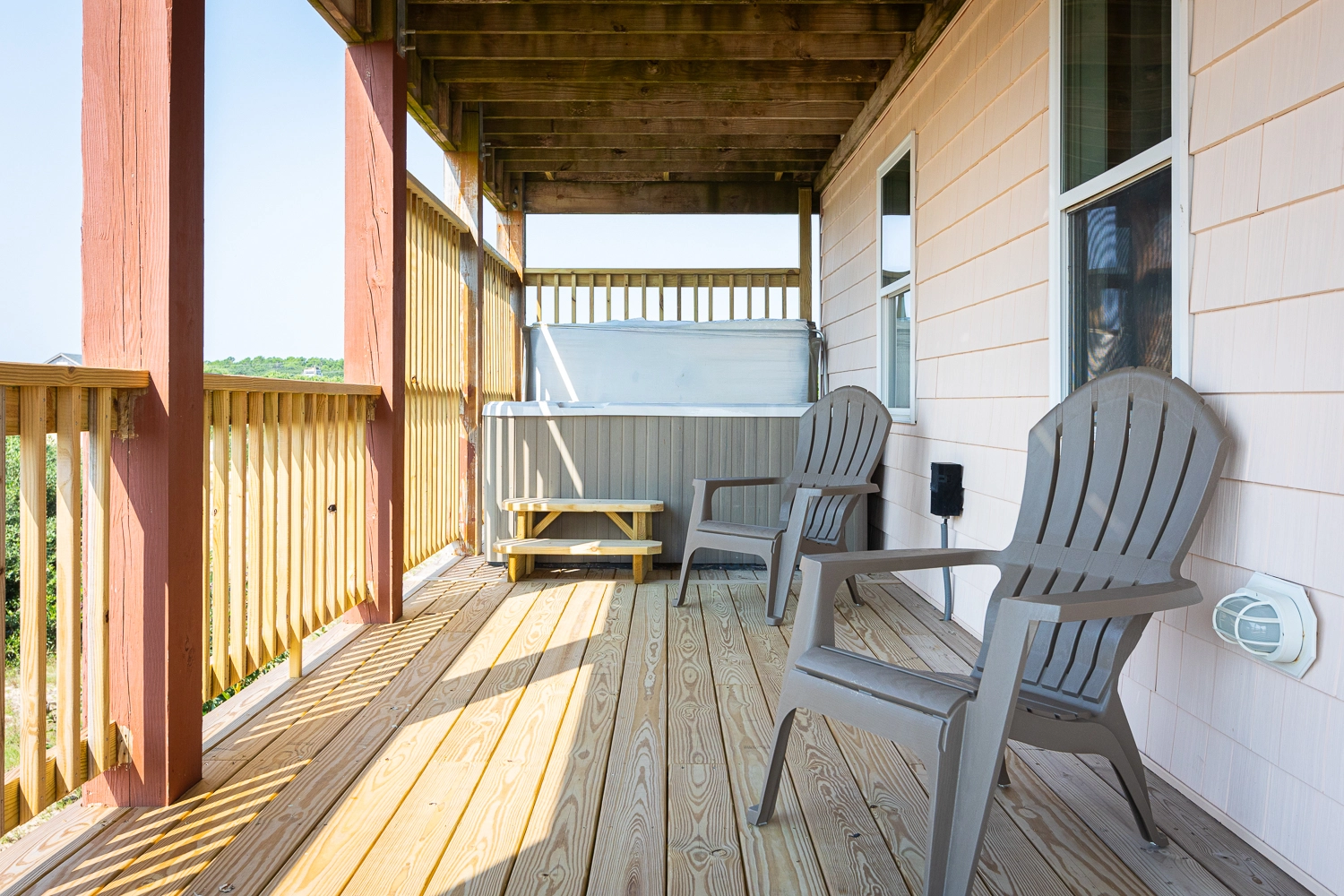 "We loved our stay at the Nauti Pelican. The house had everything we needed and was nice and spacious for our family to spread out. The hot tub and screened in porch were perfect for rainy nights or if it was too hot to sit on the front deck. We loved sitting on the balcony and watching the horses! It was super easy to drive down to the 4x4 Beach and set up for the day. We would definitely love to stay here again!"