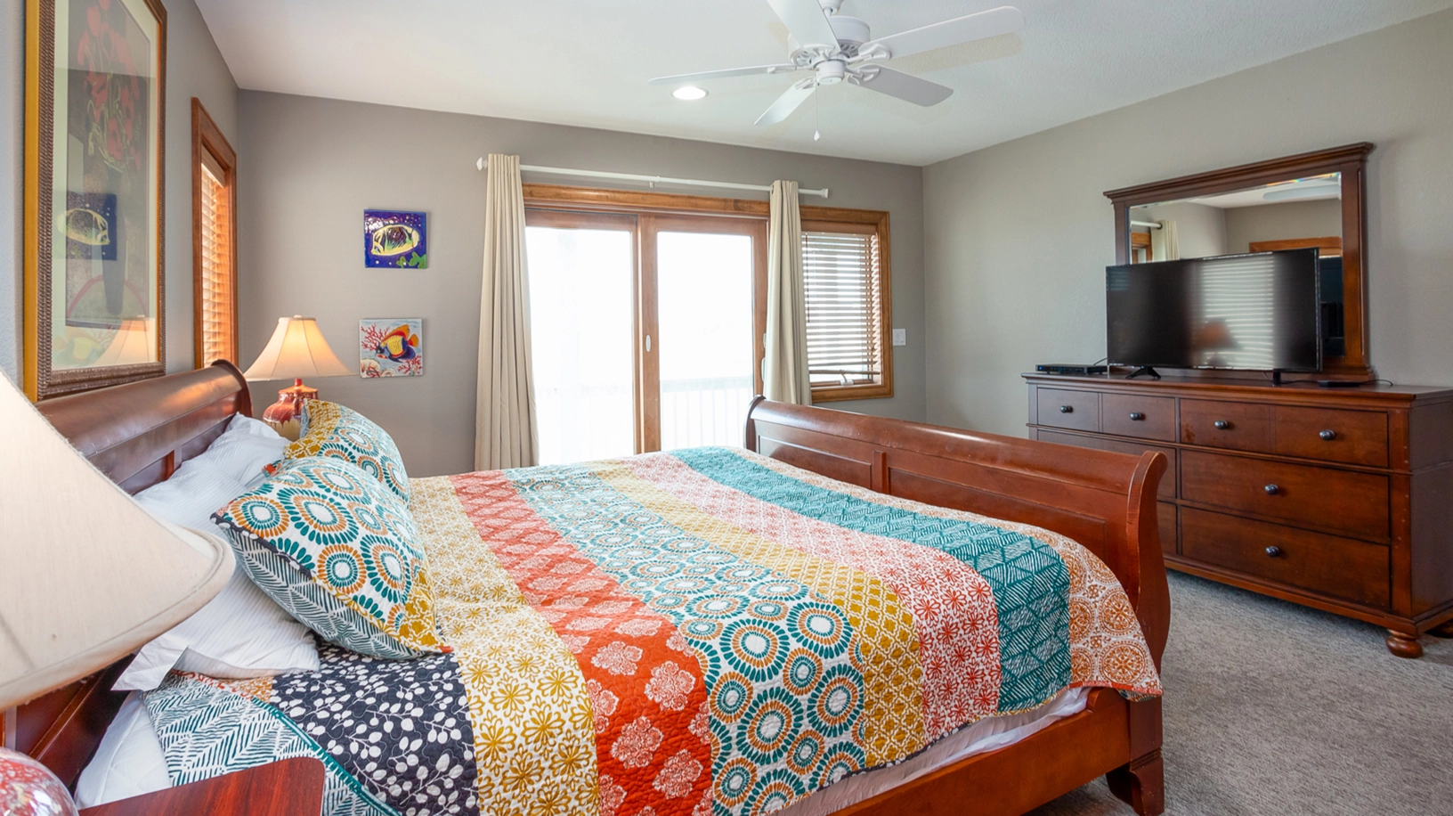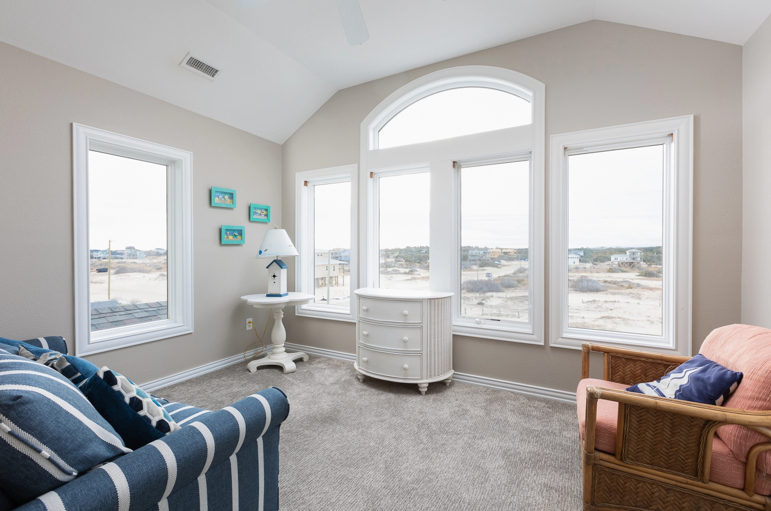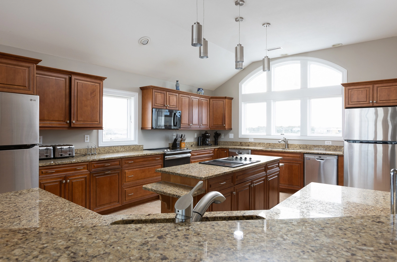 "The home has lots of room and resources. In addition to the nice sized bedrooms, each floor has a space where you can get away from the chaos. There is ample refrigerator space and lots of dishes, bowls, coffee cups, coffee makers and utensils. The house also has the only fully functioning ice machine we have ever experienced in the OBX."