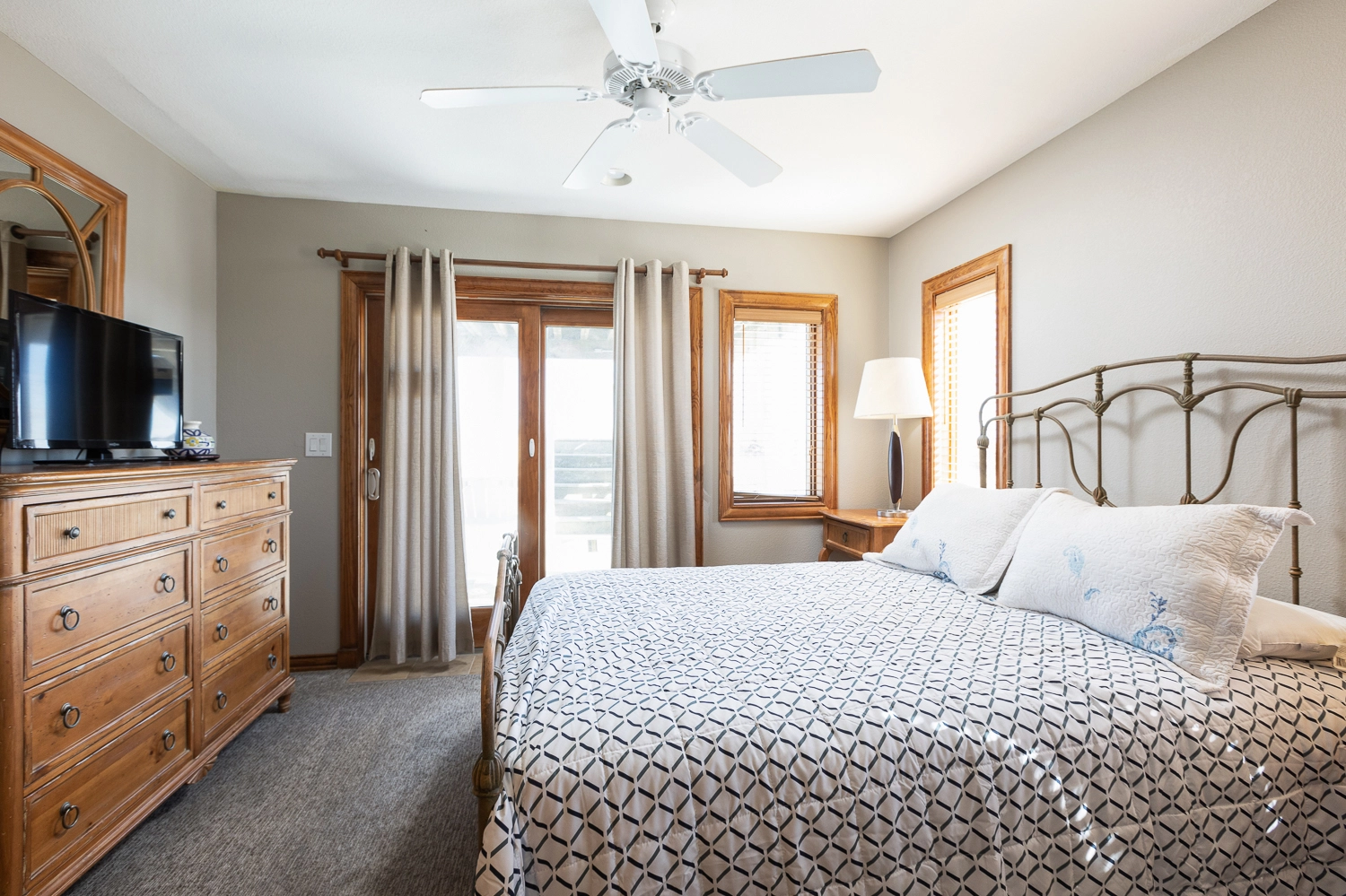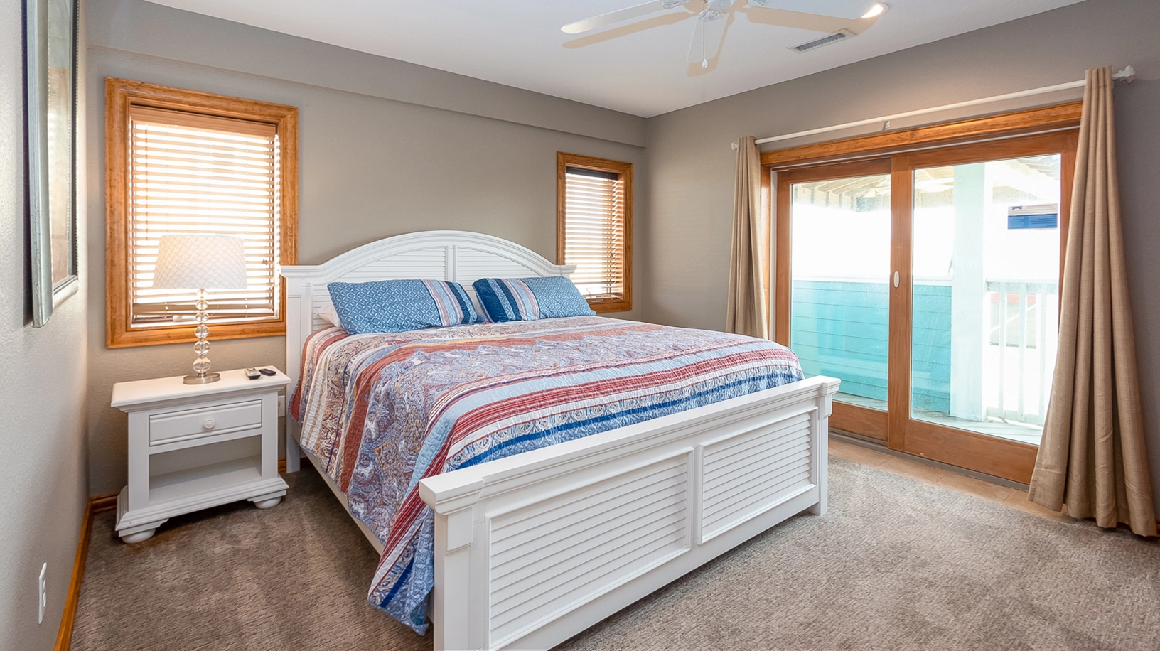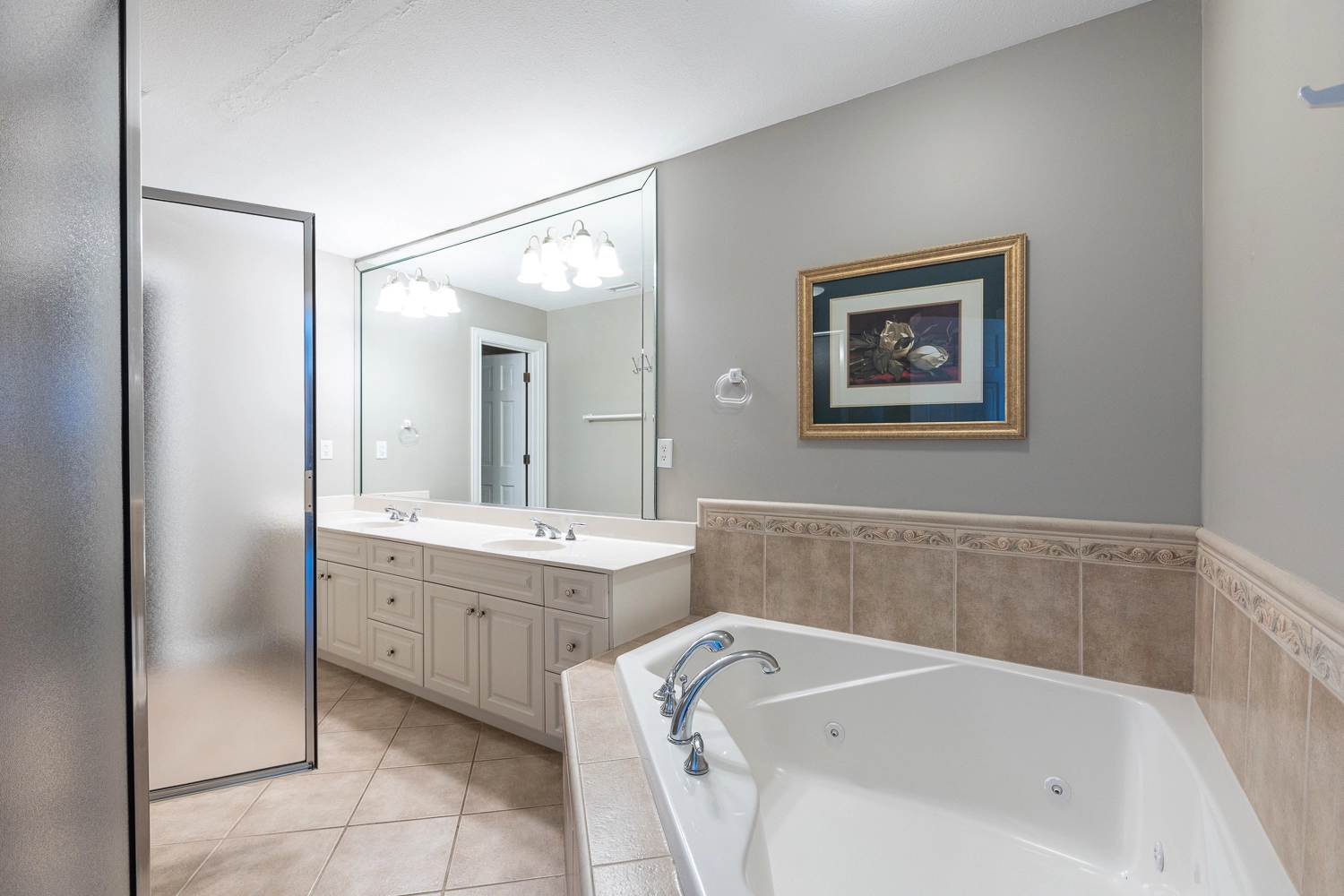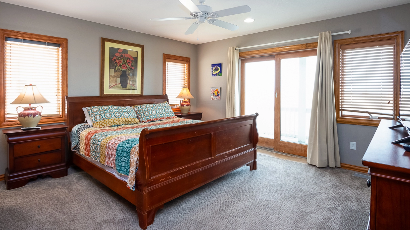 King, Tiled shower, Whirlpool tub, Dual sink, Deck access