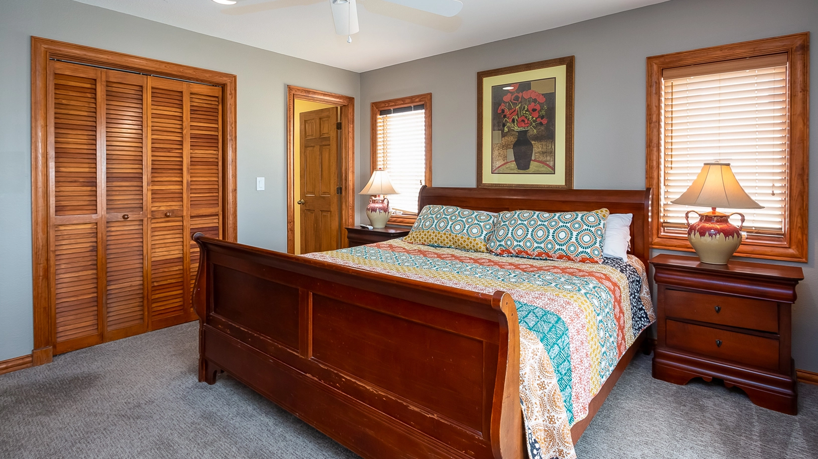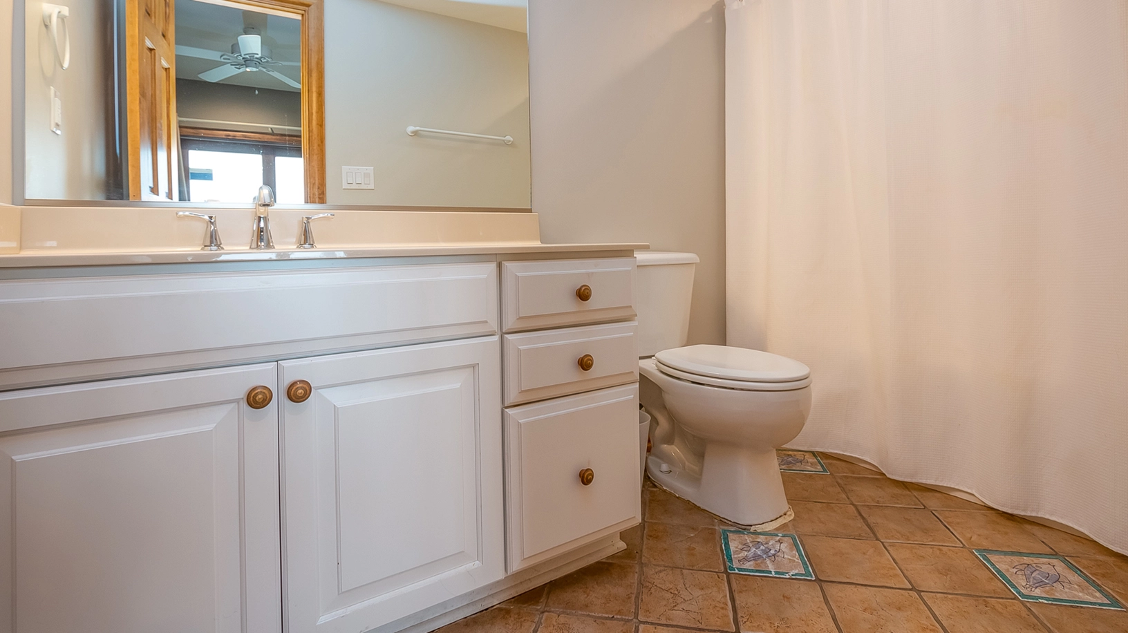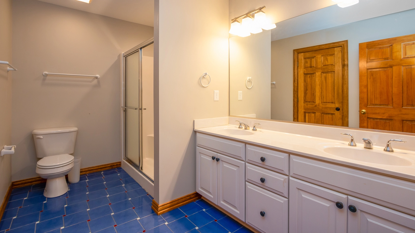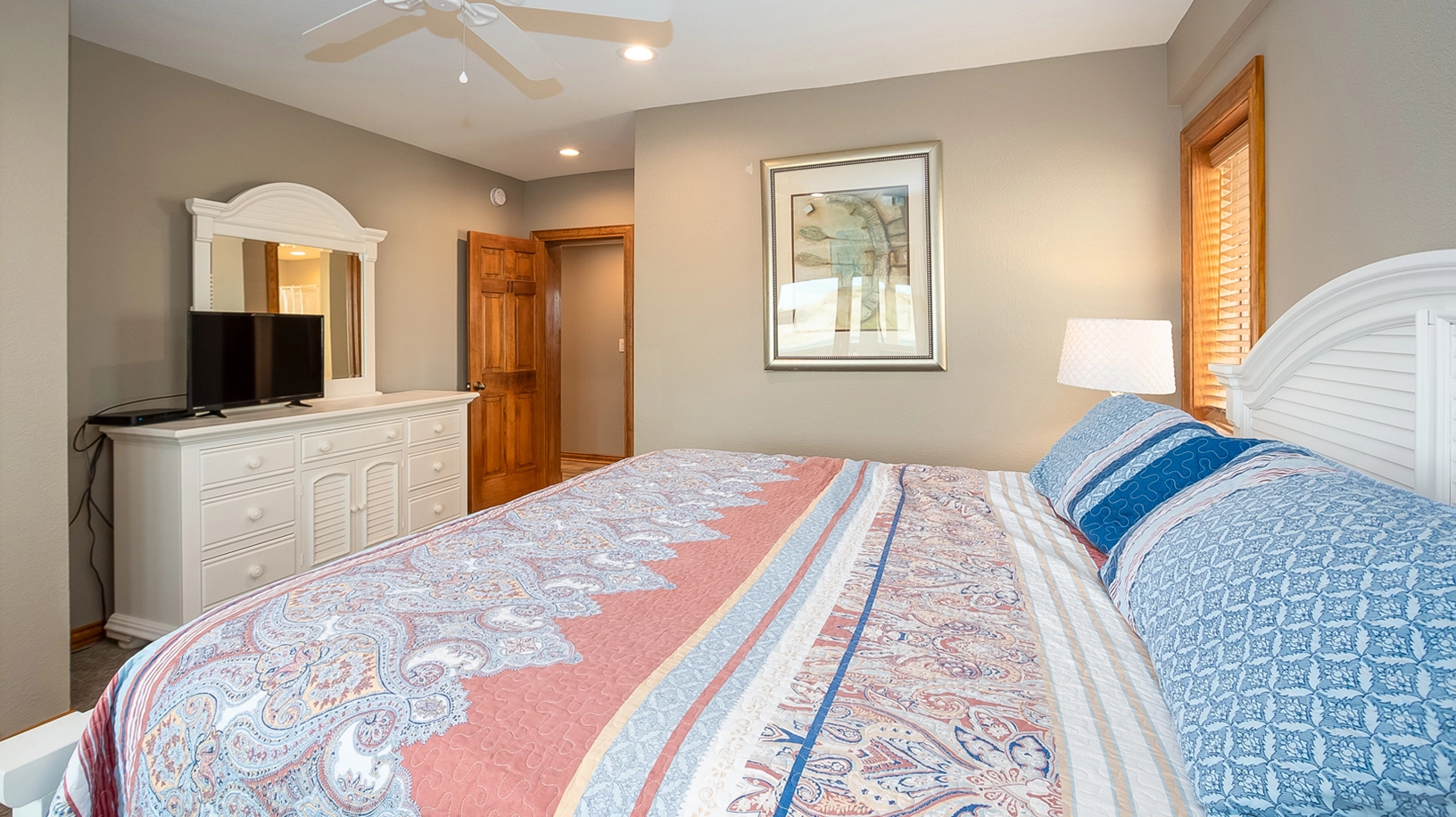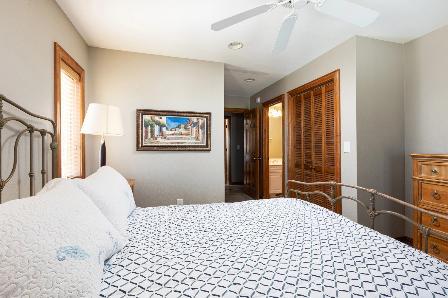 King, Tiled shower, Whirlpool tub, Dual sink, Deck access