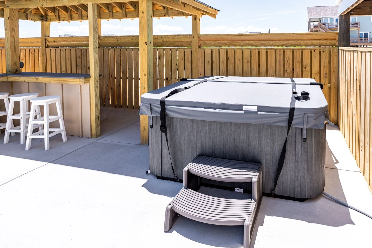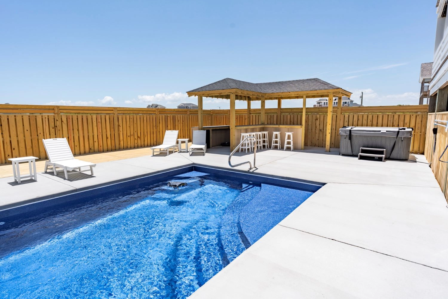 Private pool with poolside cabana, hot tub, and two outdoor showers.