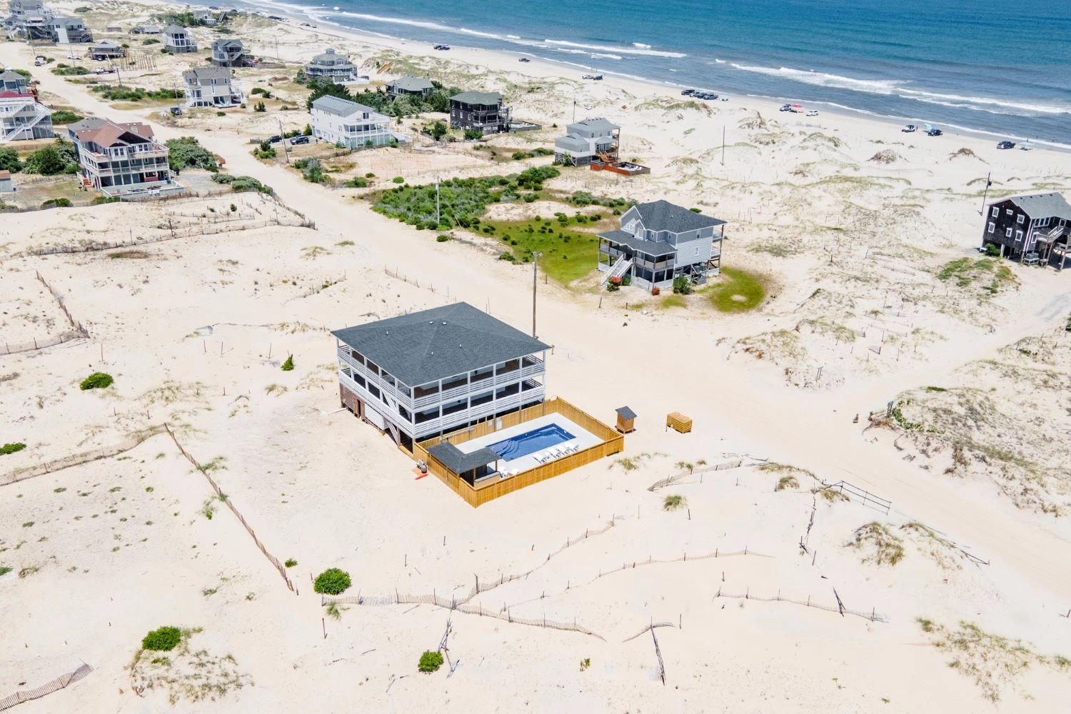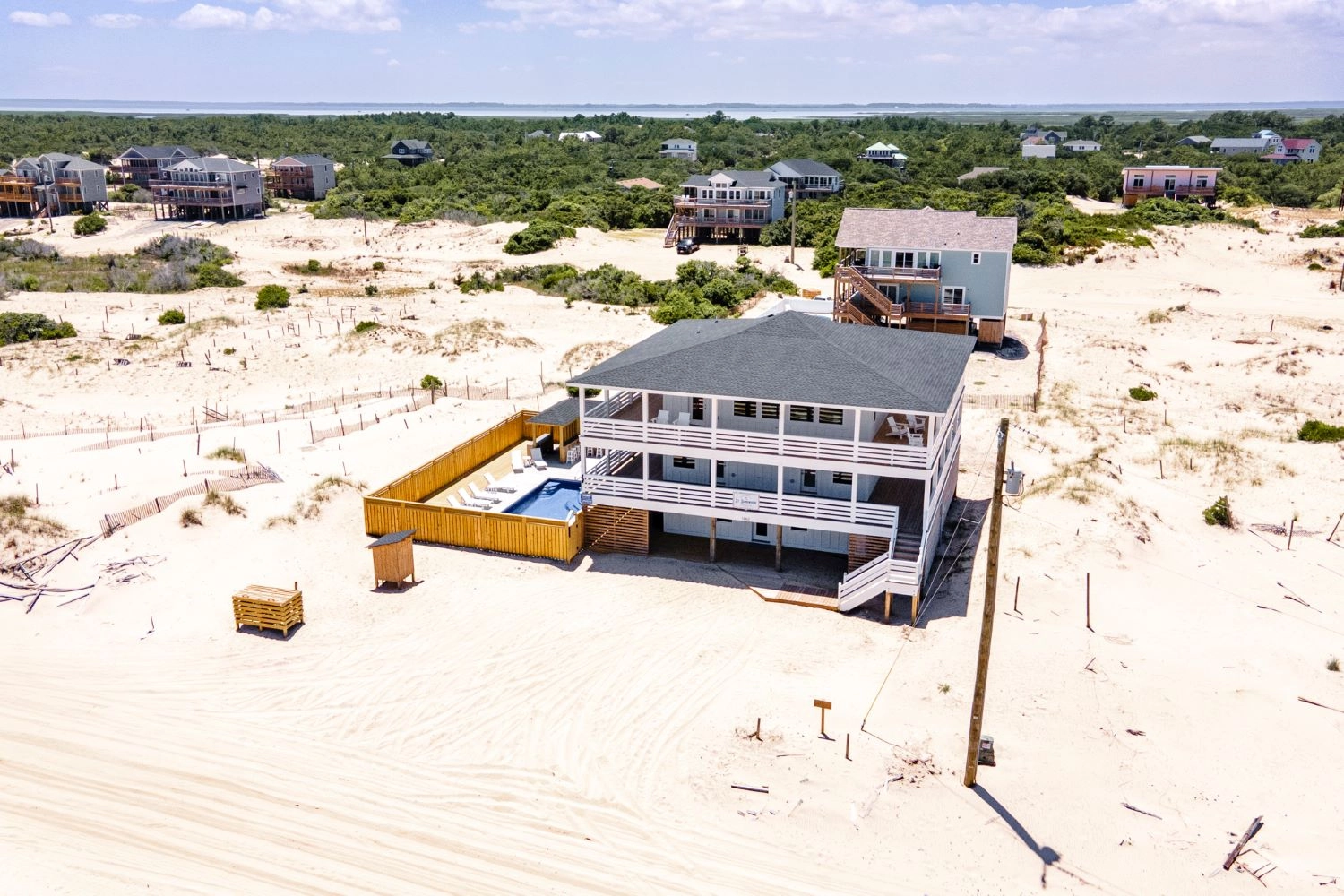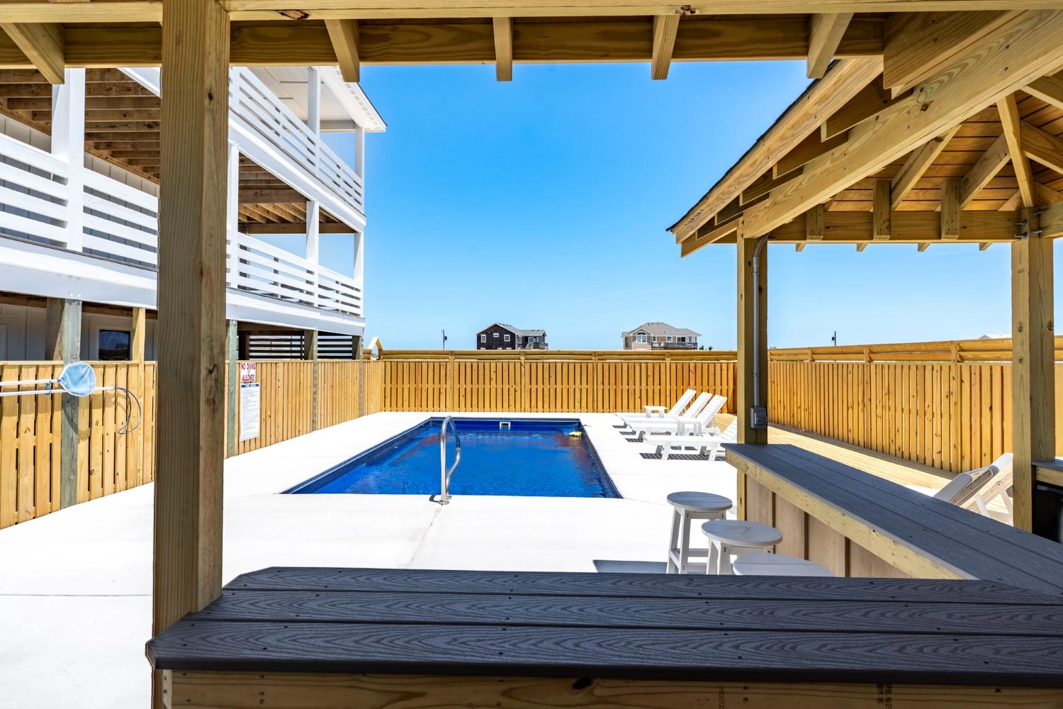 "The house was perfect. Great layout, beautiful decor, well stocked (even had plenty of beach chairs), decks wrapped around the house, and the pool/outdoor bar area was a perfect touch. Close proximity to the beach, can walk or drive. Home came with beach parking pass which was also very convenient. Being only 3 miles up the beach made for a short commute to town which occupied our rainy days when we couldn’t enjoy the beach. Can’t wait to stay again!"