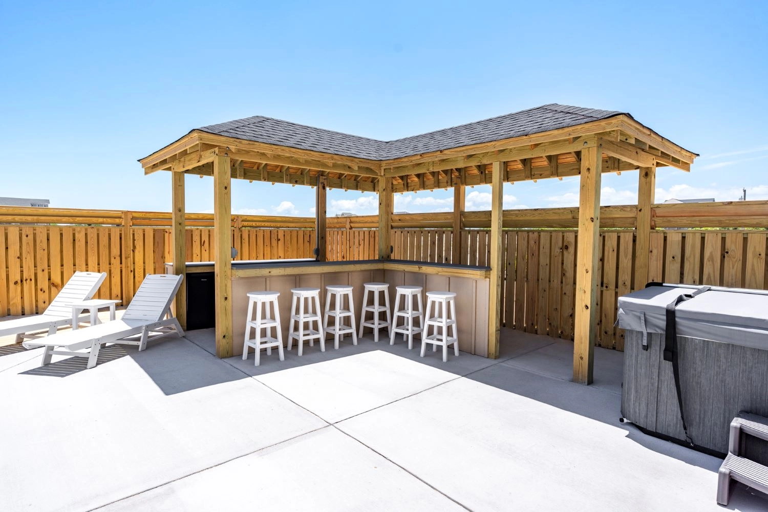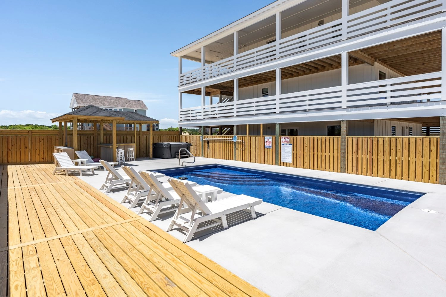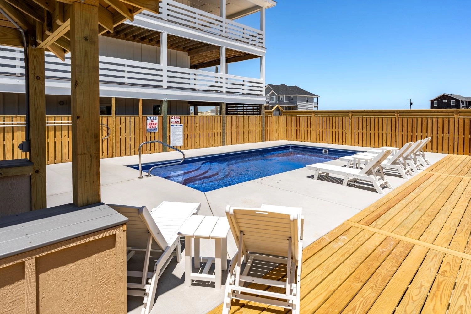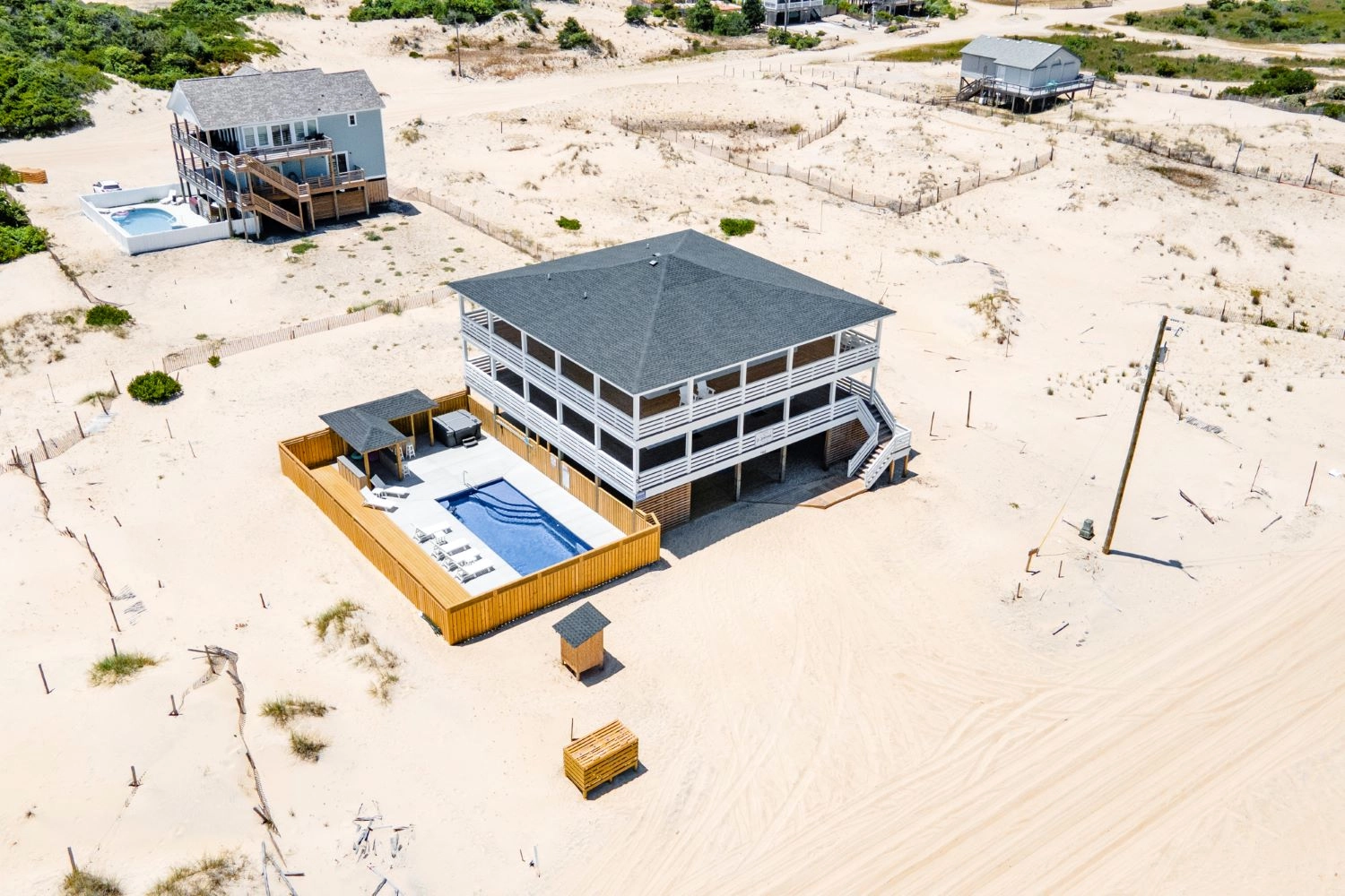 "The house was perfect. Great layout, beautiful decor, well stocked (even had plenty of beach chairs), decks wrapped around the house, and the pool/outdoor bar area was a perfect touch. Close proximity to the beach, can walk or drive. Home came with beach parking pass which was also very convenient. Being only 3 miles up the beach made for a short commute to town which occupied our rainy days when we couldn’t enjoy the beach. Can’t wait to stay again!"