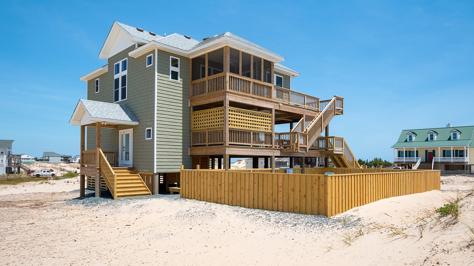 "Great home tastefully decorated with quality furnishings. Great location which made walking to the beach very quick and easy. Horses at the backdoor, side yard, on the roadway, and on the beach. Rooms were thoughtfully laid out with deck access from every room."