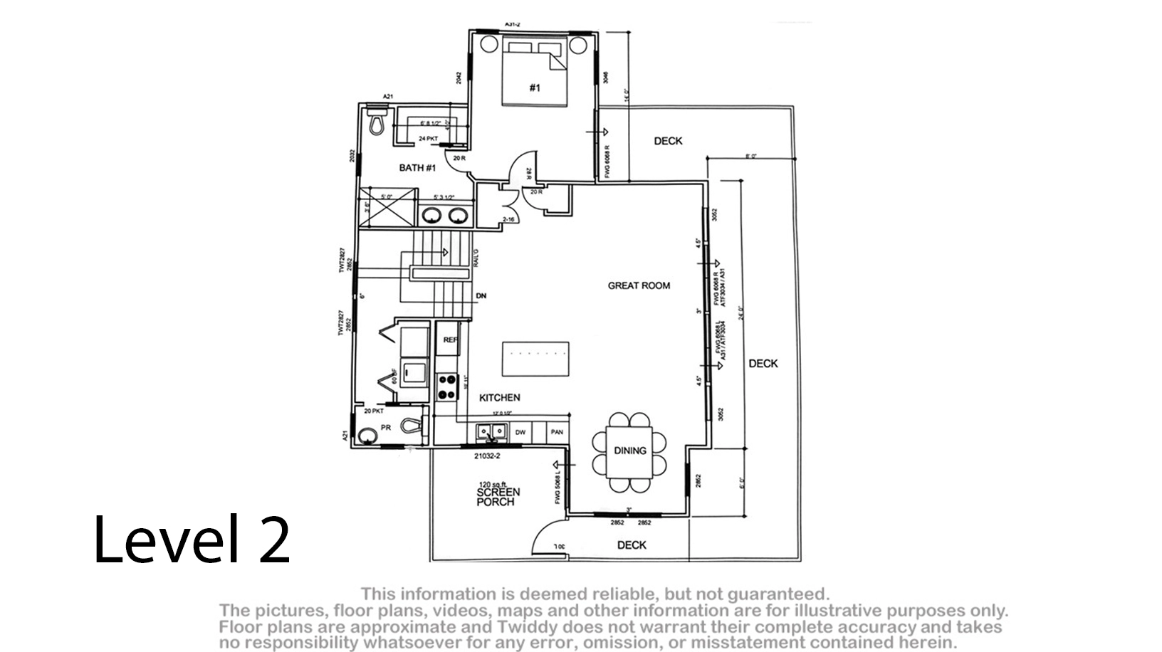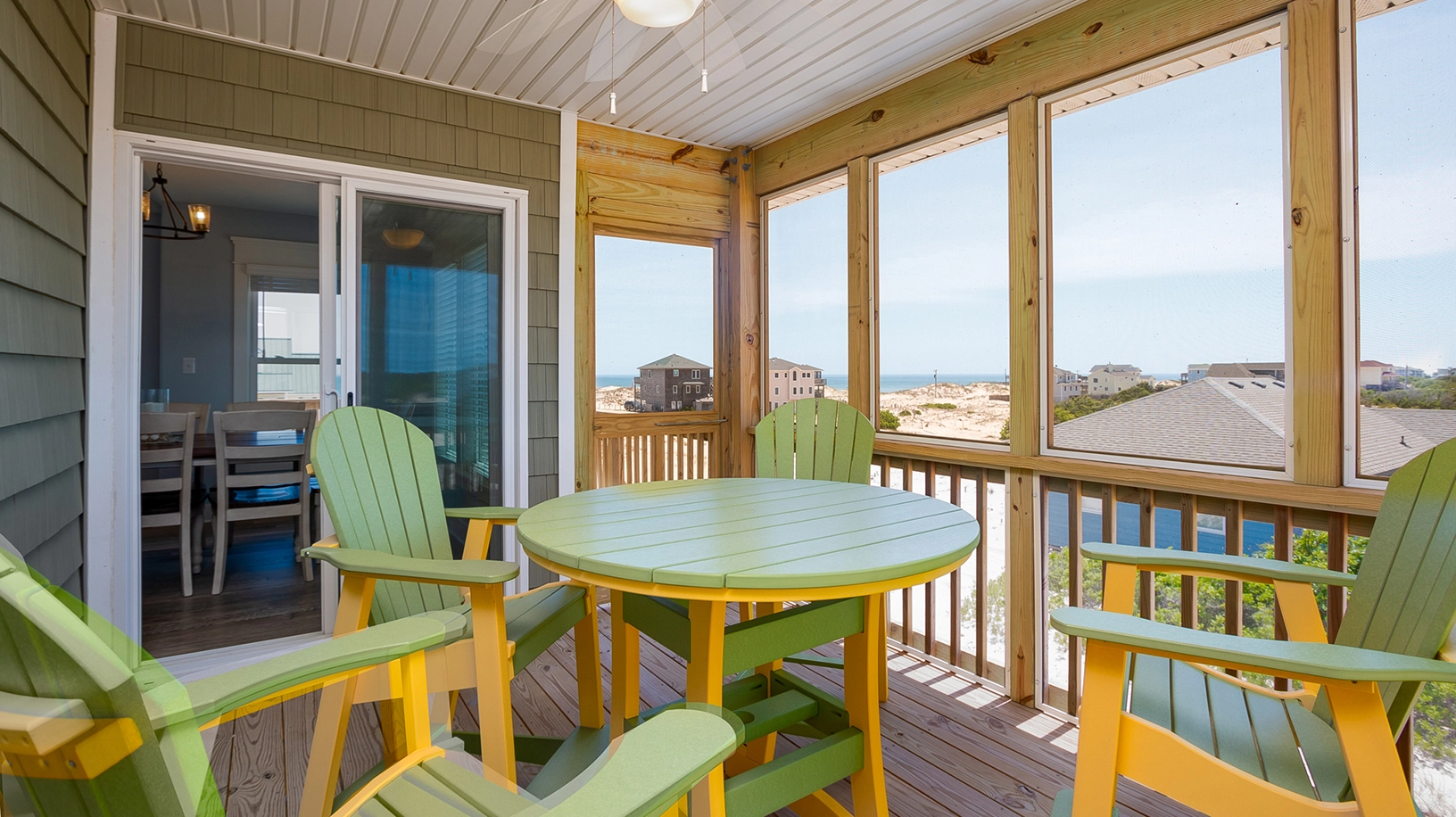 Great room; kitchen; dining area; screened porch.