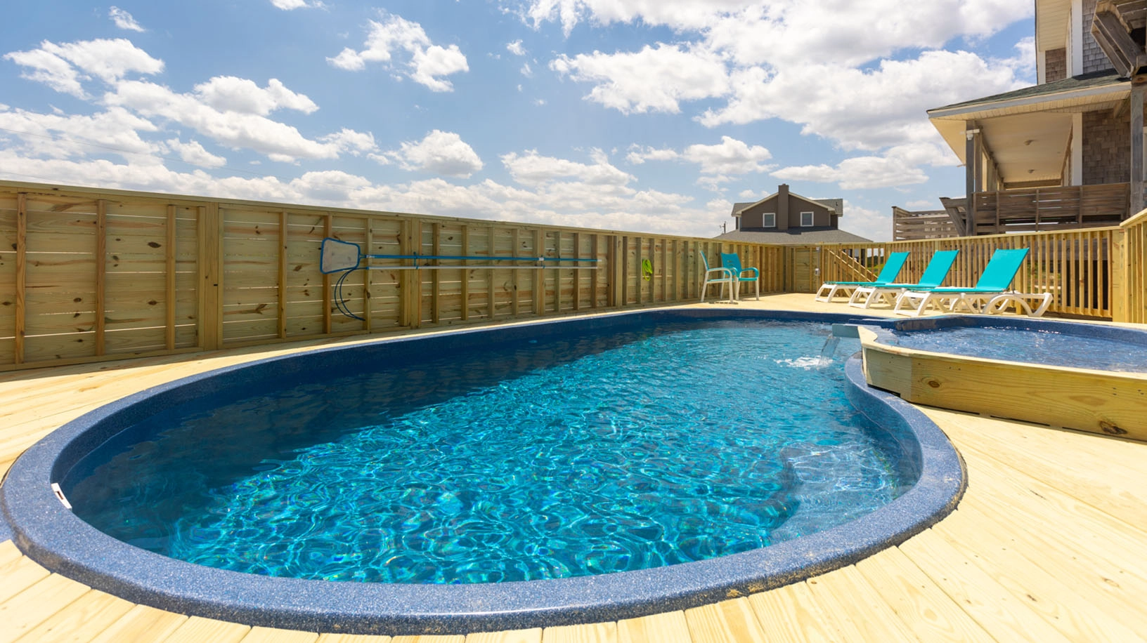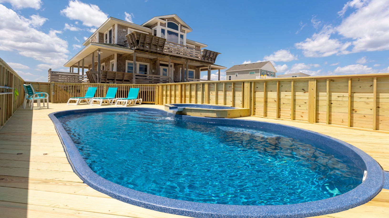"We love the layout of this home. Top level open floor plan is perfect. The multiple decks all around are great for ocean and horse viewing. Outside, pool and bar are awesome."