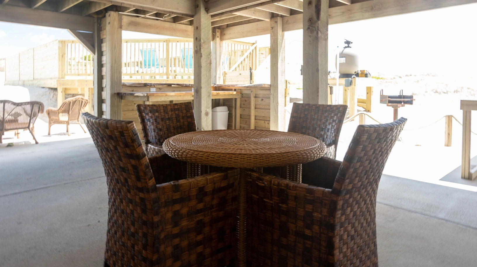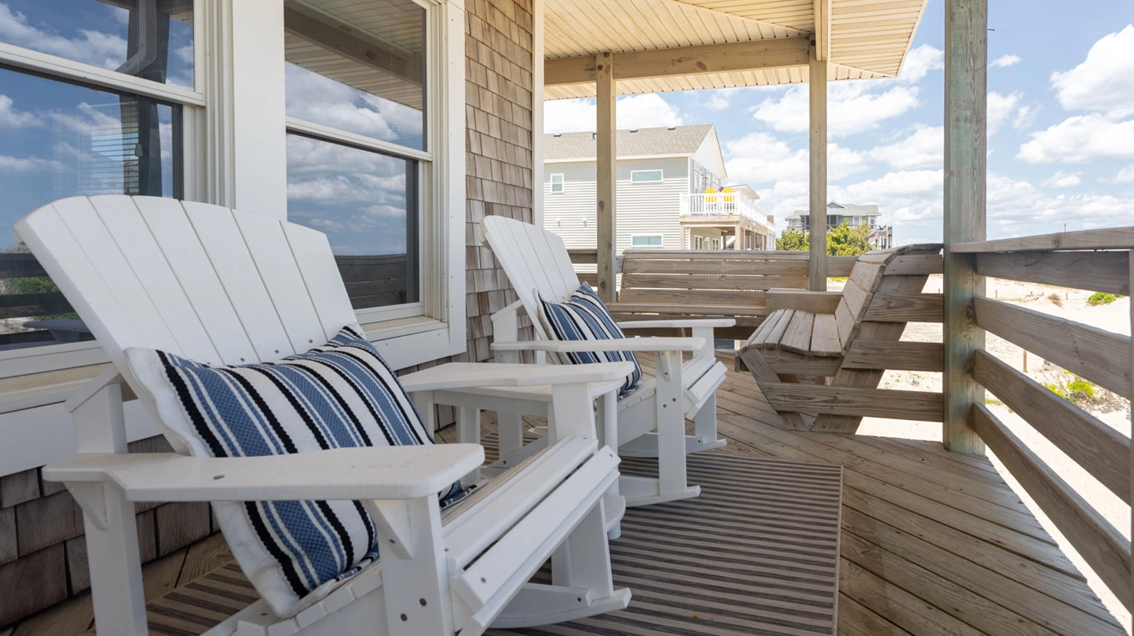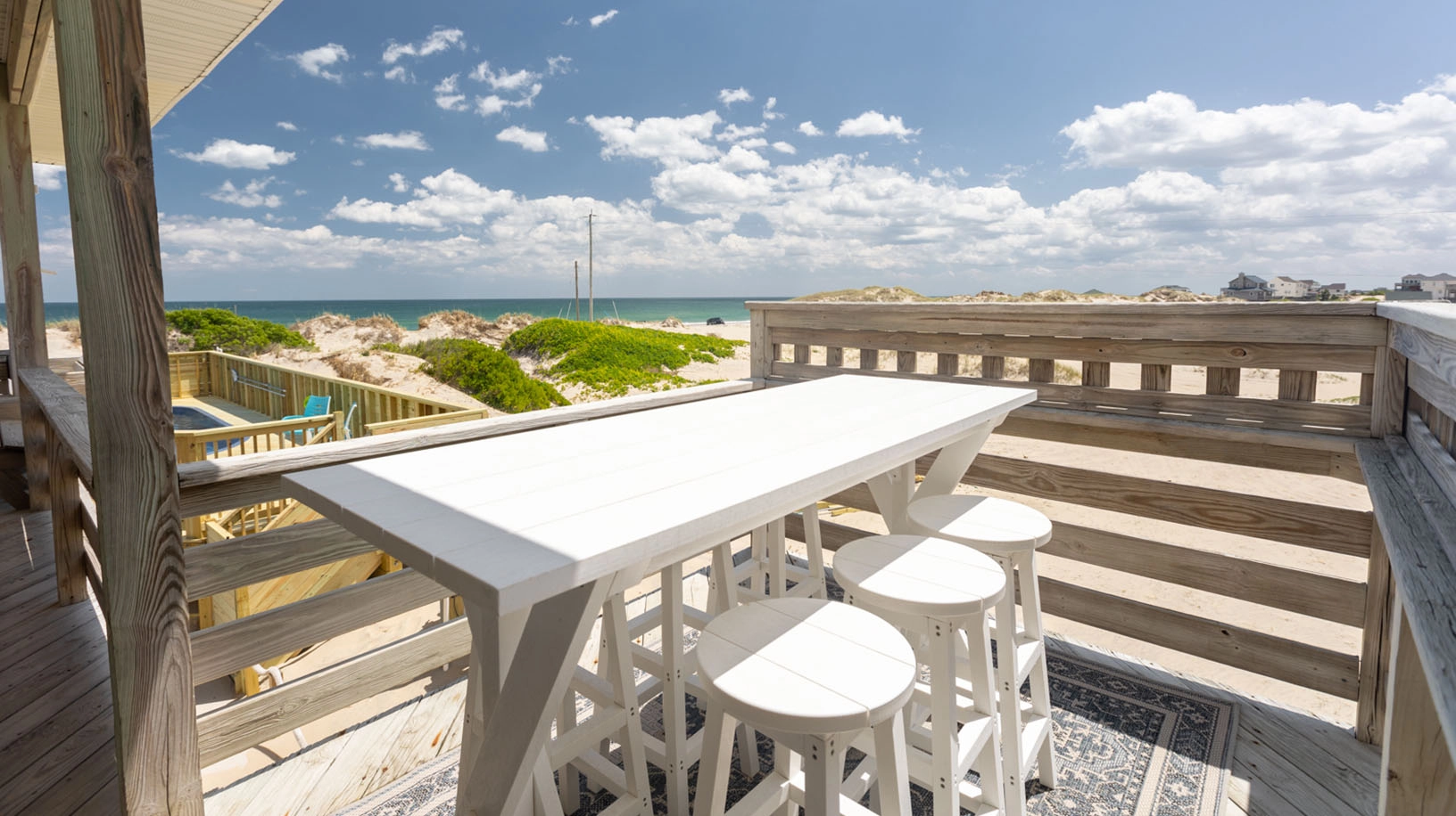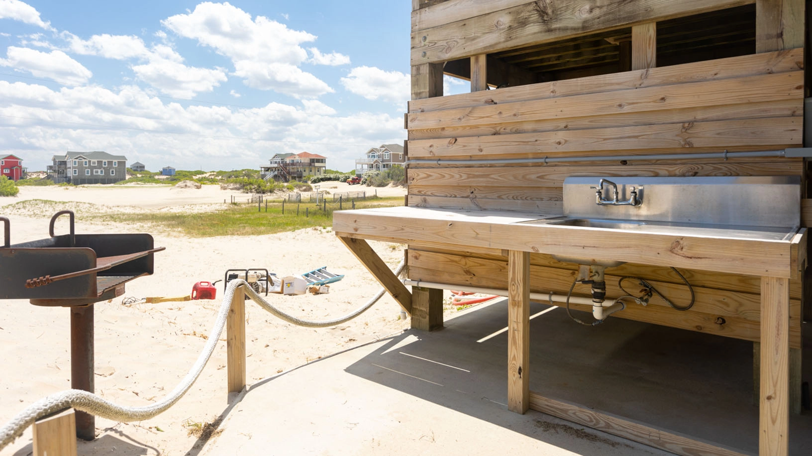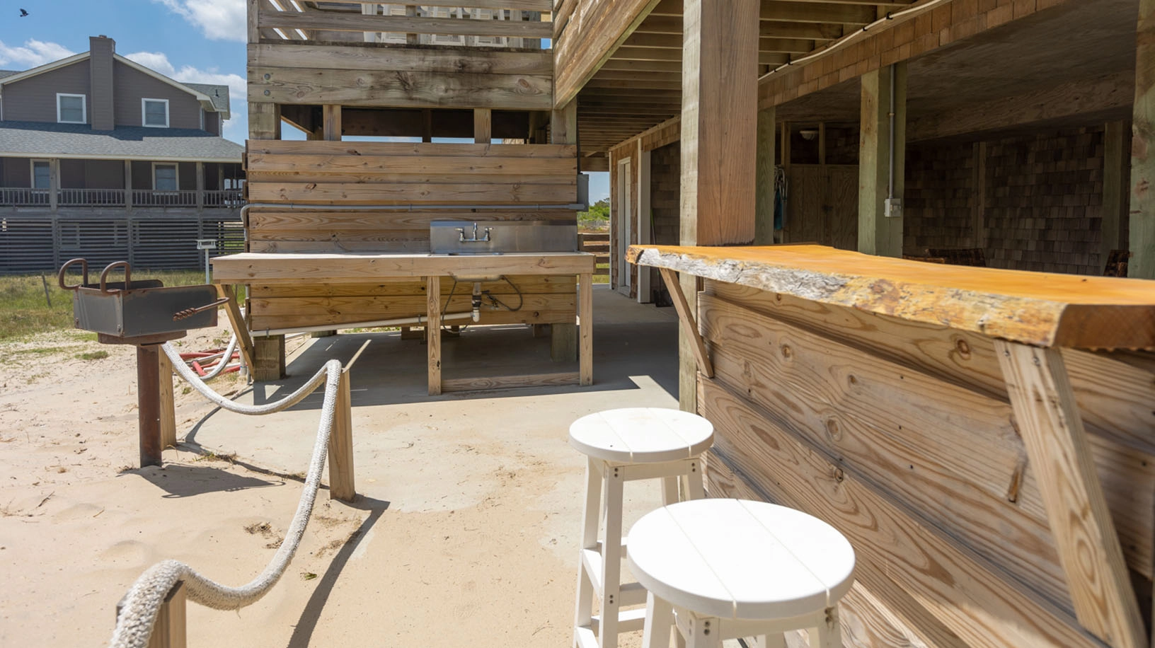 "This was our third year in a row staying at this home. We love the location, proximity to the beach, and the size is perfect for our family. You see horses everyday...even under the house! The additions of the concrete pads in front and around the house, the outdoor bar/seating area, outdoor sink, and new outdoors showers were welcome surprises when we pulled in to the home. Our son loved the new triple bunk bed. This is our go-to house to rent for years to come."