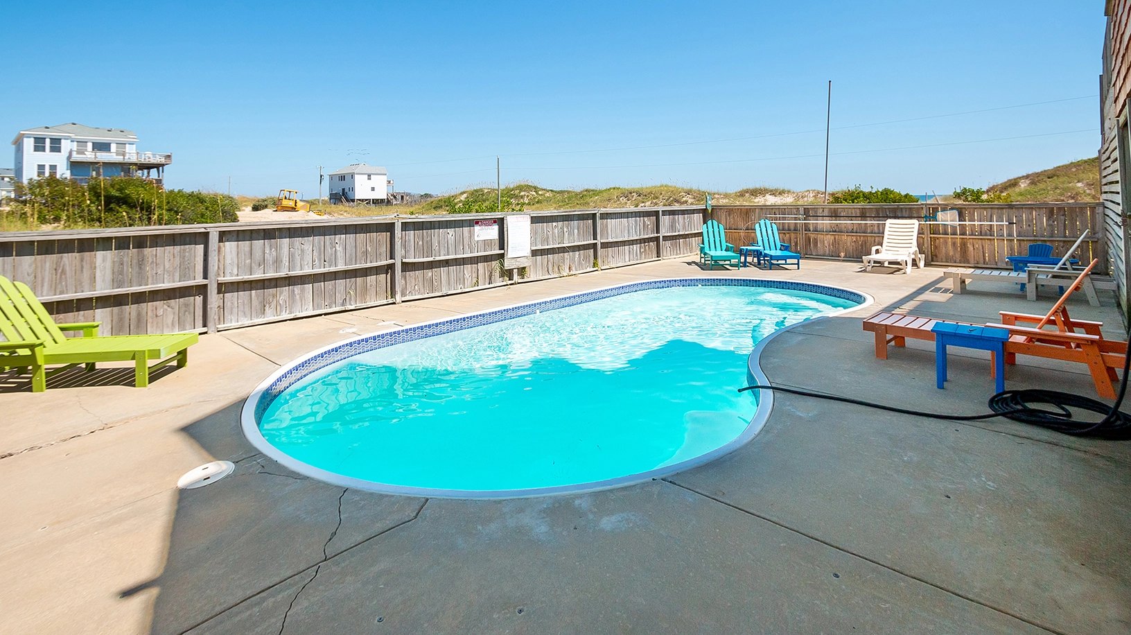 "Love the accessibility to the beach ! The downstairs fridge was helpful for extra beverages and fishing bait . The house was well stocked with pool toys, outdoor chairs and toys."