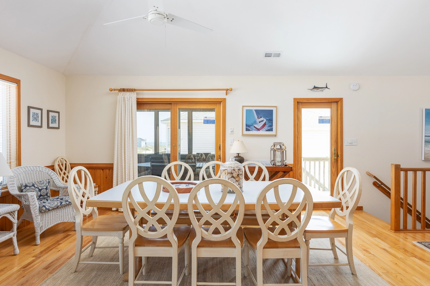 "This was our first time staying in the outer banks. The location was great. Easy access to the beach. We were visited by horses twice. The one complaint is there is no shovel to clean up after them. Twiddy was easy to work with. Would definitely go a different time of year. Midges made it virtually impossible to sit on the balconies. House was nice."
