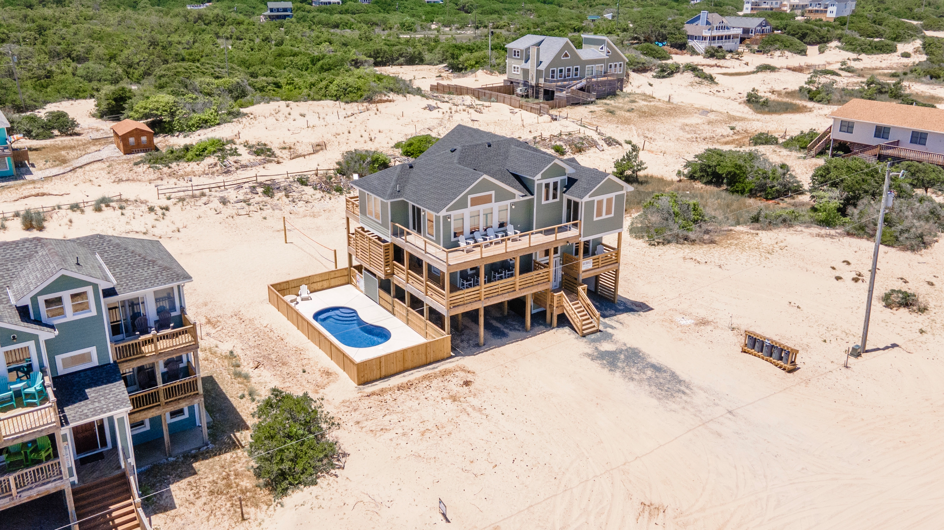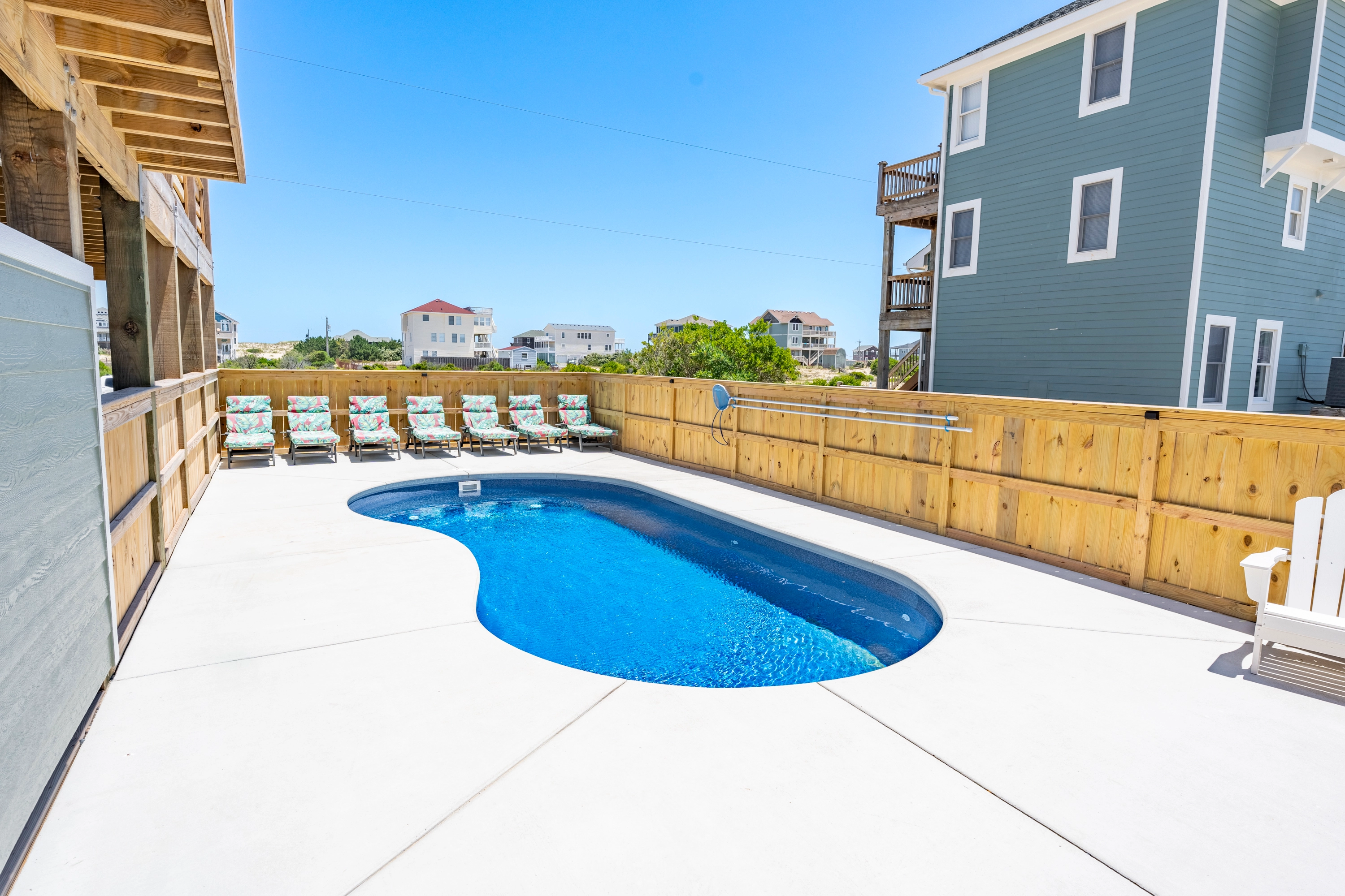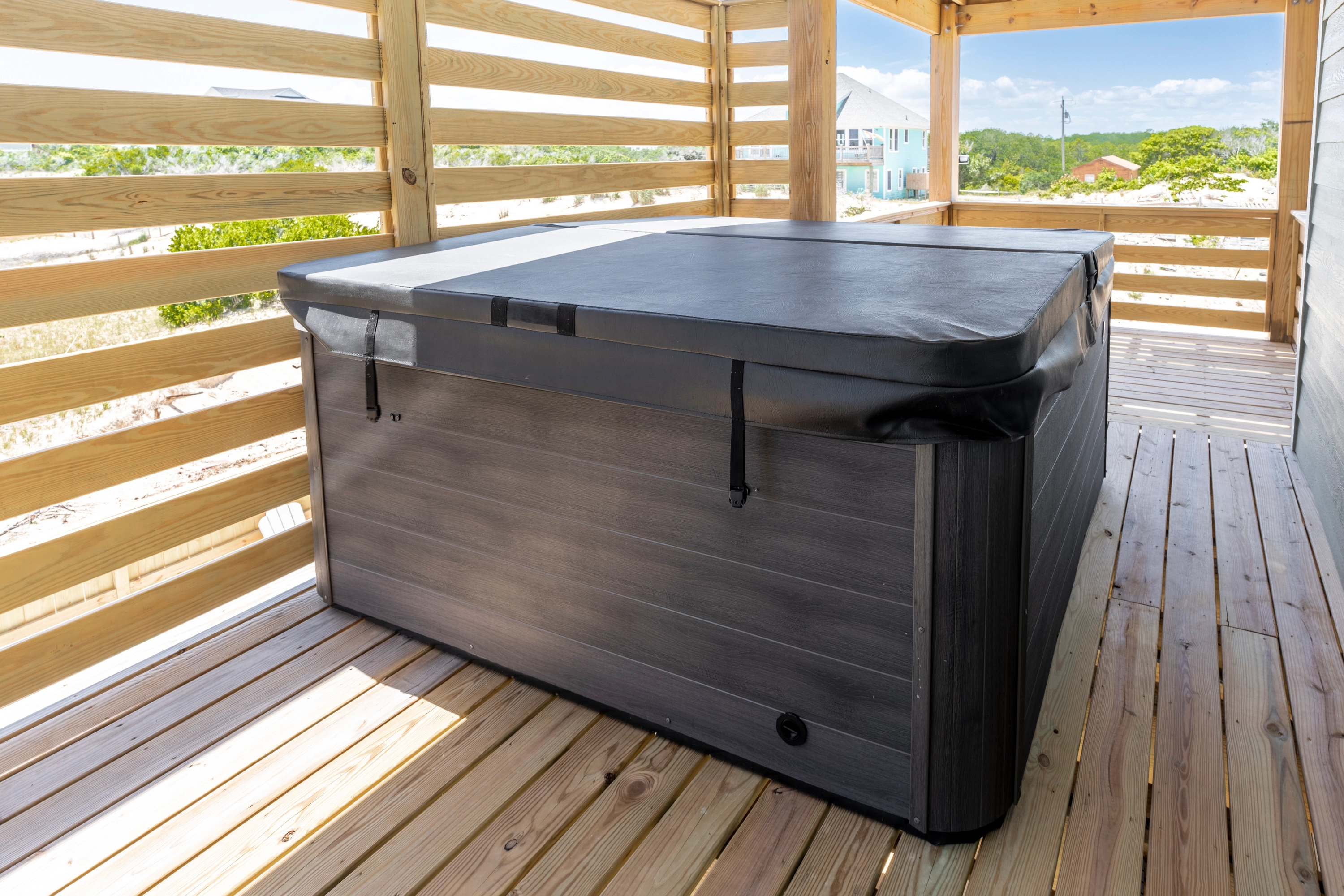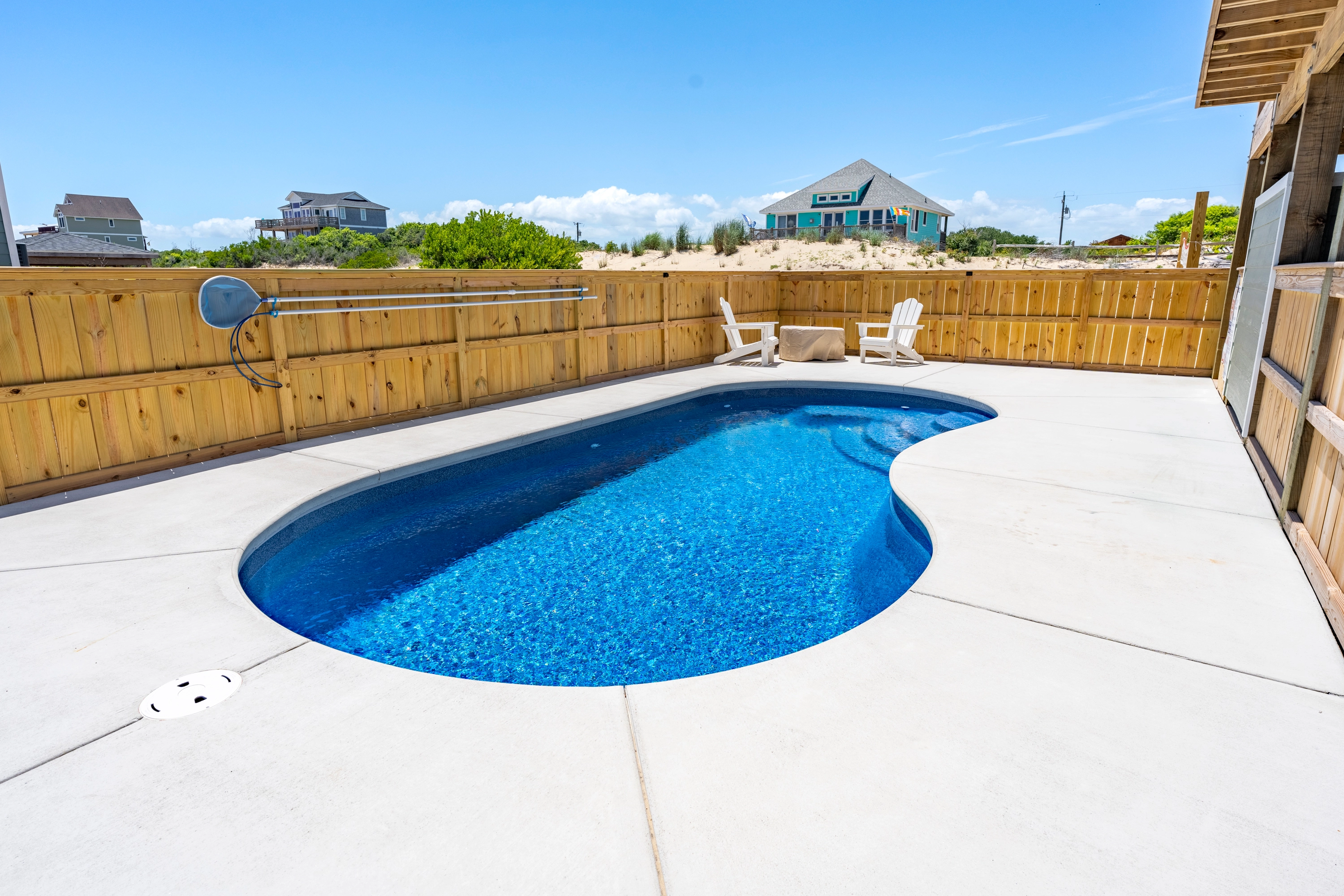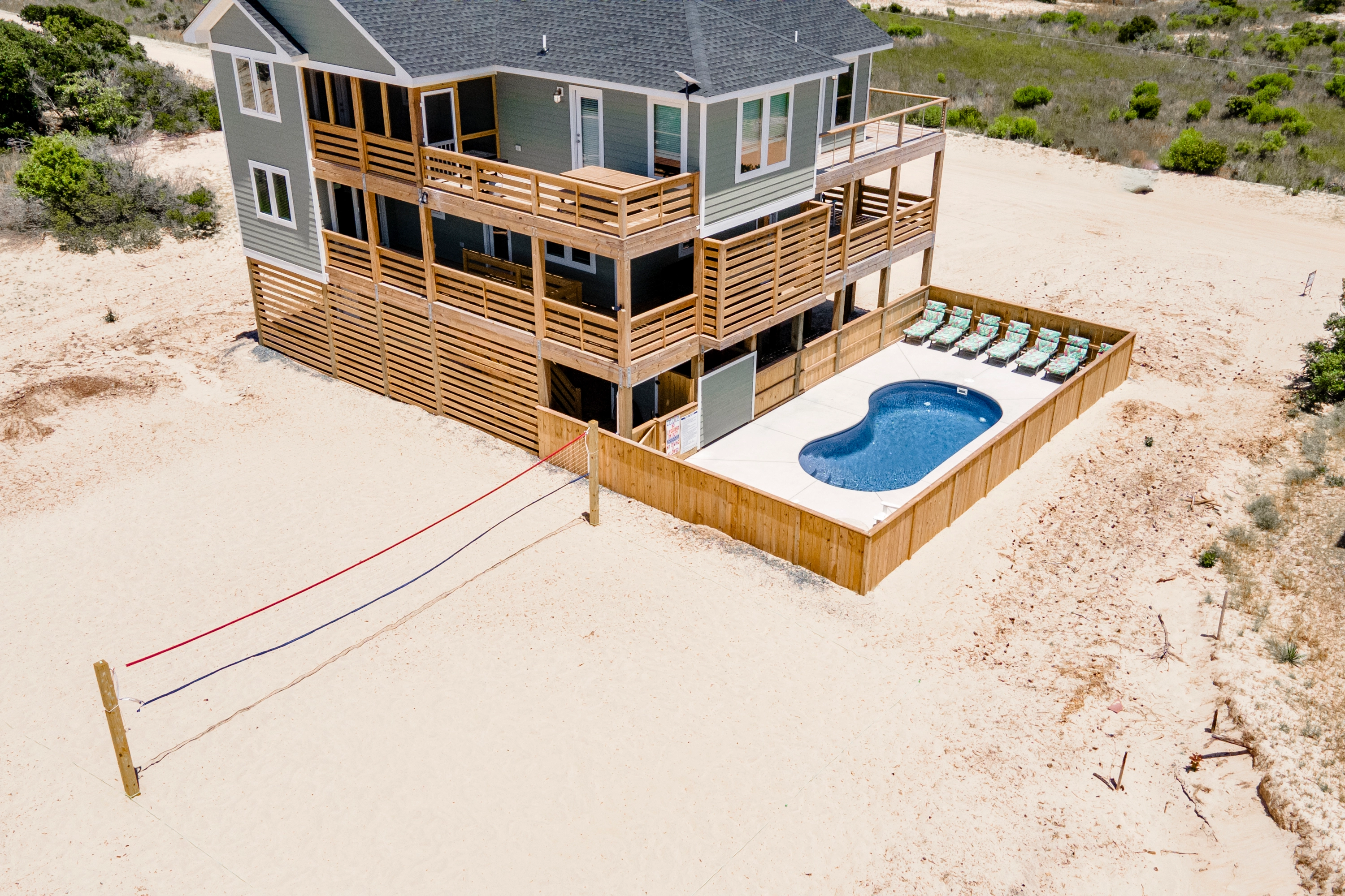 Private pool, hot tub, gas grill, volleyball court.