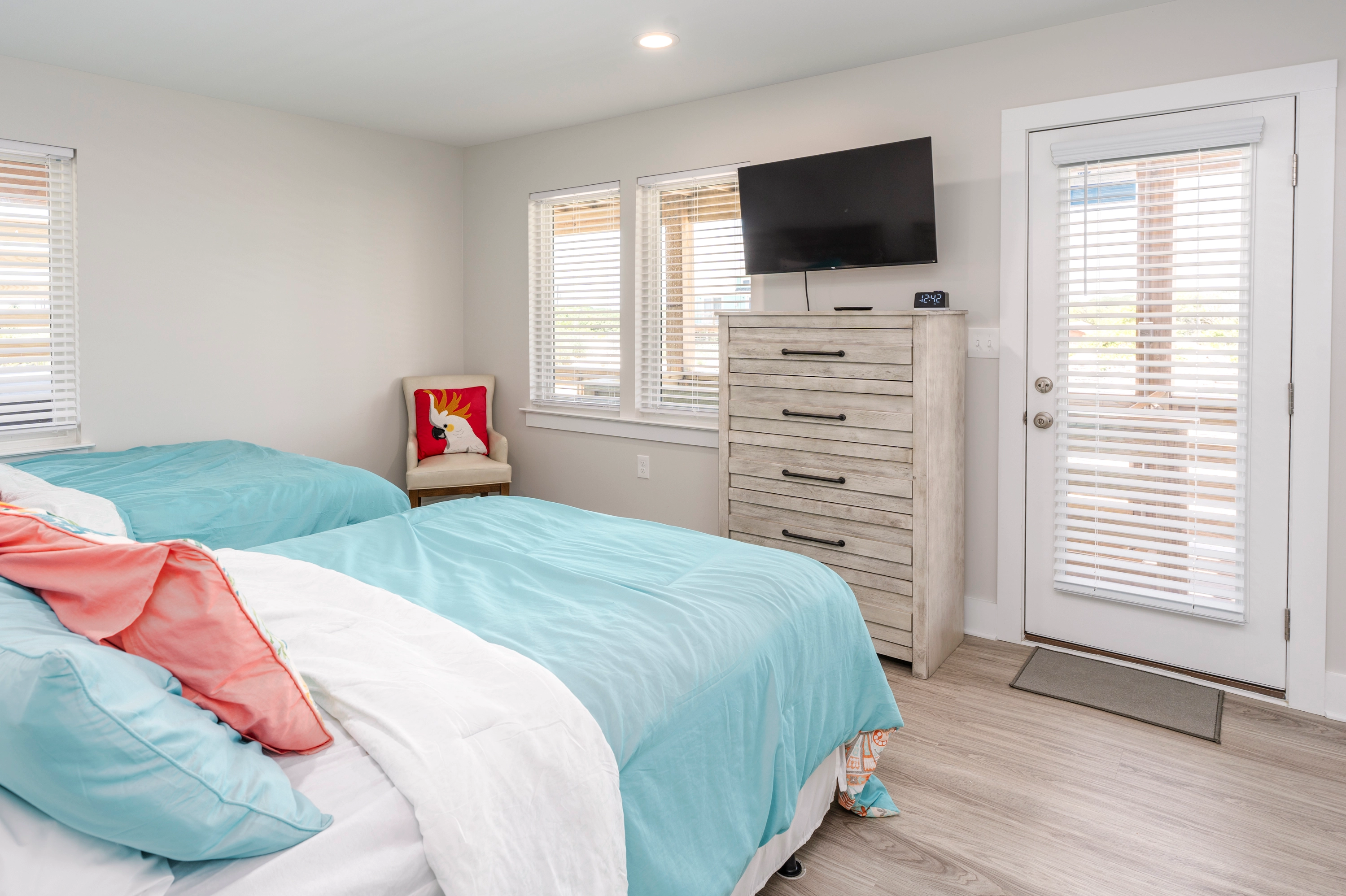 2 Doubles, Shower/tub combo, Deck access