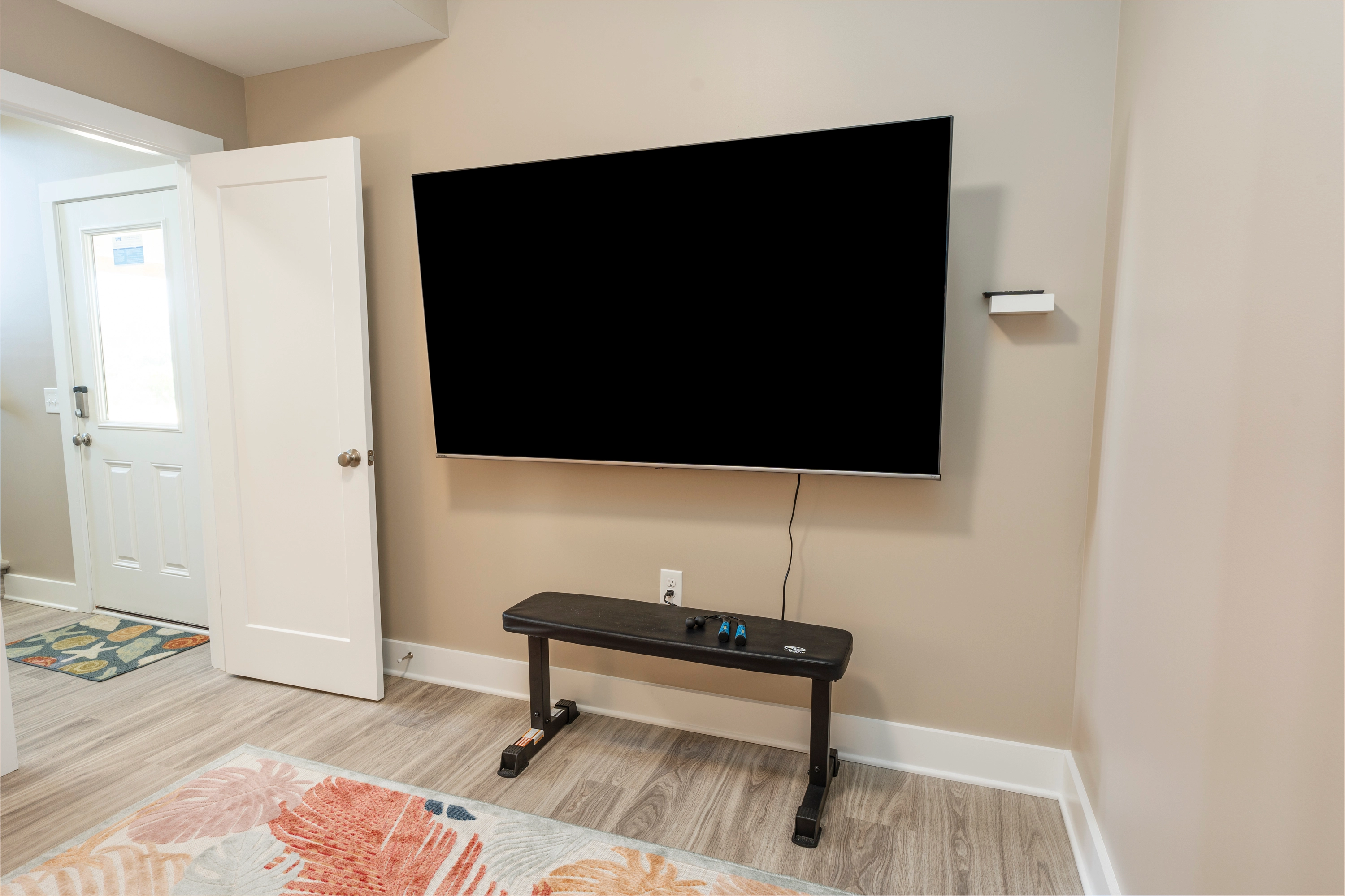 "The home is clean and smells fresh and looks modern. The furnishings were in great condition and were good quality. There are an abundance of bathrooms which was great for our group but we were wishing there was one on the lower level so that space would have been more useful We really enjoyed the volleyball court out back. Lovely home!"