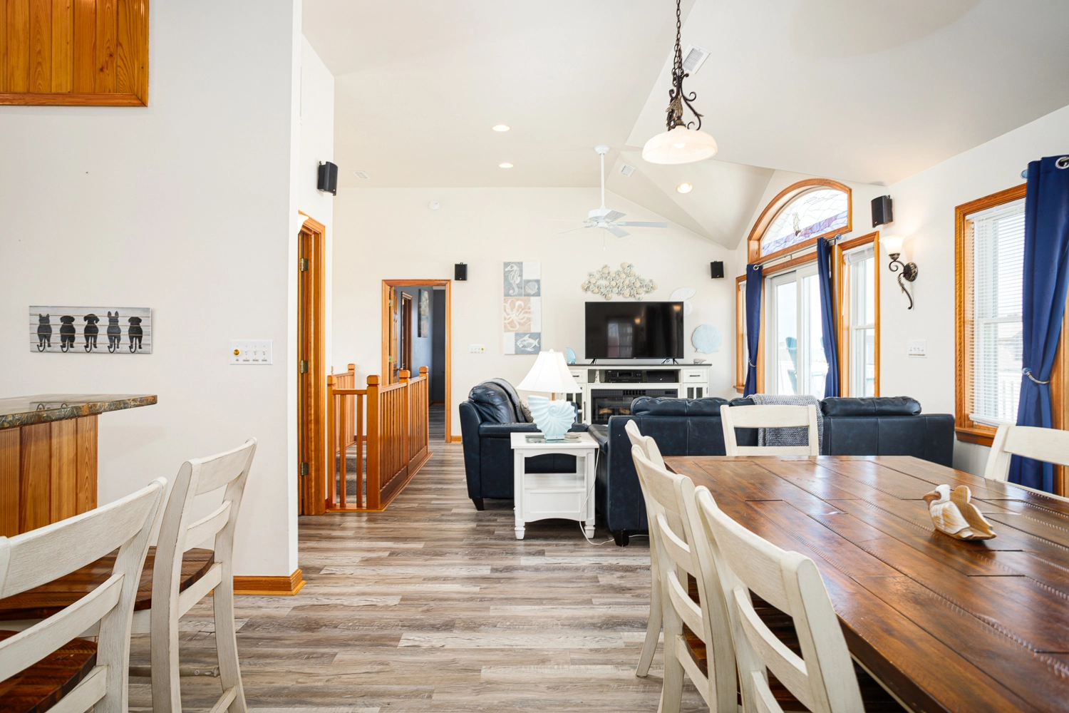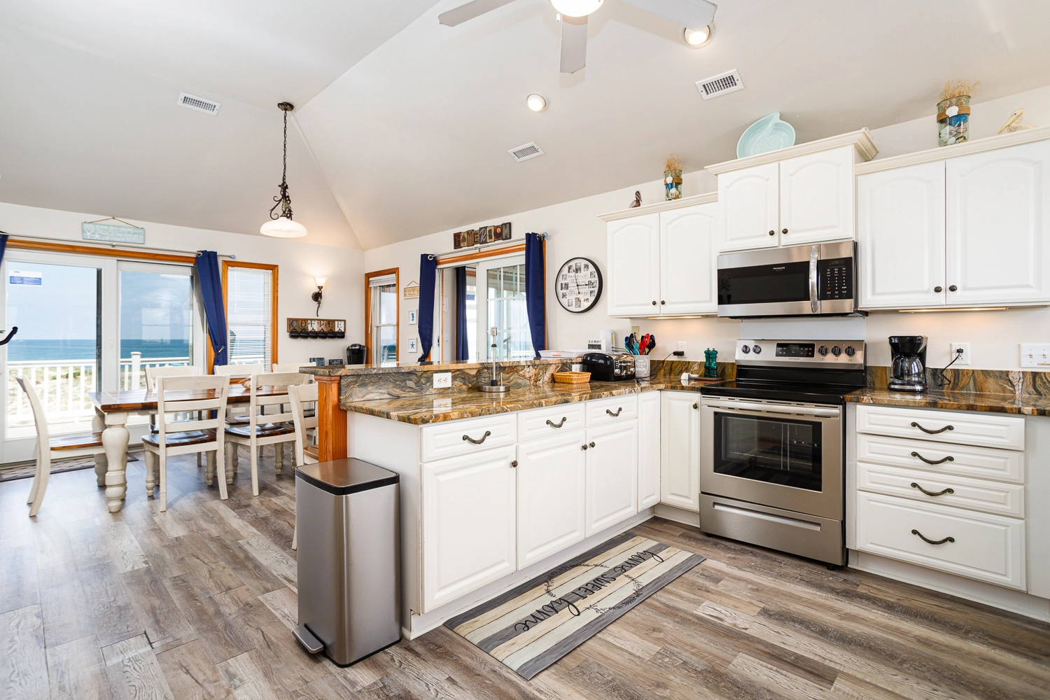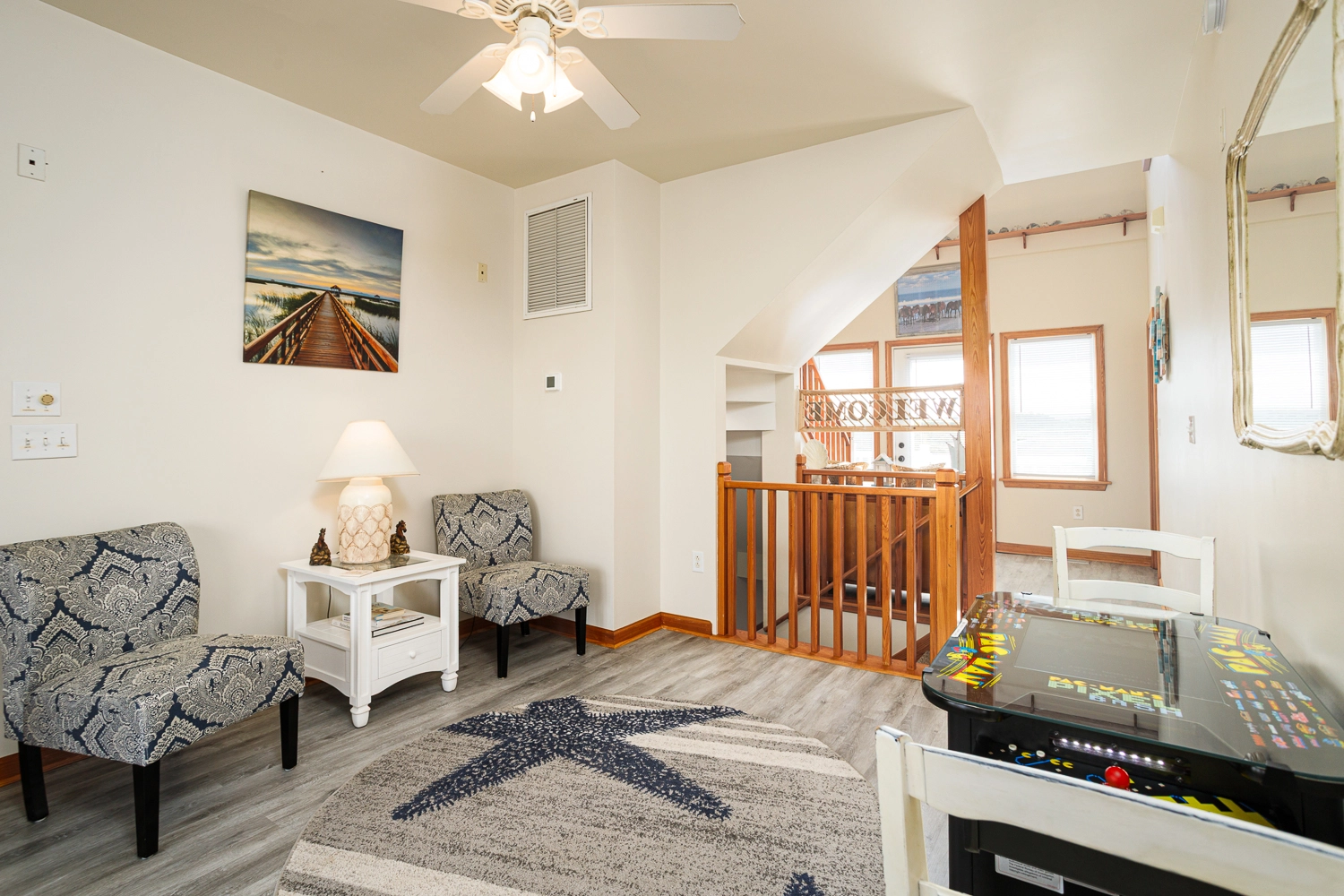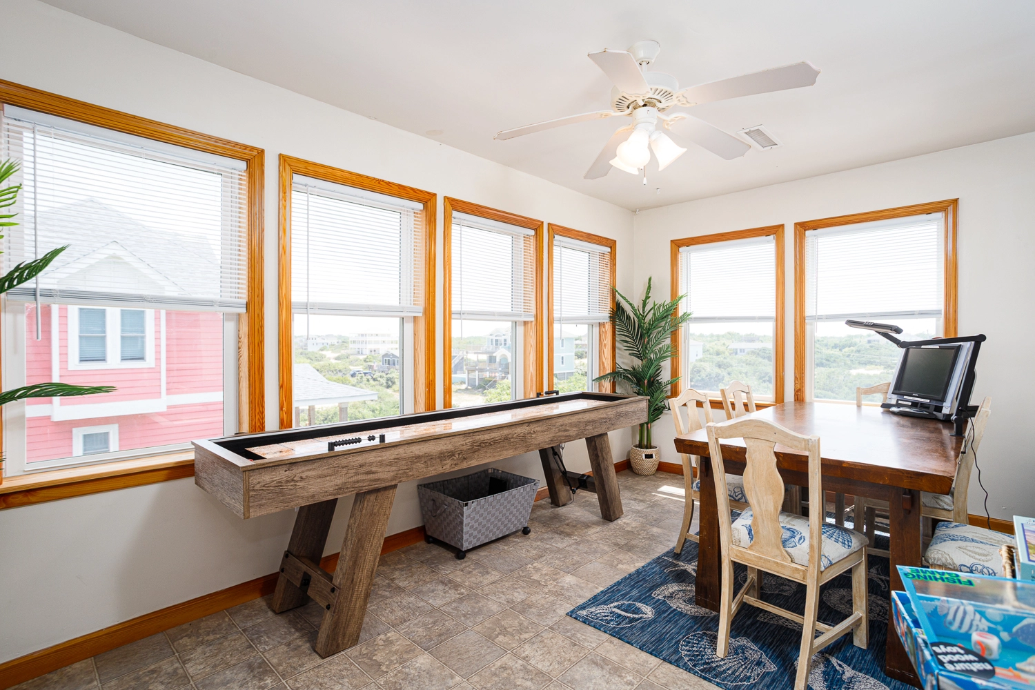 "I hope this review of Windermere makes it to the website. I don't believe we saw any reviews before we rented and this house deserves a review. It was recently renovated and everything is top shelf. The pool / tiki bar area was amazing - outdoor ping pong was a big hit and having a bar area was also much appreciated. All of the outside furniture is brand new and extremely comfortable. Beds are good as well, unlike many of the homes we've rented in the past. Inside, the shuffleboard table got the most use and was a blast. The kitchen had everything we needed and the 2nd fridge was a big help as well. Ice is the only issue...the icemaker wasn't producing ice and, even if it was, it wouldn't be nearly enough. So make sure to bring good coolers that can store ice and pick it up before you go to the house The views were amazing - it was a short walk to the beach, but next year we're going to bring a Jeep so that we can take it on the beach every day. We drove our Honda Pilot and it was a bit dicey on the beach...we drug the bumper a bit but as long as you go slow, you get along fine. On the first night, we had 10 wild horses wandering near the house (but didn't see many after that). It is extremely secluded...no stores, no noise, no lights at night. All you hear is the waves hitting the shore. The star gazing was incredible. If you enjoy looking at the stars, pack some aluminum foil. The owner put solar powered led lights on every deck post. The top deck was so nice for viewing, but at night it felt like you were on stage! To make it dark, I simply put foil over the top of each post to block the solar panel and after the first night, you could see everything in the sky. I hope this review is helpful. We've been coming to OBX for many years and have stayed in every area from north to south. This was the most enjoyable vacation ever. But we had all adults on this trip. If you have small children that need more entertainment than a pool, beach and hot tub can provide, you may be better in another area. If you want an amazing home with peace and quiet, this is the place for you."
