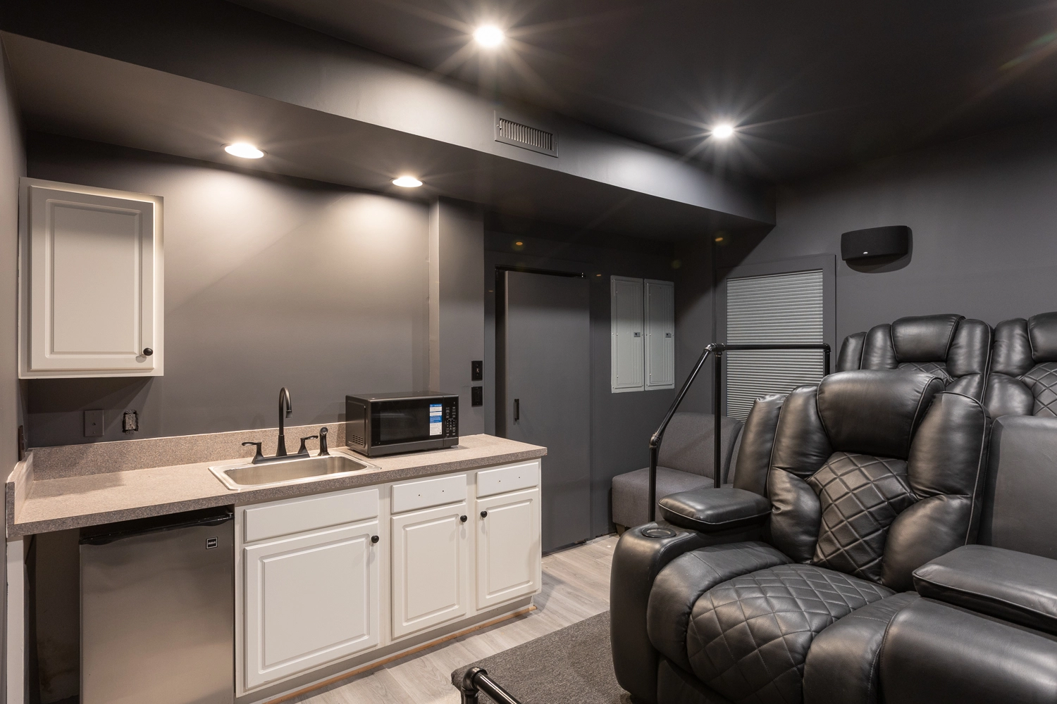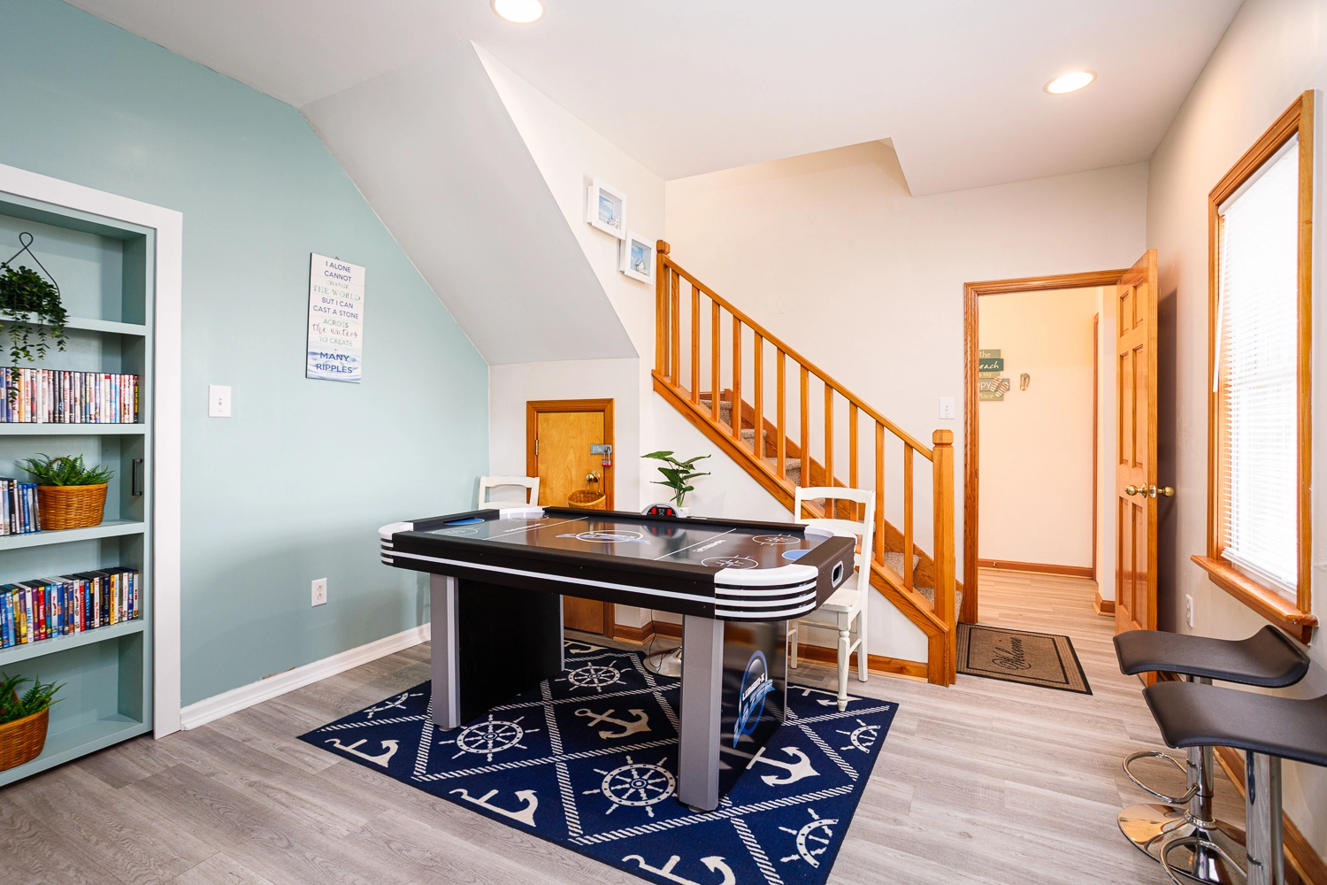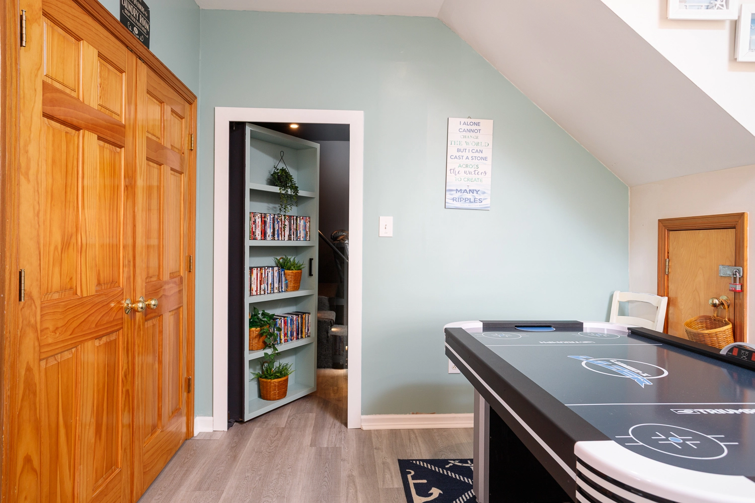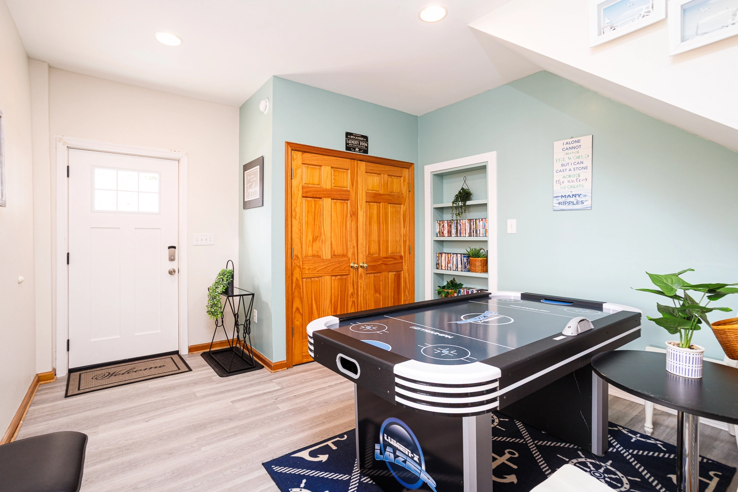 Rec room with air hockey and wet bar; theater room; laundry; outdoor ping pong table; gated pool area with Tiki bar.