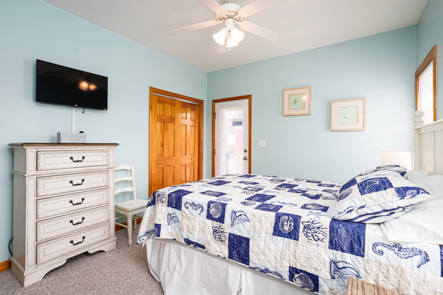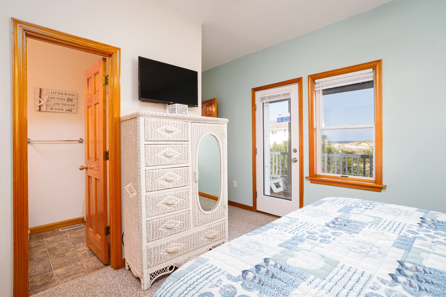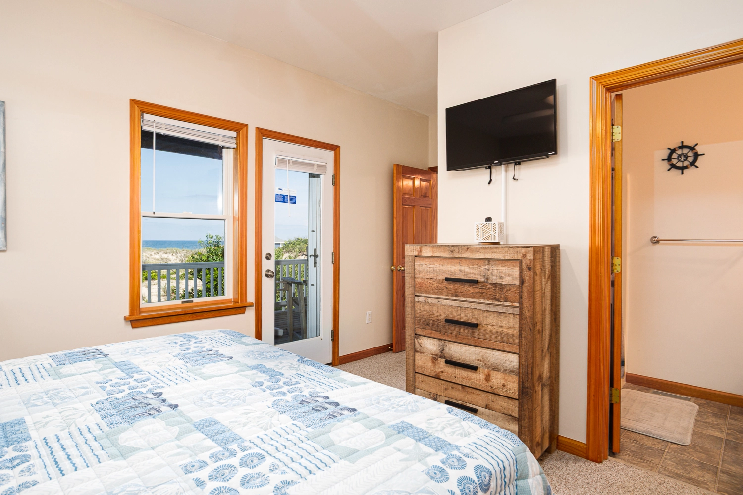 Queen, Shower/tub combo, Deck access