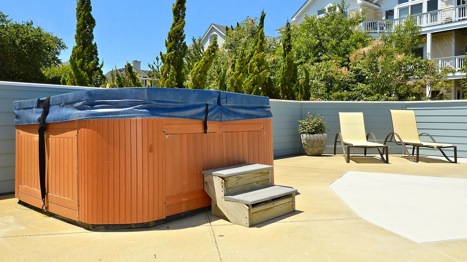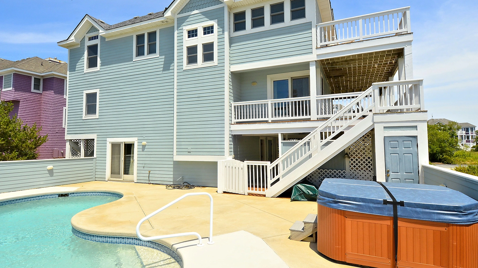 "Bedroom layouts, pool and hot tub area, plenty of lounge chairs, well stocked kitchen, comfortable and ample deck furniture."