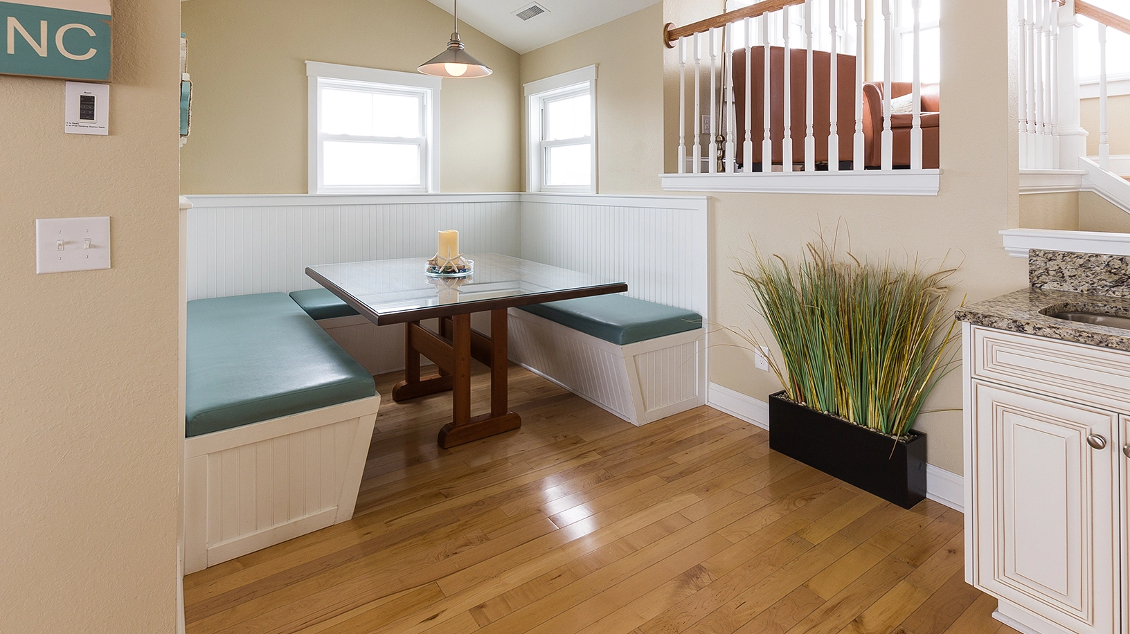 "Kitchen and living area, especially the breakfast nook, crow's nest, and coffee bar. Game room was fun. Loved that every room had an attached bathroom."