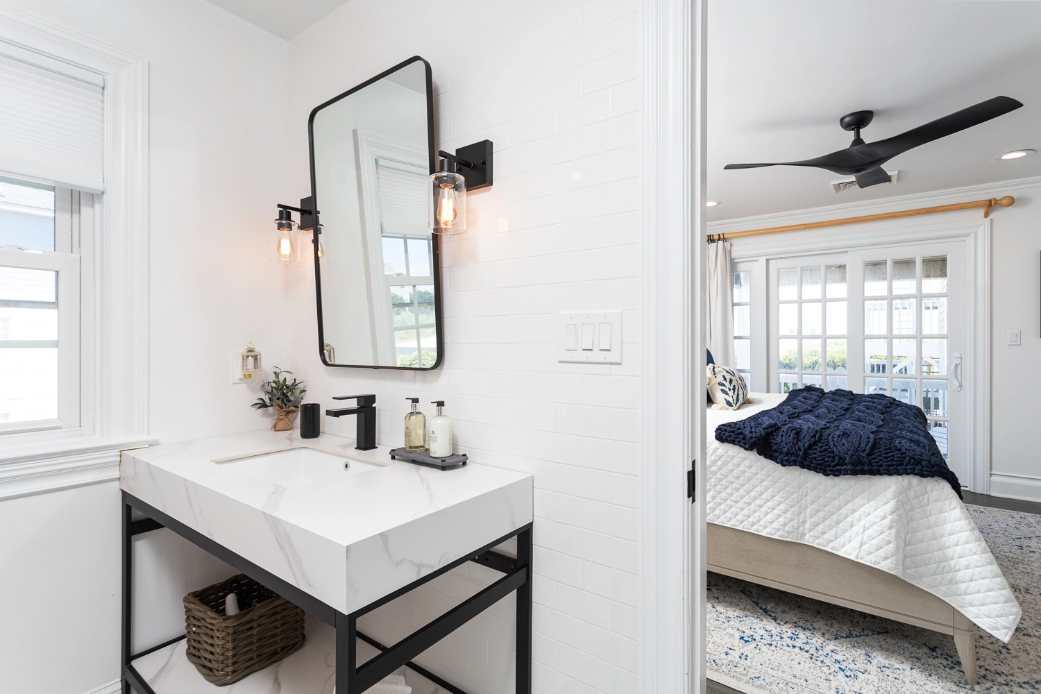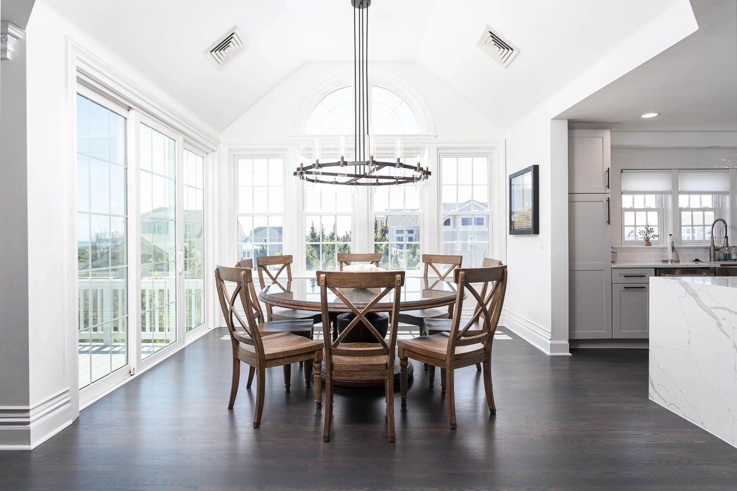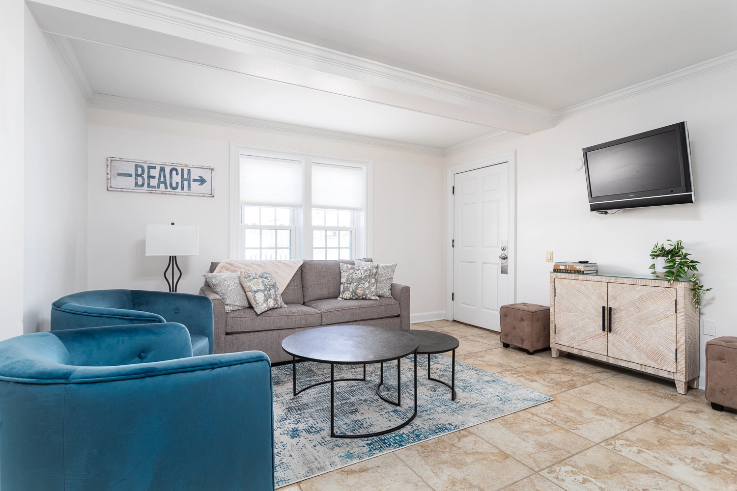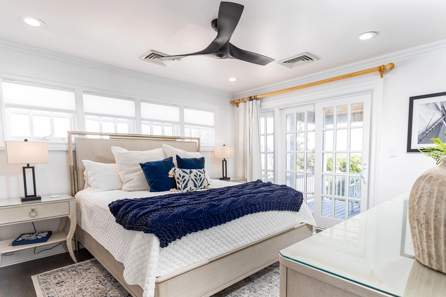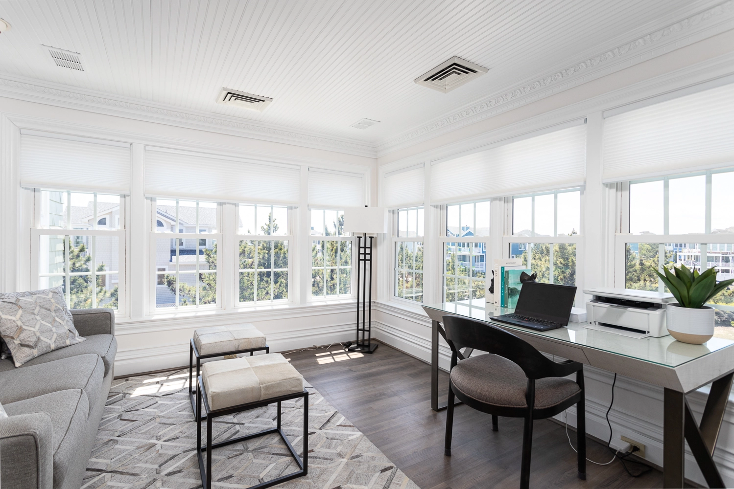 "1. The white and light decor are comfortable and warm. 2. The 3rd floor master bedroom and office areas are a nice feature. 3. Short walk to the beach and the ocean view."