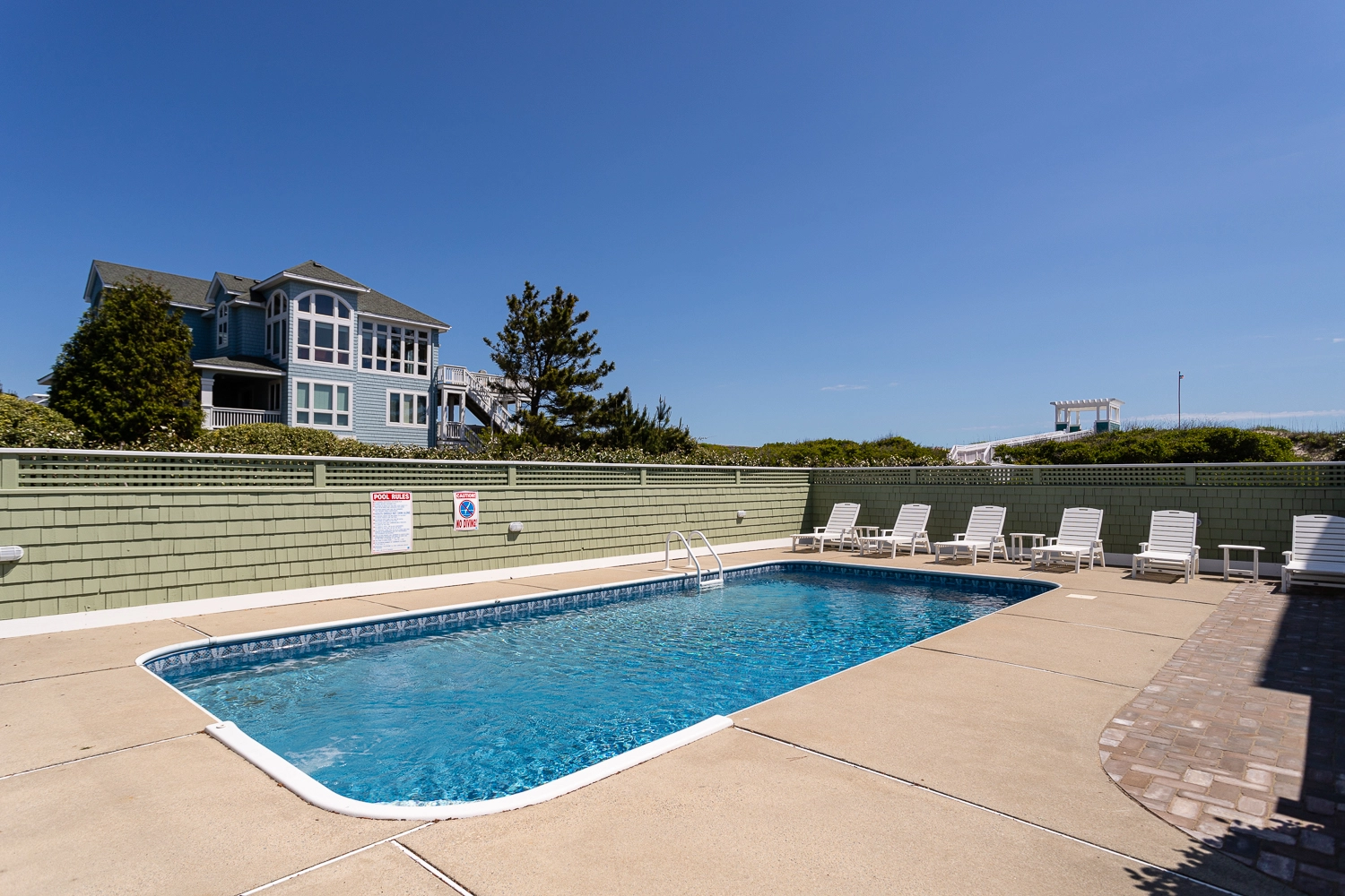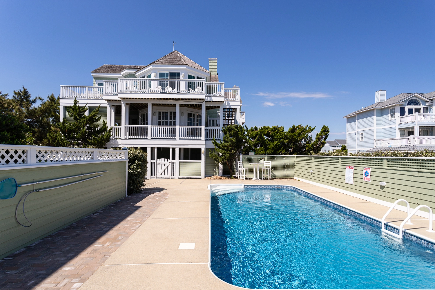 "The Lady Drake was a great property for our large extended family. It is located in a lovely gated community and is situated adjacent to the beach access walkway which was very convenient for rolling out chairs and umbrellas to the beach. The deck of the house could some work as there are some places with splintered wood. The pool and hot tub were a delight. The house was centrally located in the heart of Corolla, near restaurants and Grocery stores and shops. All house infrastructure systems were in good working order. Twiddy was very responsive in addressing some minor housekeeping issues. We had a wonderful time at the Lady Drake."