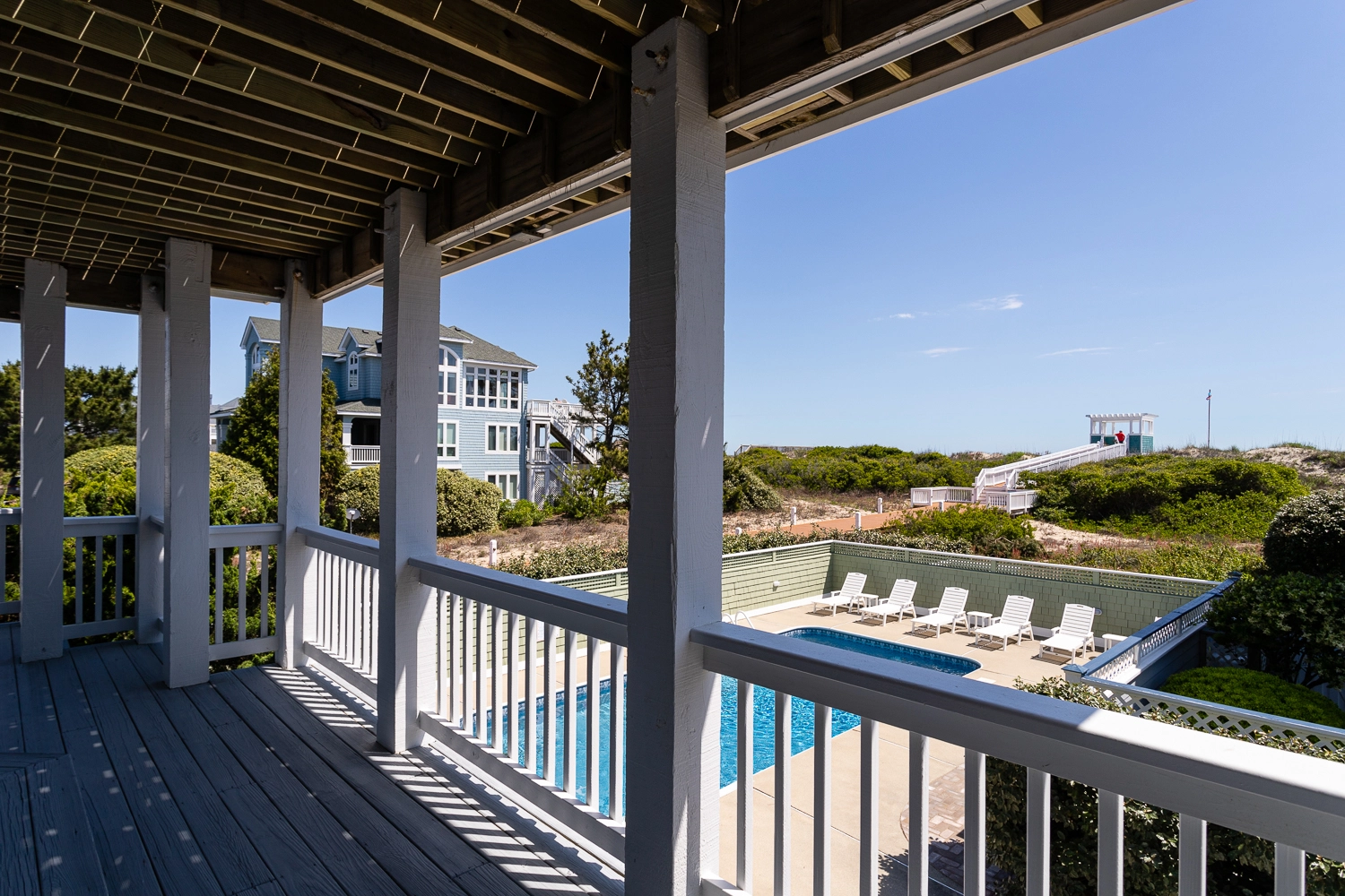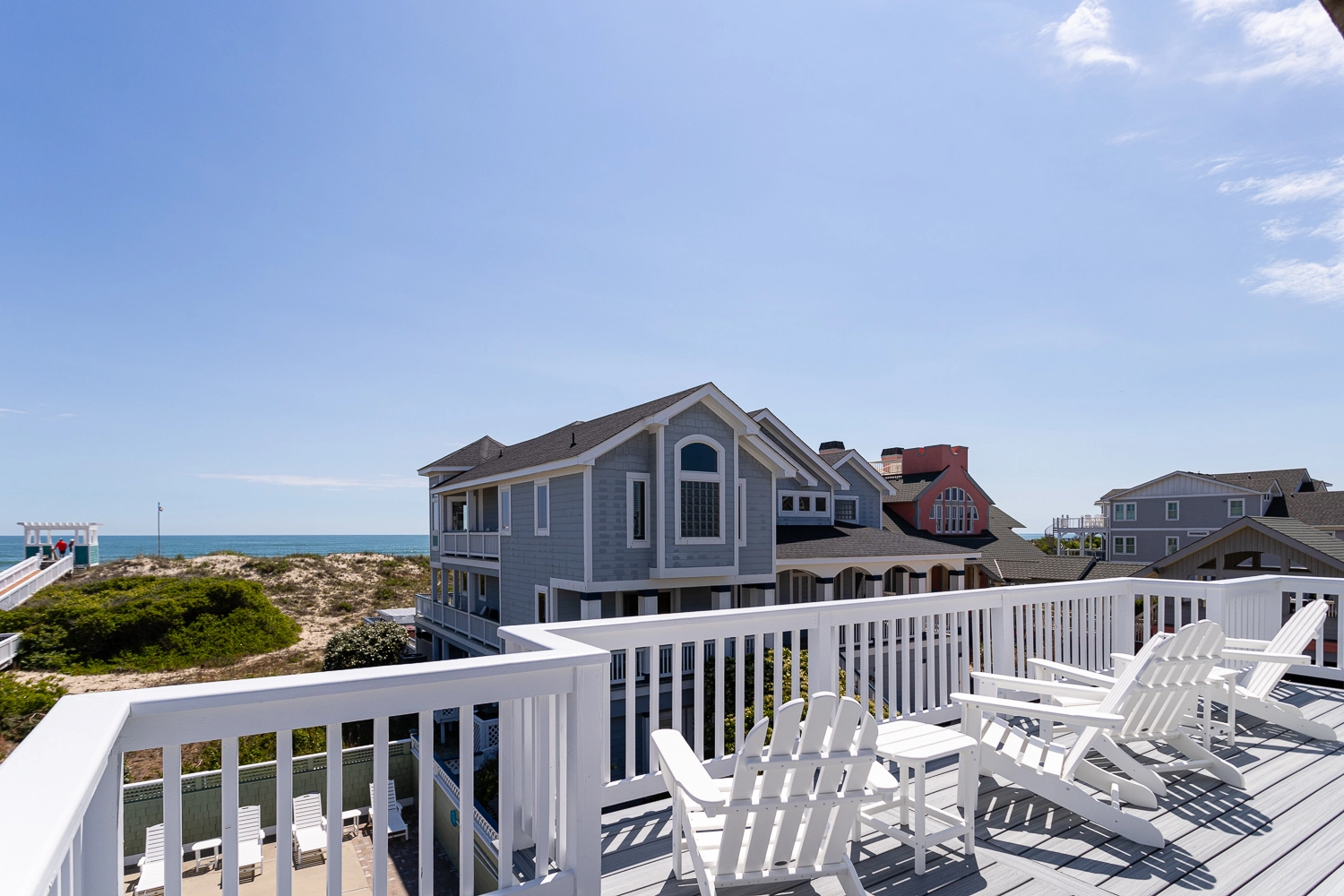 "Lady Drake is a gorgeous, updated home with beautiful views of the ocean. Lots of space to enjoy family time together, and nooks for personal quiet time (hammock on the mid-floor deck!). The love that the owners have for Corolla, and their personal family history there, is shown through their carefully considered renovation a couple of years ago. The upstairs family room/kitchen/dining areas provides ample space for our large family gathering to prepare and enjoy meals together, playing games, etc. Easy walk to the beach. Buck Island location offers community pool, tennis/pickle ball courts, turtle pond and convenient access to shopping, restaurants, etc."