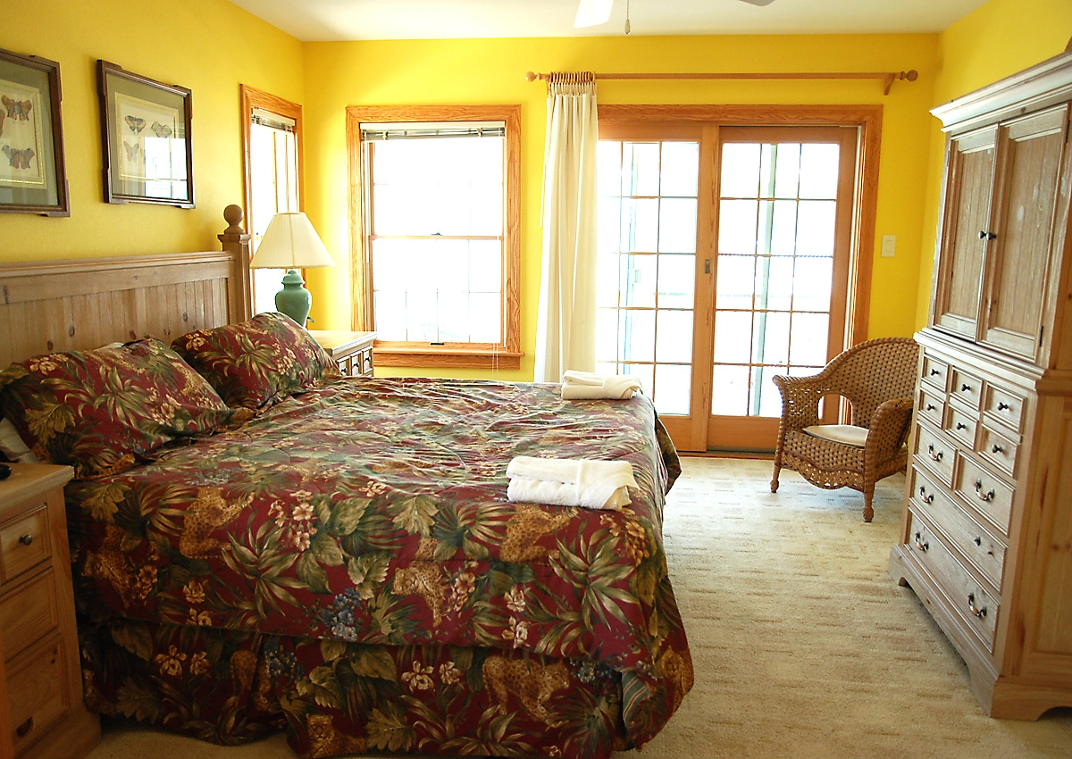 Queen, Shared bath with room 2, Shower/tub combo, Deck access
