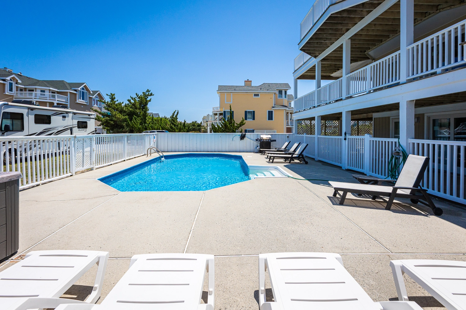 Elevator, private pool, hot tub, gas grill, homeowner provided Beach Cabana Service from May 25 - September 12, 2026, includes set up of one umbrella and two beach chairs.