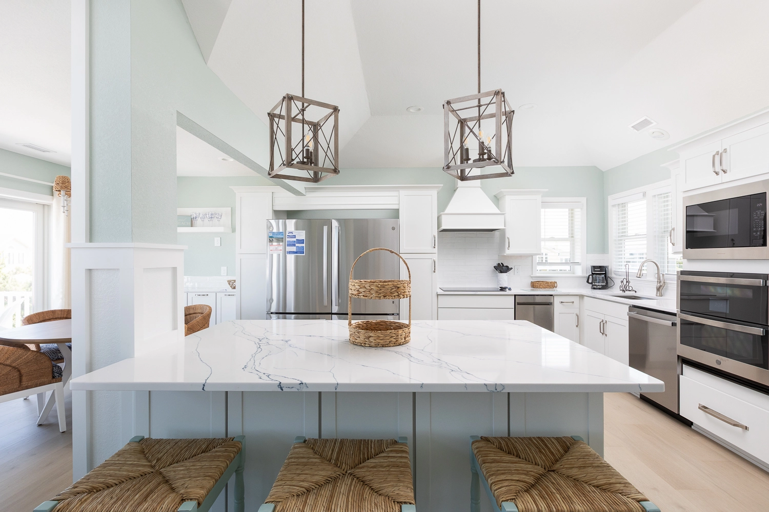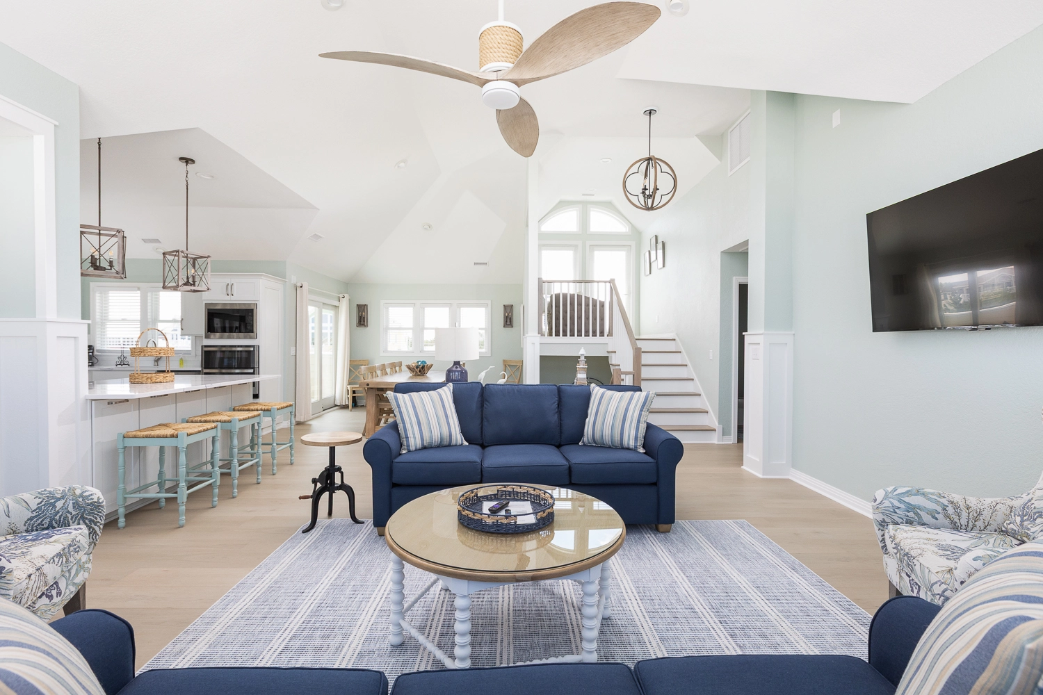 "The home was very well taken care of and clean. Everyone in our group enjoyed the house. It had a great view of the ocean. The walkway to the beach was shared with one other house. It was very quiet in the neighborhood. The beach was also less crowded. The kitchen was well stocked and spacious. There were lots of places to sit outside and enjoy the weather."