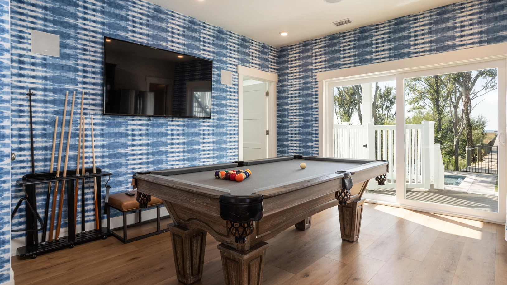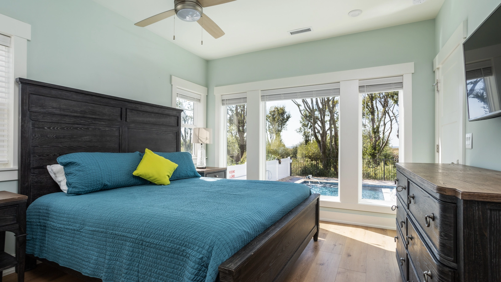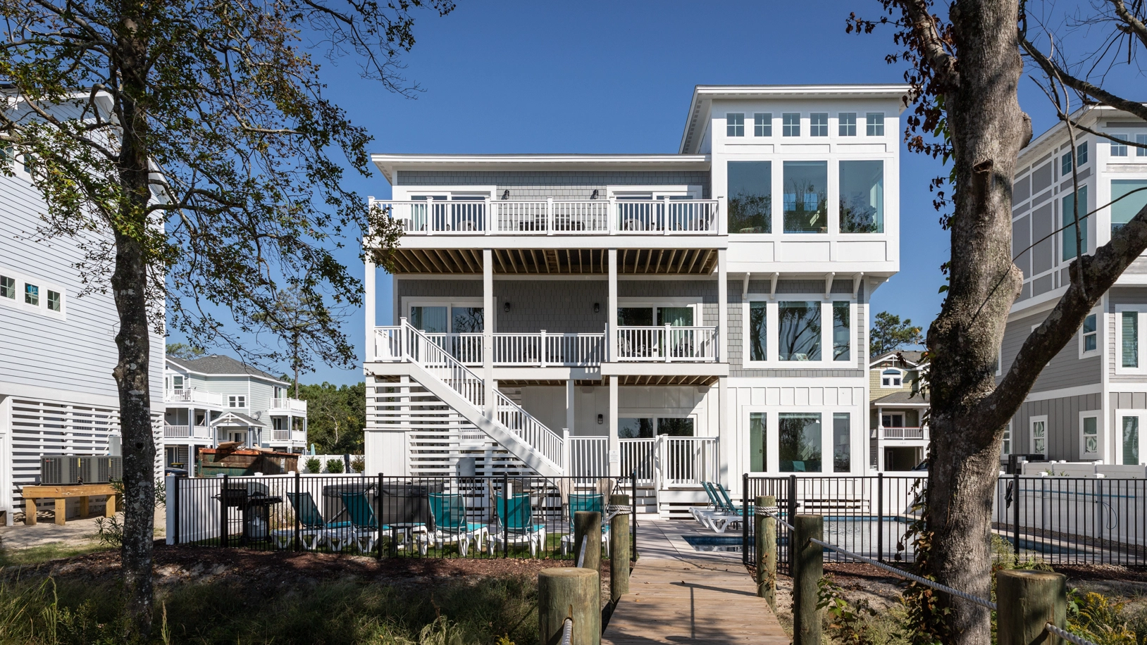 "7 Master Suites. Large kitchen, dining area and living room area. Pool area and pool amazing! Hot tub, just perfect! The pier for fishing on the bay is a must for fishermen. Overall great house. Twiddy is very guest friendly."
