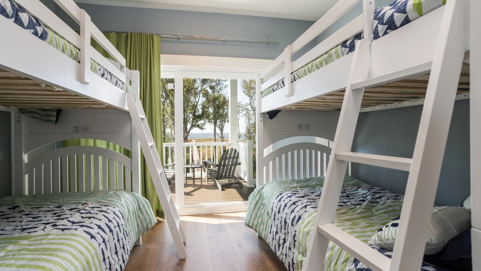 Soundside, 2 Bunk Sets, Shower/tub combo, Deck access