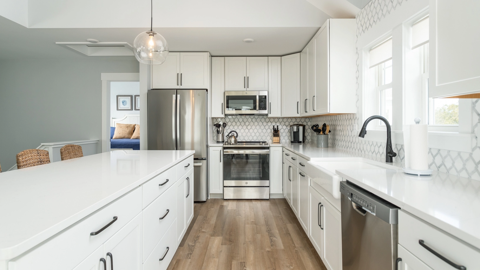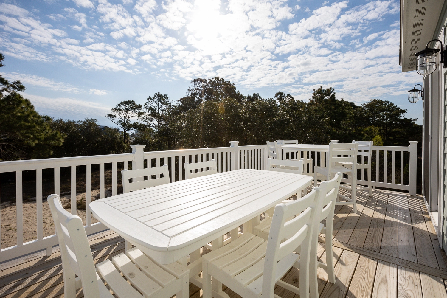 "Our family of seven loved the beautifully appointed bright & cheery house. The great room was lovely giving you the perfect view of sunsets. The kitchen had all new major appliances, as well as, new dishes, cutlery, silverware, top of the line bakeware & cookware. The interior decorating was so serene & just perfect for a relaxing vacation. We would definitely choose this home again for our family vacation. Twiddy was always responsive whenever we had a question. Community had a private dock to watch the gorgeous sunsets. Thank you for sharing your splendid home with our family!"