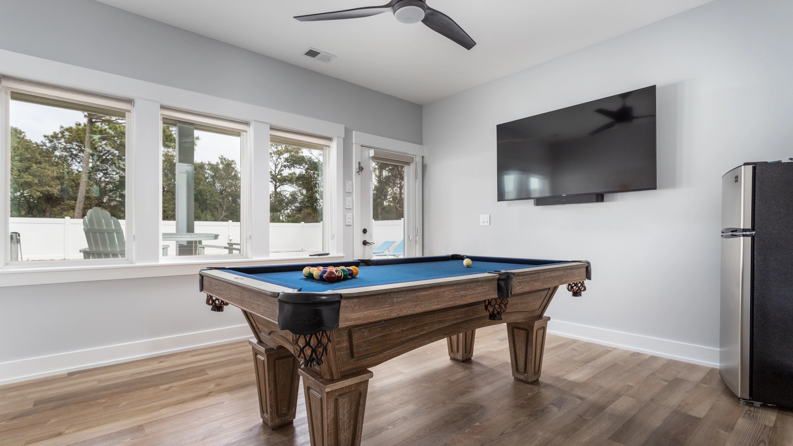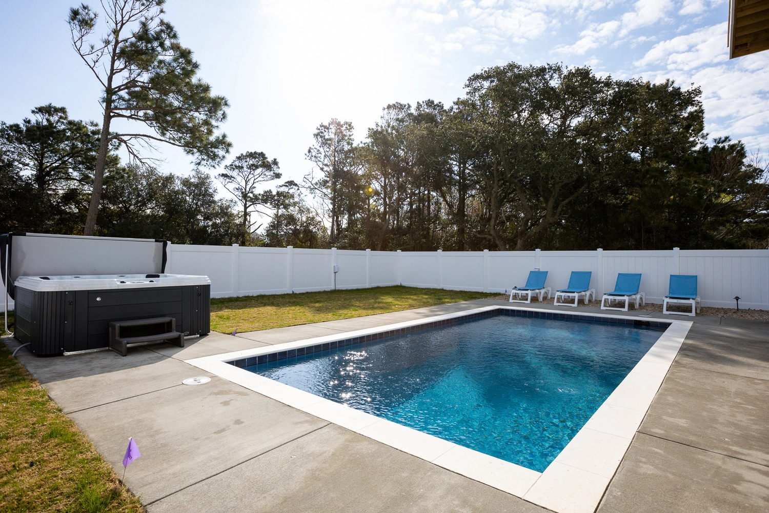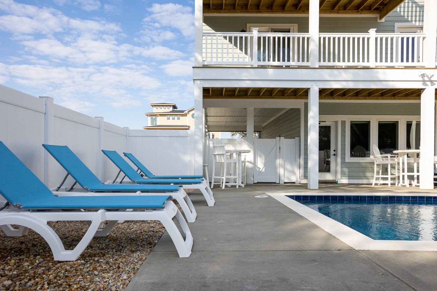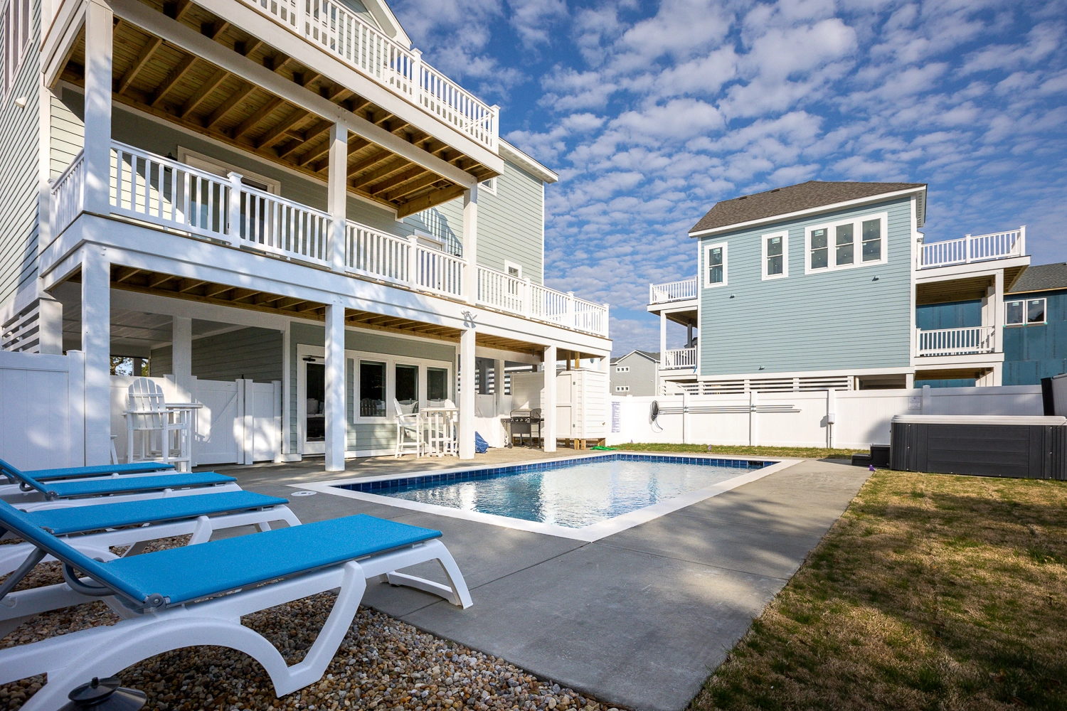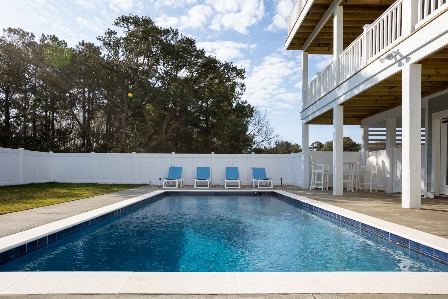 "This house was the perfect size for our combined family vacation (7 adults, 3 kids, 1 dog) The kitchen was fully stocked with appliances and dishware. We loved the big table in the dining area and the extended kitchen island. Beds were comfortable and bathrooms were clean. We also enjoyed the pool area and yard space. This was our first trip to OBX so we were pleasantly surprised that this home had an easy drive to nearby shopping and beach access. Its a nice location and a relatively quiet community. We also loved how close it is to the private community pier."