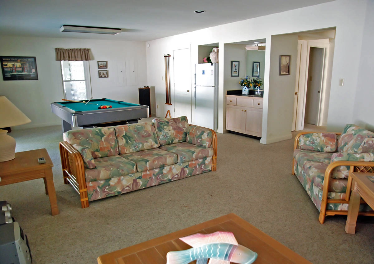 "The views from the deck of the osprey, Whalehead Club and sunsets. The natural light in the living, dining, kitchen area. The pool table, downstairs, is a fun rainy day or evening diversion."