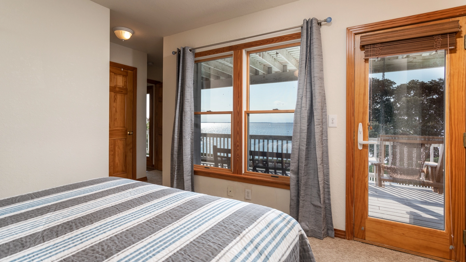 Soundside, Queen, Shower/Whirlpool tub combo, Deck access