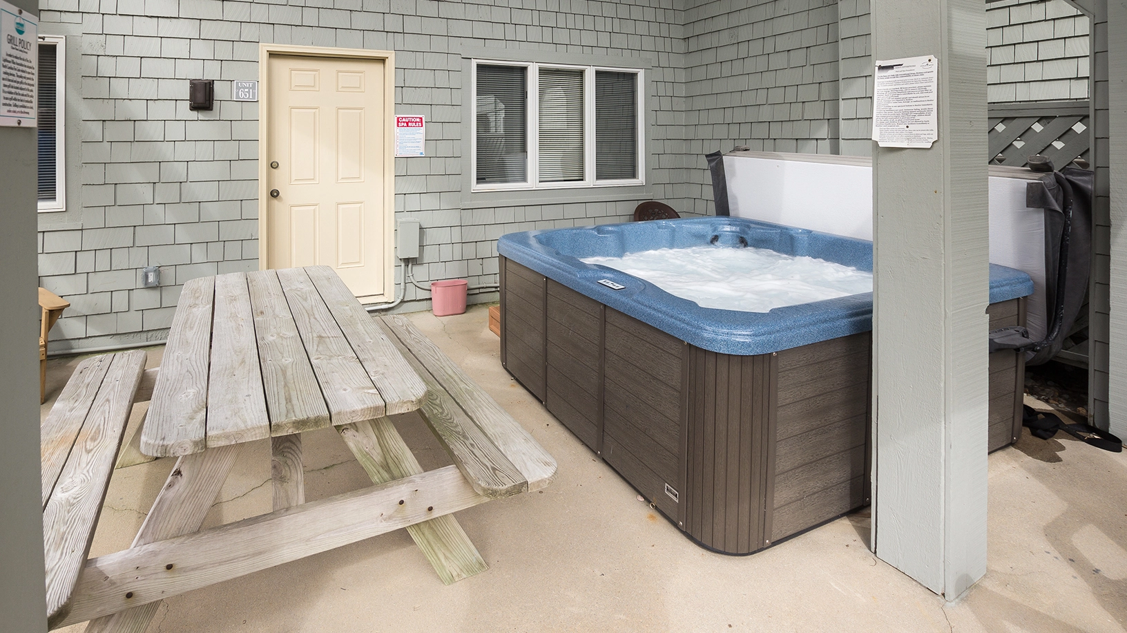 "Close too the beach, nice deck, beds were comfortable, we love the hot tub"