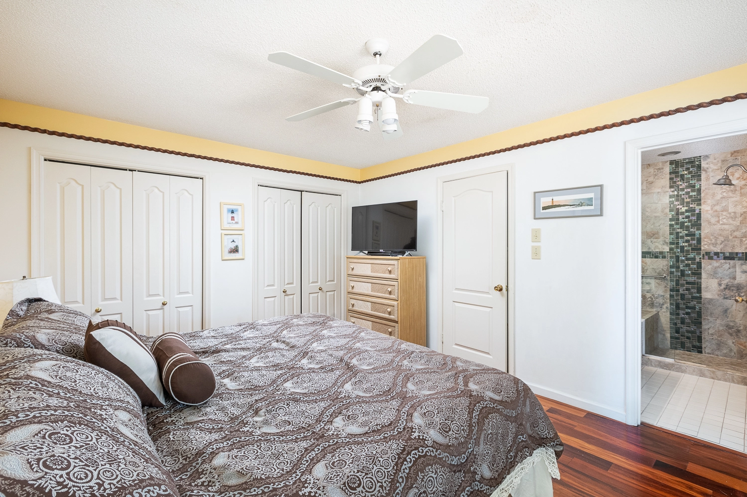 "Hot tub, king bed updated master bathroom, walking distance to beach and community pool"
