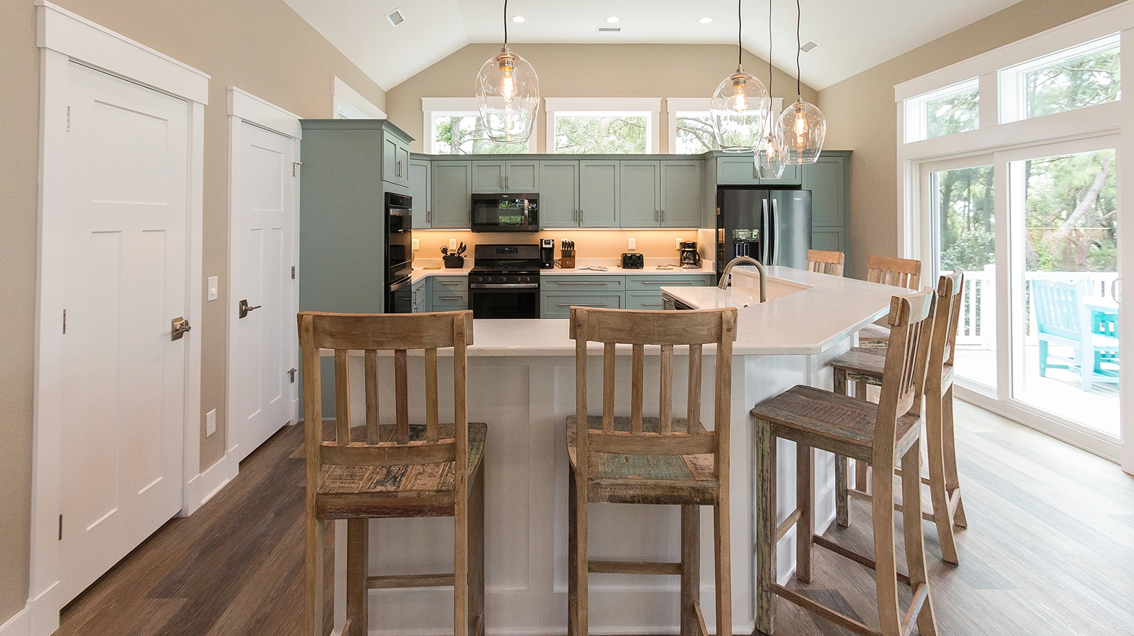 "Spacious rooms, outdoor living, kitchen supplies well, views , convenient to restaurants and shopping."