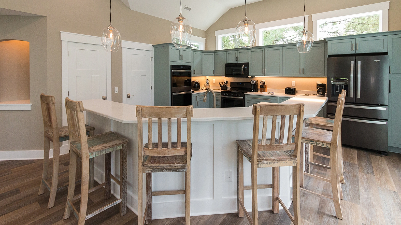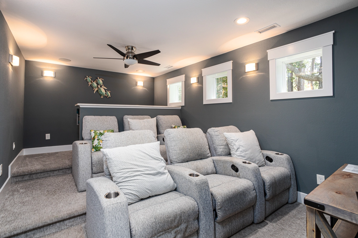 "The home was beautifully furnished and extremely well equipped! We especially enjoyed the elevator, the theater room, the Arcade game, the soundfront vistas, having 2 full sized refrigerators, 3 DWs, multiple ovens, & a gas range. Pool was a little small and would have been nice to have a comfortable chair in upper lever master. Also one of our party would have loved a couple table lamps."