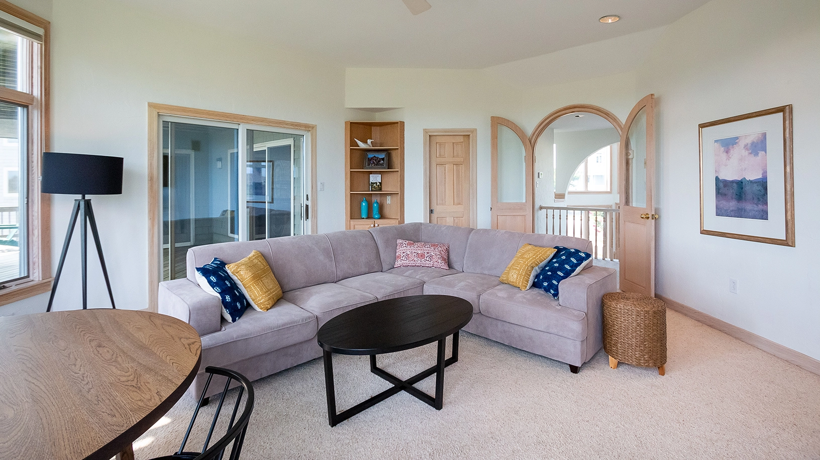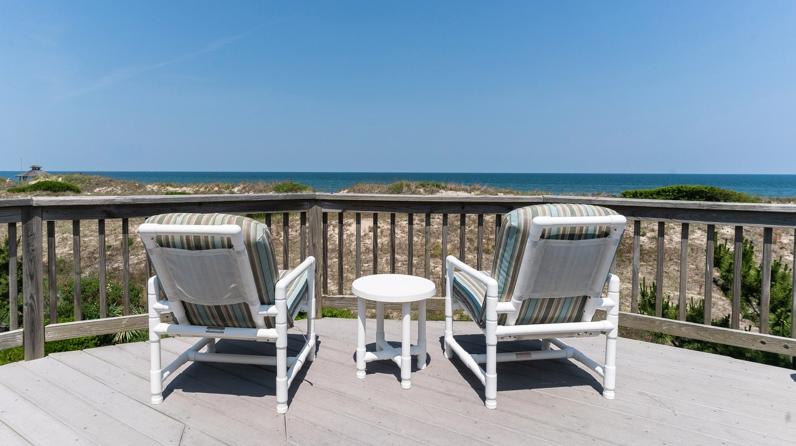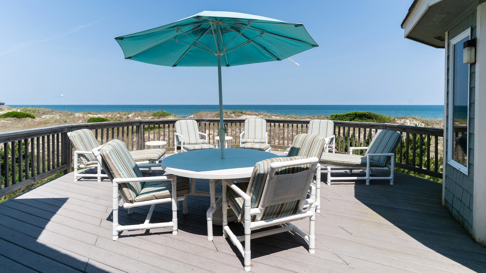 "The house has a very unique floor plan. An excellent view of the ocean from a spacious deck that is well furnished with comfortable seating."