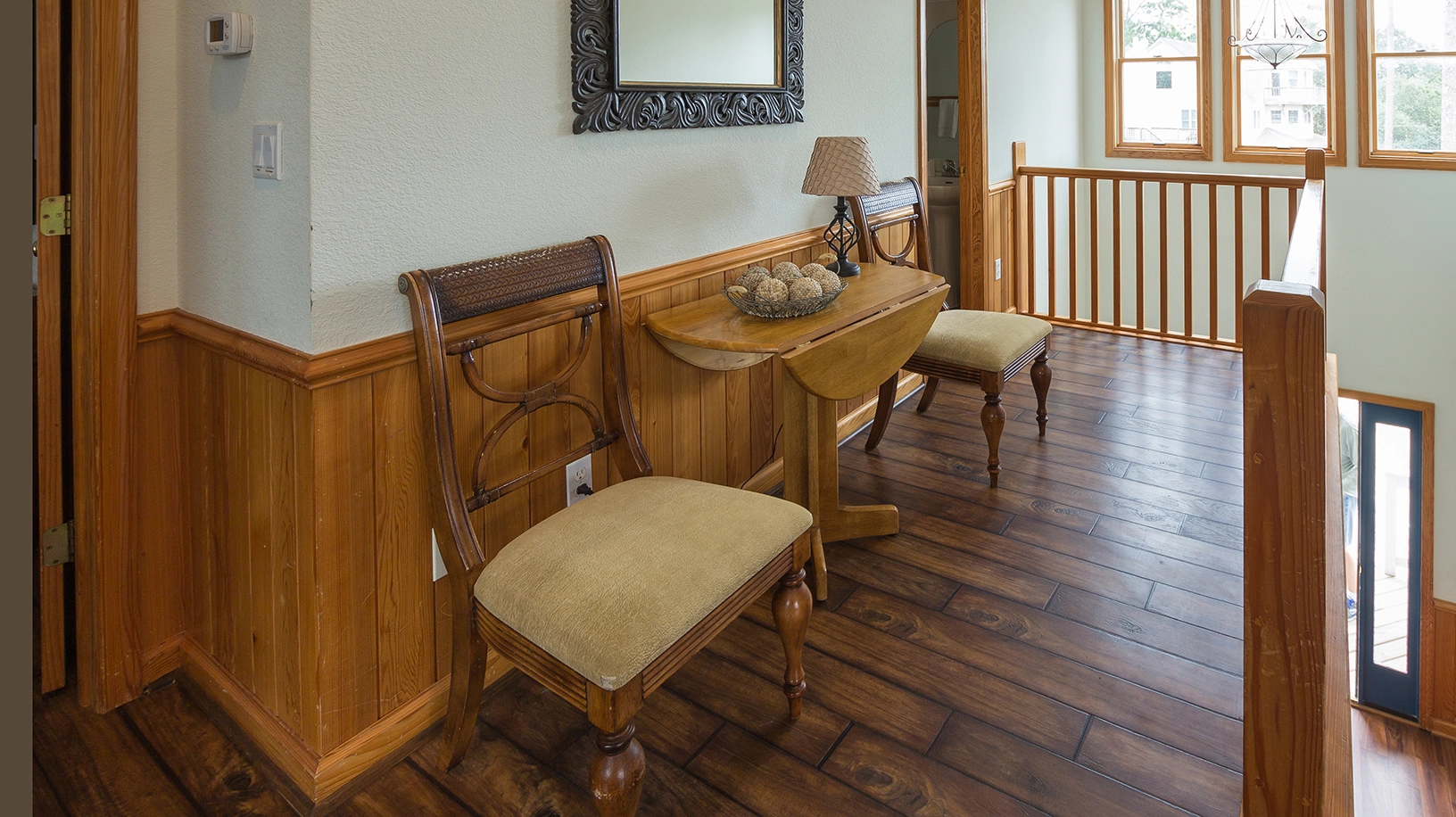 "We are repeat vacationers in this home and find that it creates the perfect environment for our family to relax. There are separate nooks for reading or napping and larger gathering spaces for pool time, OBX Seafood dinners and barbecues. The sunsets over the sound are amazing and the beach and community pool complex is a short walk or trolley ride away. We will be back!"