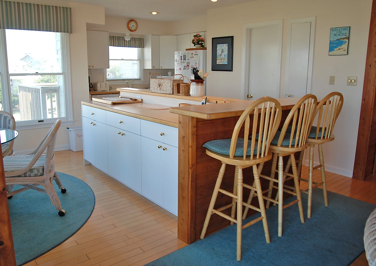 "This home has the perfect location - across the street from the beach access and right next to the oceanfront complex. The younger kids enjoyed going out to the playground, basketball and shuffleboard courts while we were able to keep an eye on them from the deck. It Great having three living areas to spread out in. We enjoyed the change to a pet friendly home as well."