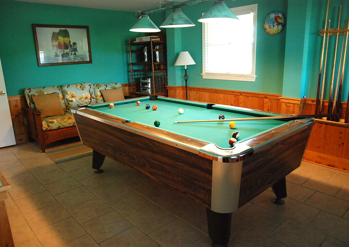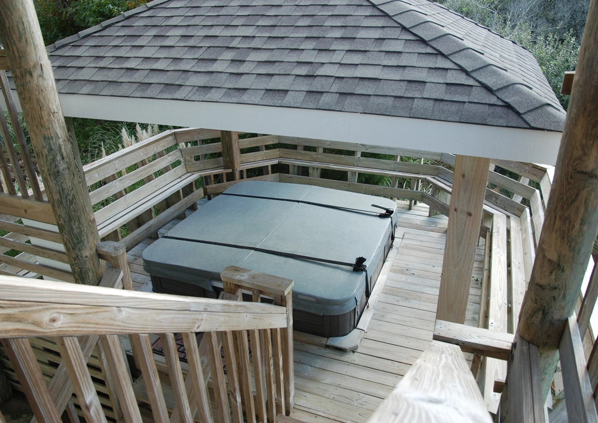 Rec room with pool table; gazebo with hot tub; wet bar.