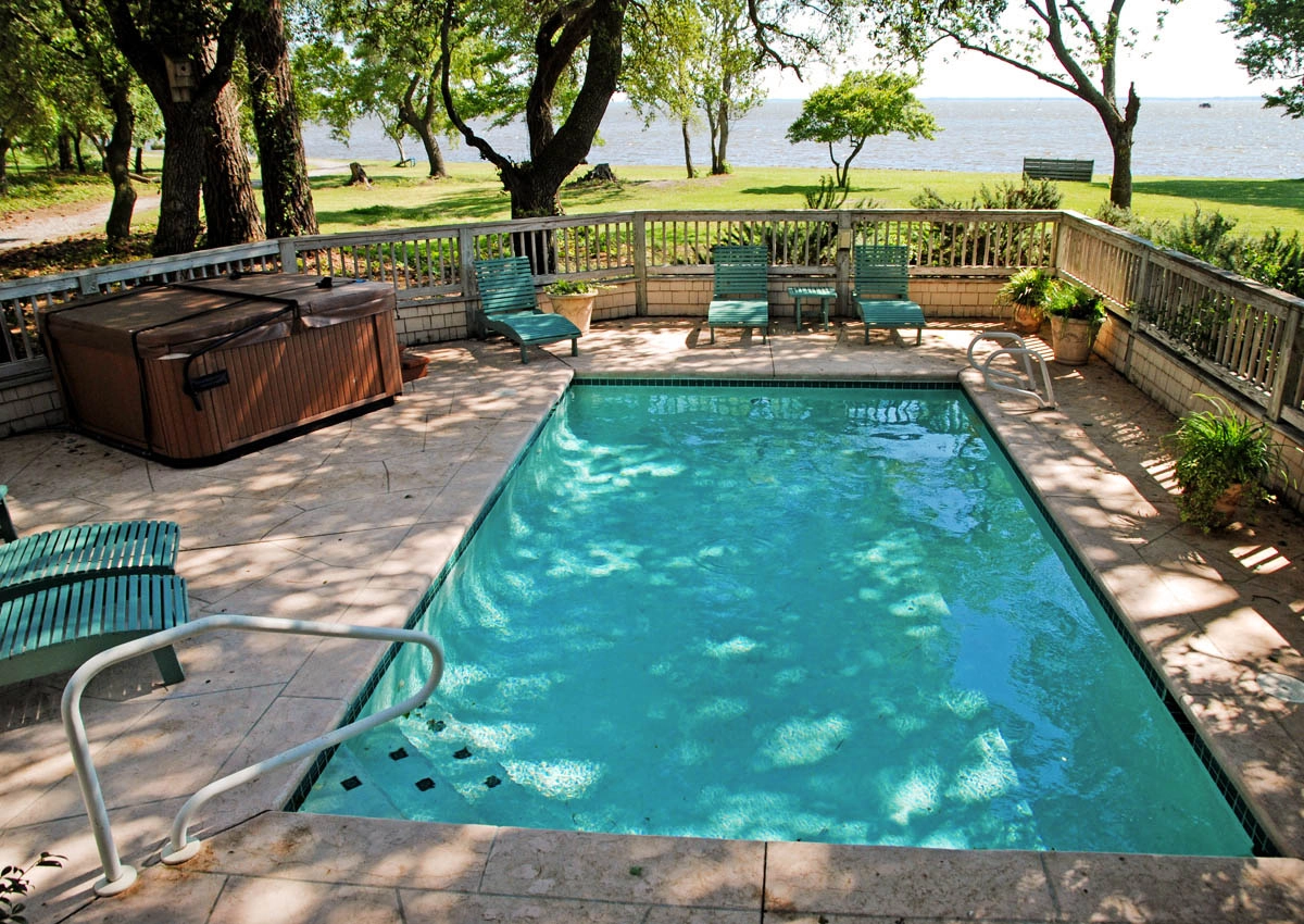 Patio with gated pool; hot tub; wheelchair ramp to level two.