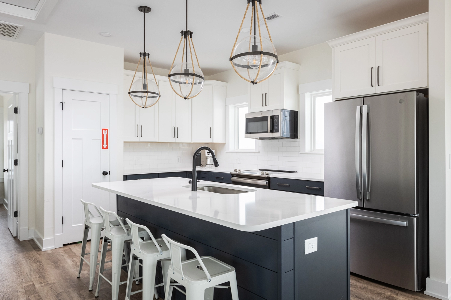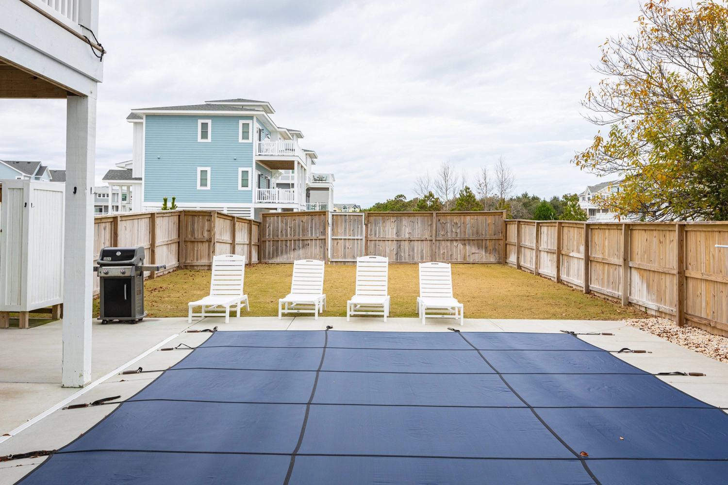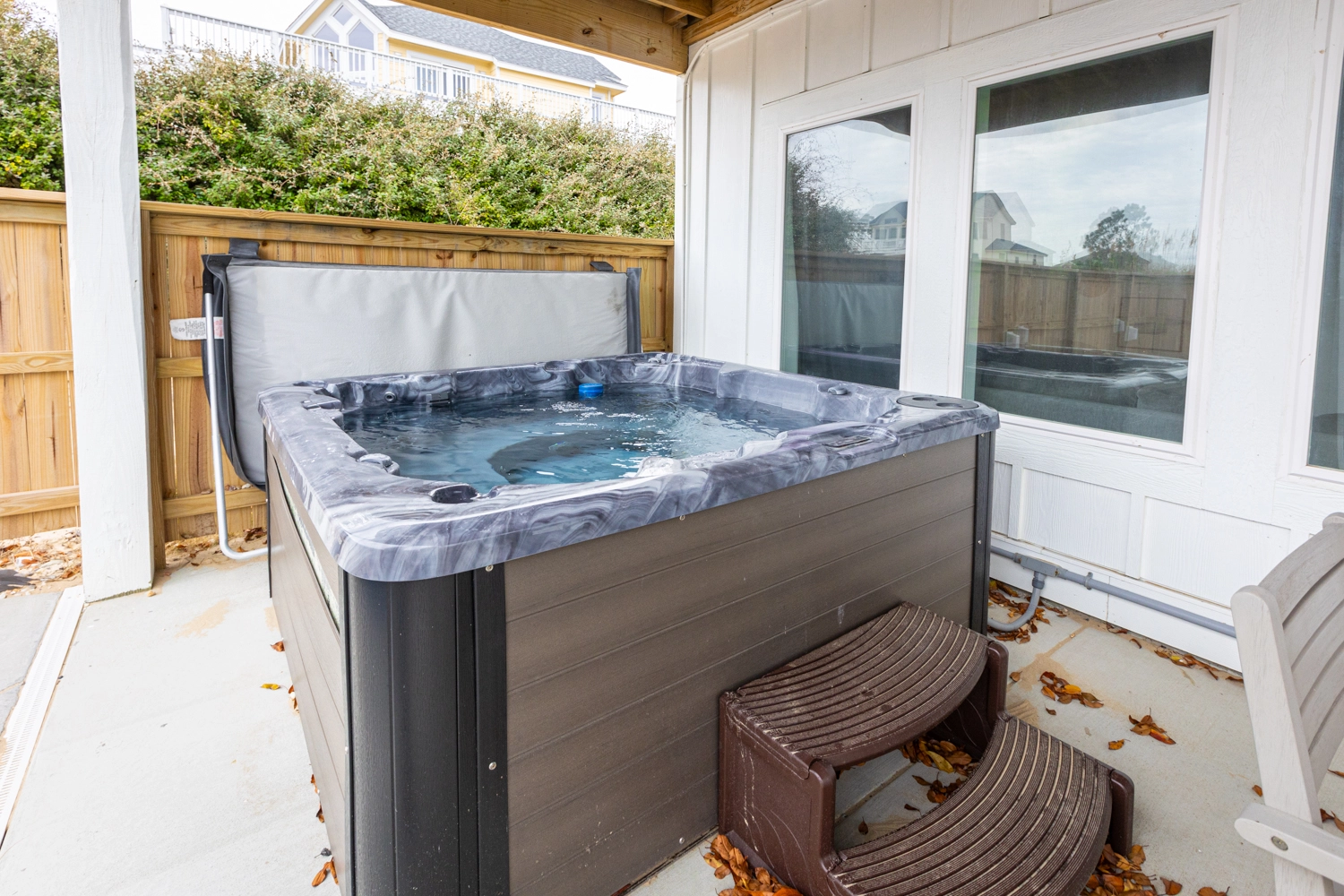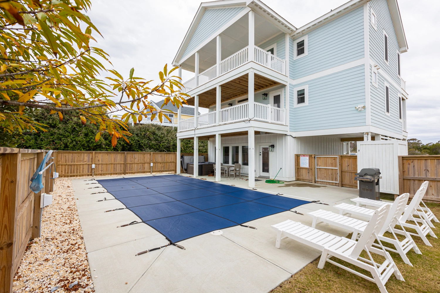 "Beautiful new home, with plenty of space for the entire family. Conveniently located close to the walkway to beach and a fenced in backyard with yard space for games and large pool & hot tub. We loved it and hated leaving!!"
